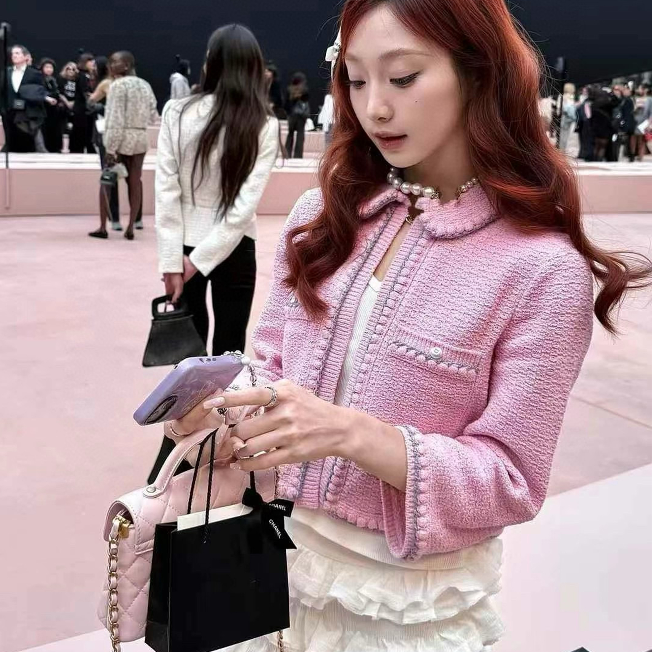 NIGO Chanel Women's Spring And Summer Fashion Elegant Solid Color Woven Lapel Cardigan Straight Mini Skirt Pink Suit Set Ngvp #nigo1754