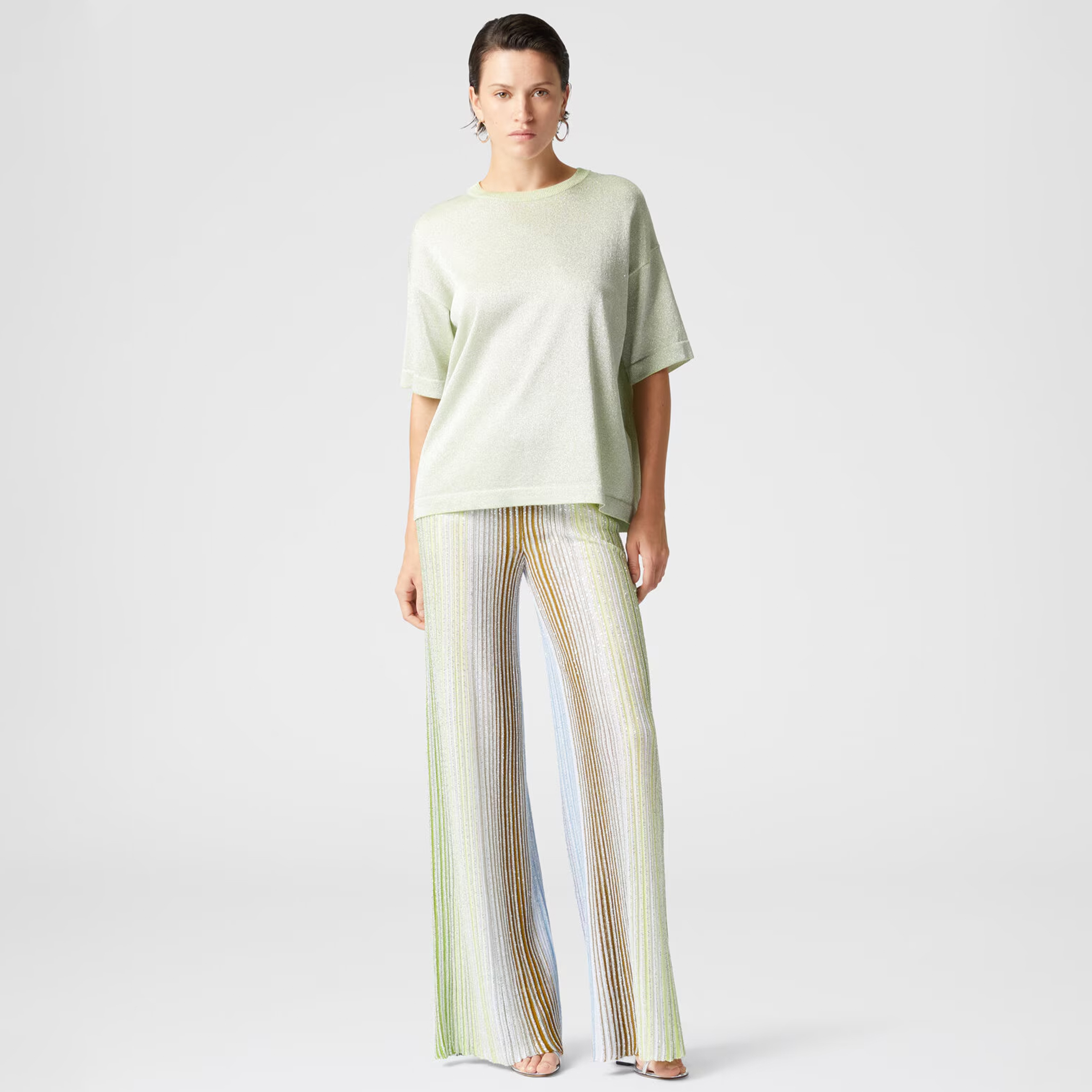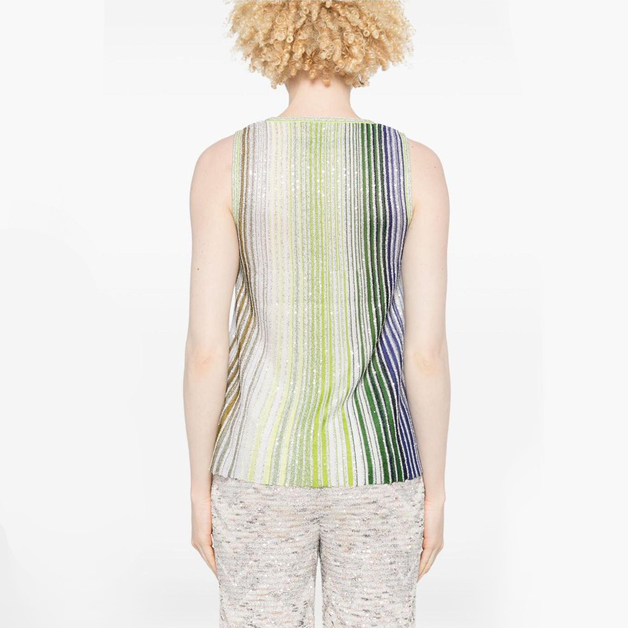 NIGO Missoni Women's Spring And Summer Fashion Elegant Colorful Striped Golden Silk Knit Clashing Sleeveless Vest T-shirt Casual Pants Set Suit Ngvp #nigo1758