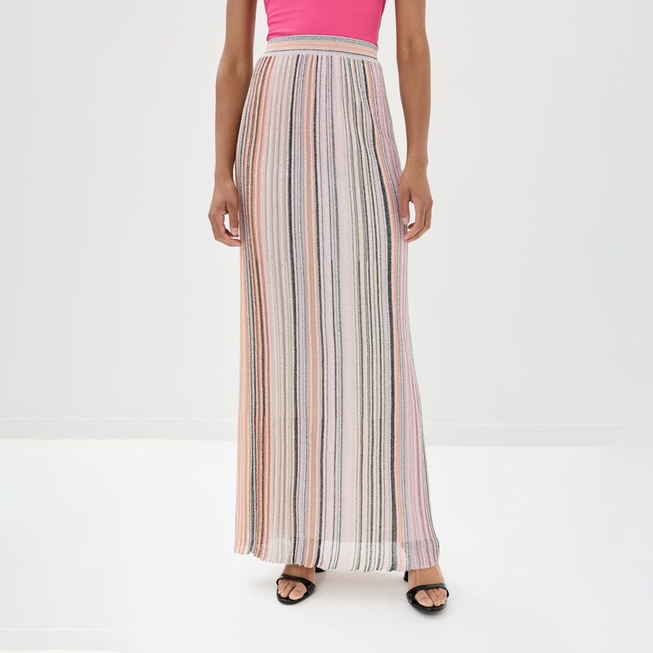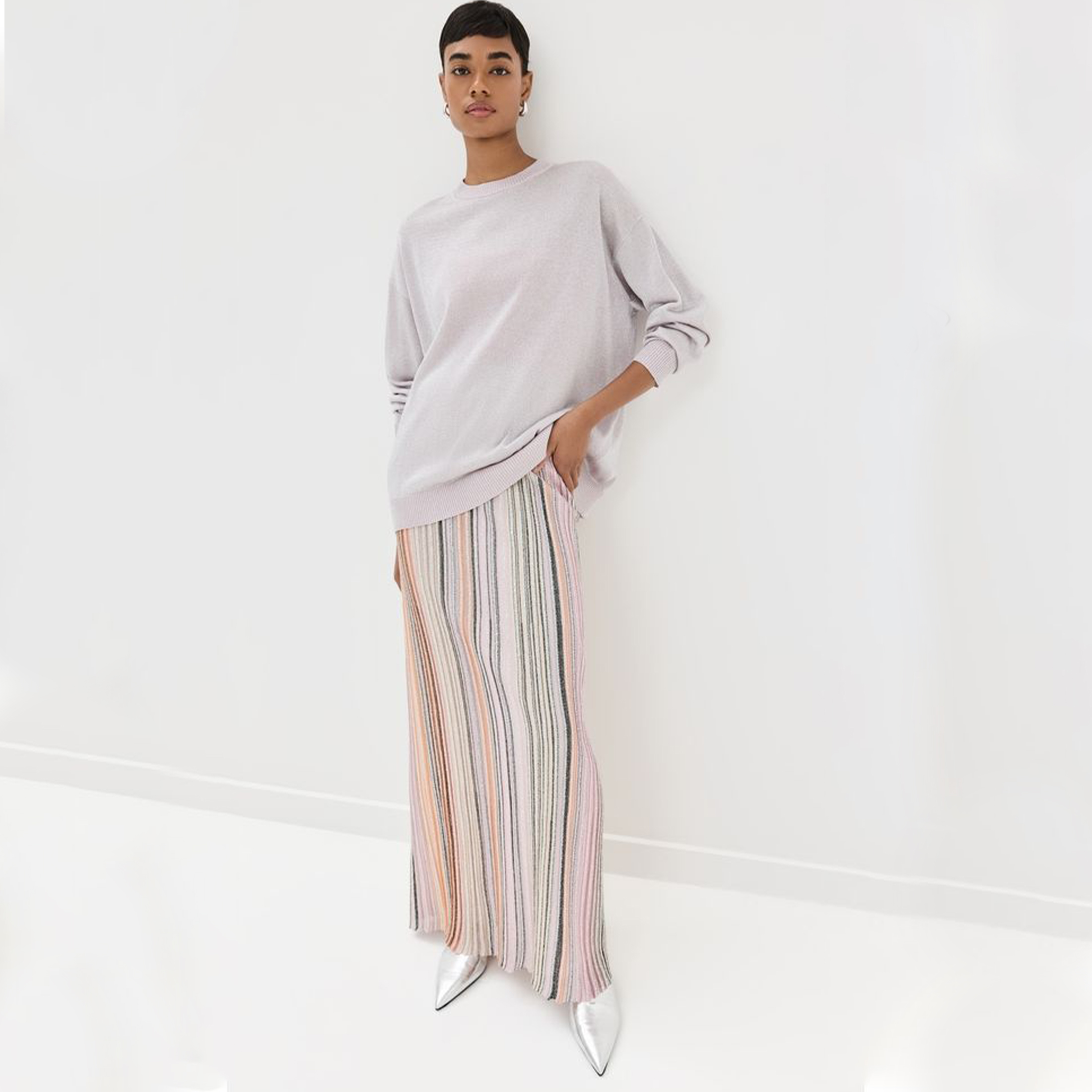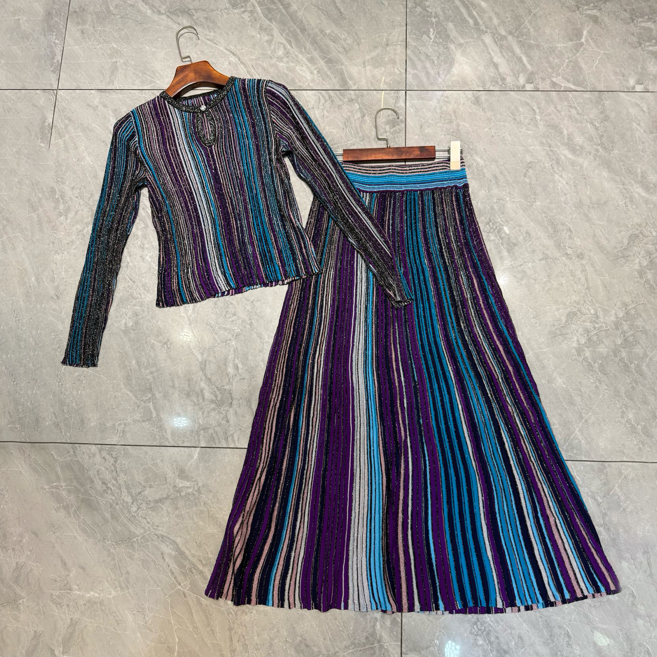 NIGO Missoni Women's Spring And Summer Fashion Colorful Striped Gold Silk Knitted Collision Long-sleeved Casual Long Half-body Skirt Suit Suit Set Ngvp #nigo1756