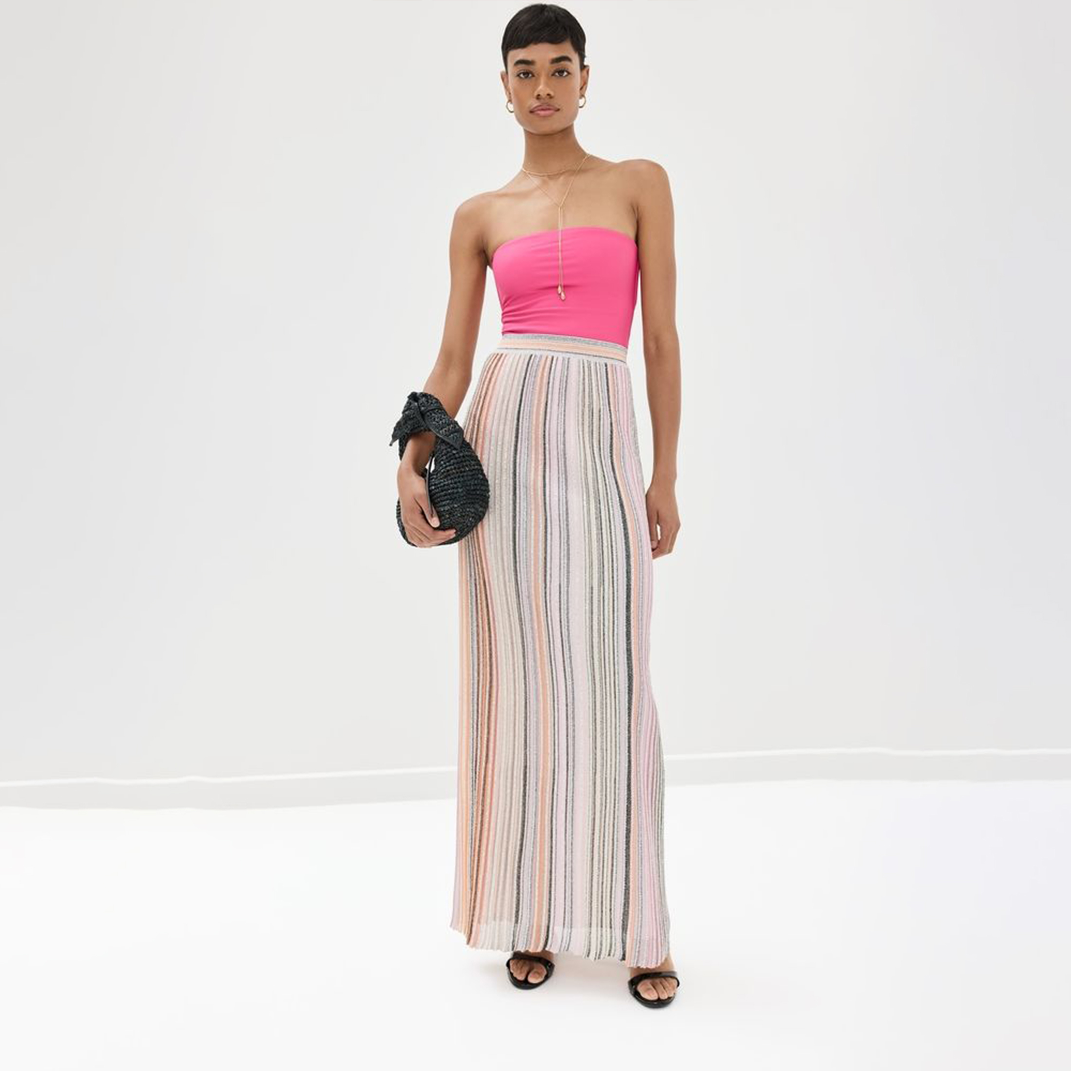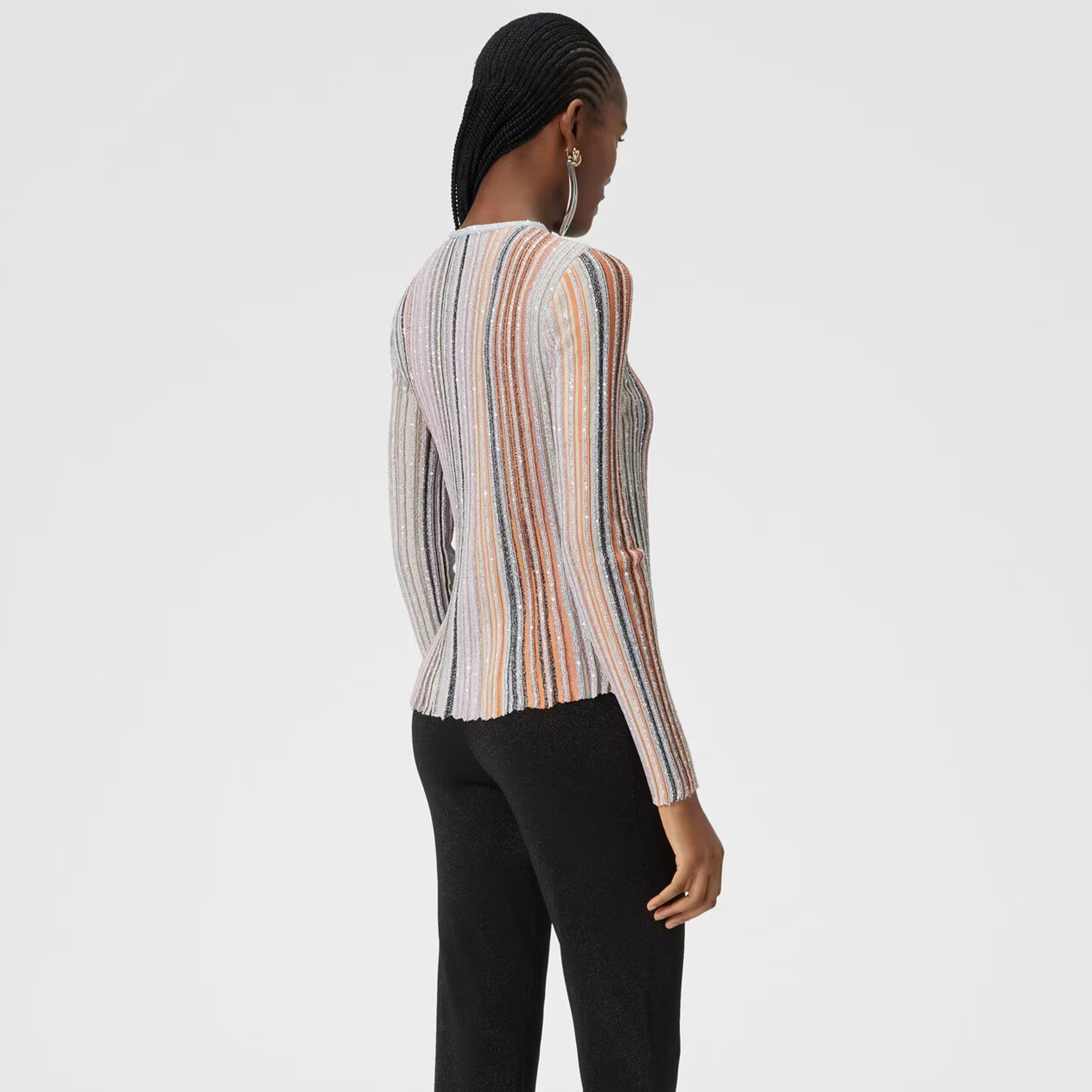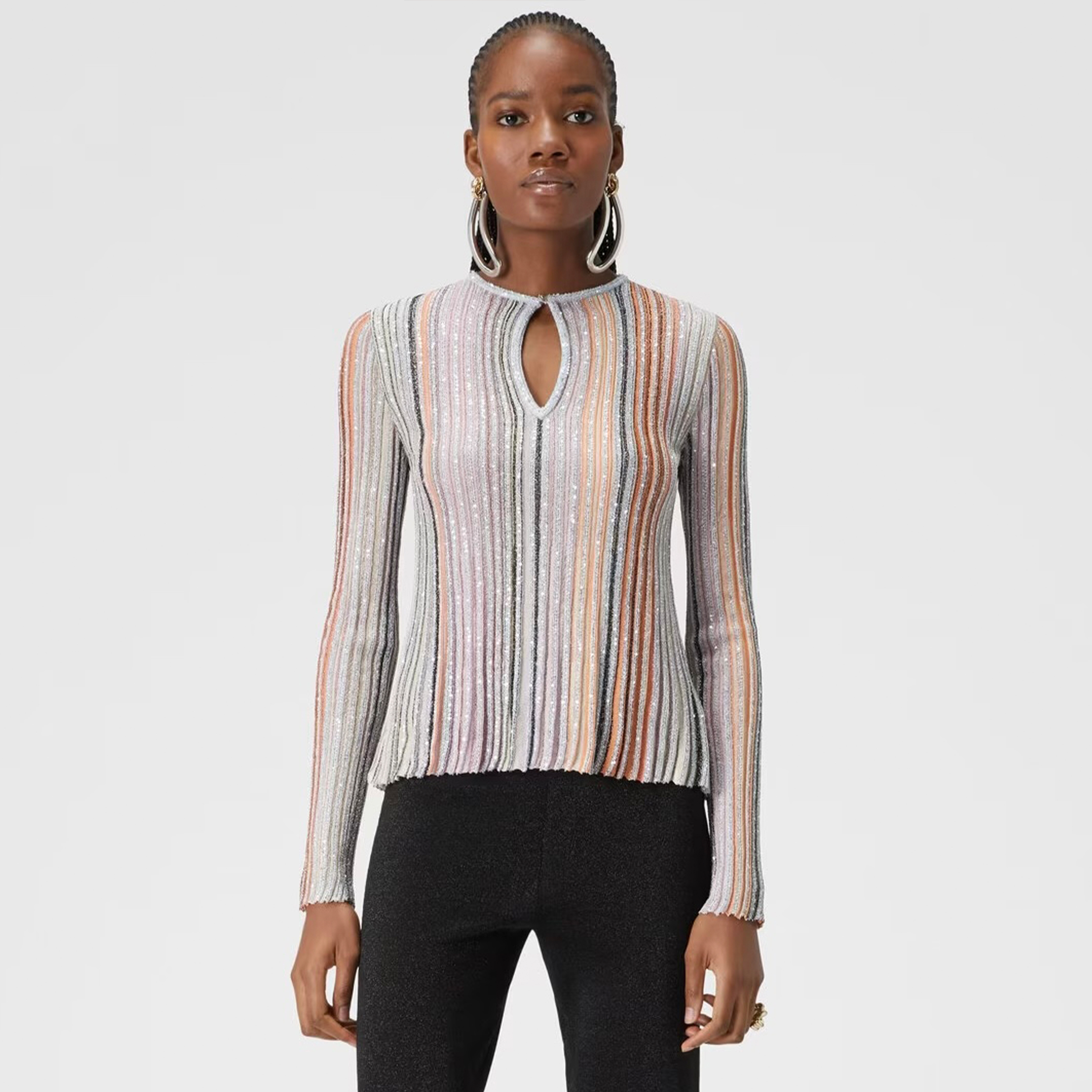 NIGO Missoni Women's Spring And Summer Fashion Colorful Striped Gold Silk Knitted Collision Long-sleeved Casual Long Half-body Skirt Suit Suit Set Ngvp #nigo1756
