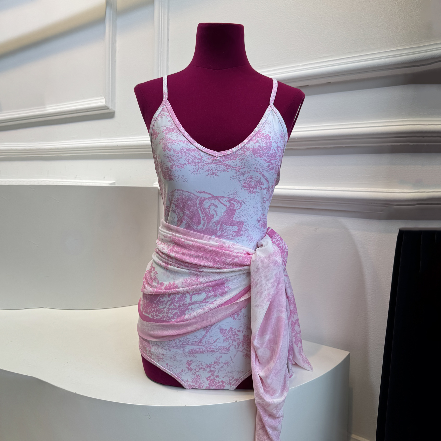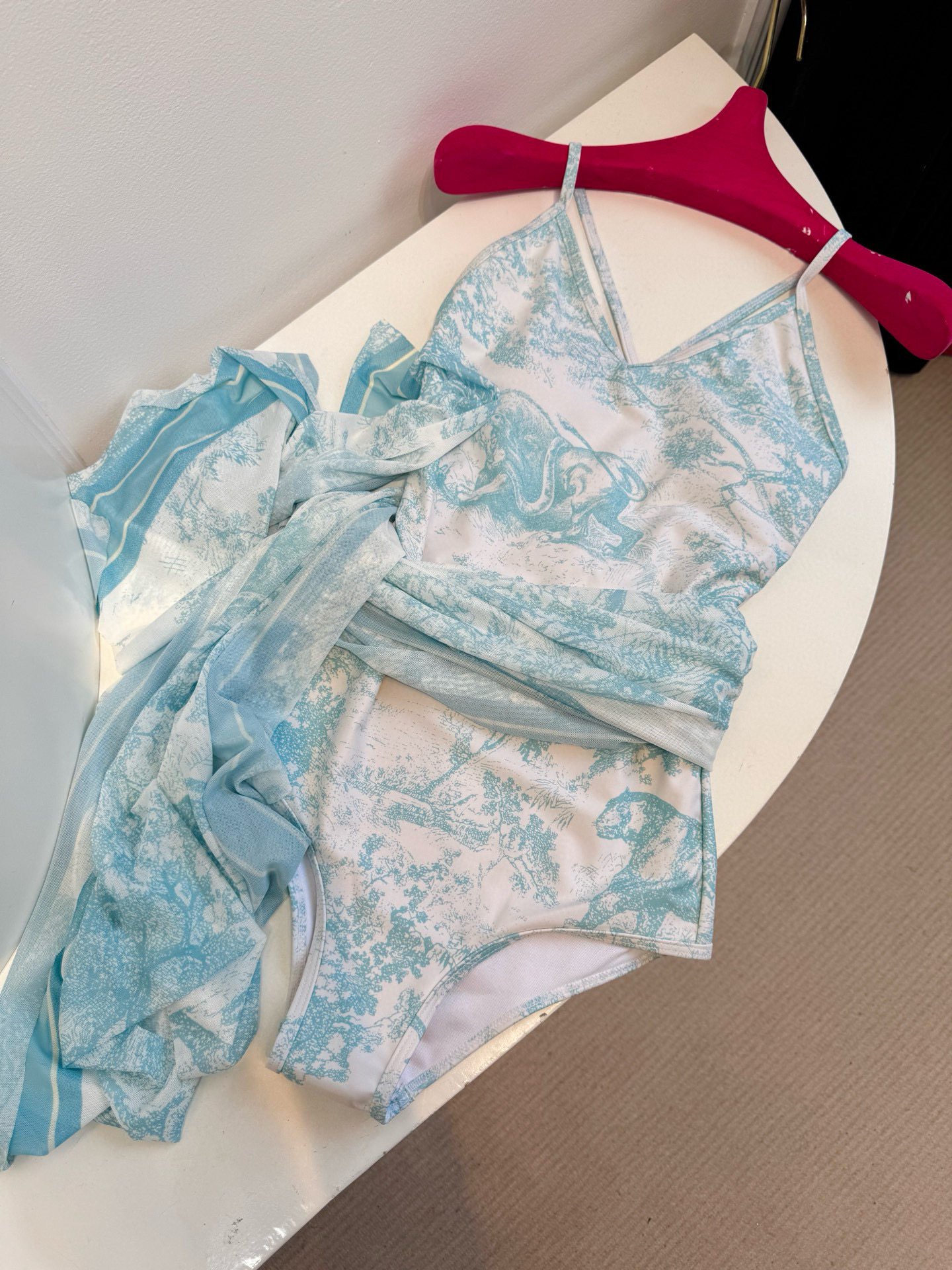 NIGO Dior Women's Summer Animal Print Swimsuit With Criss-cross Straps At The Back Paired With A Silk Scarf Two-piece Set Suit #nigo77688