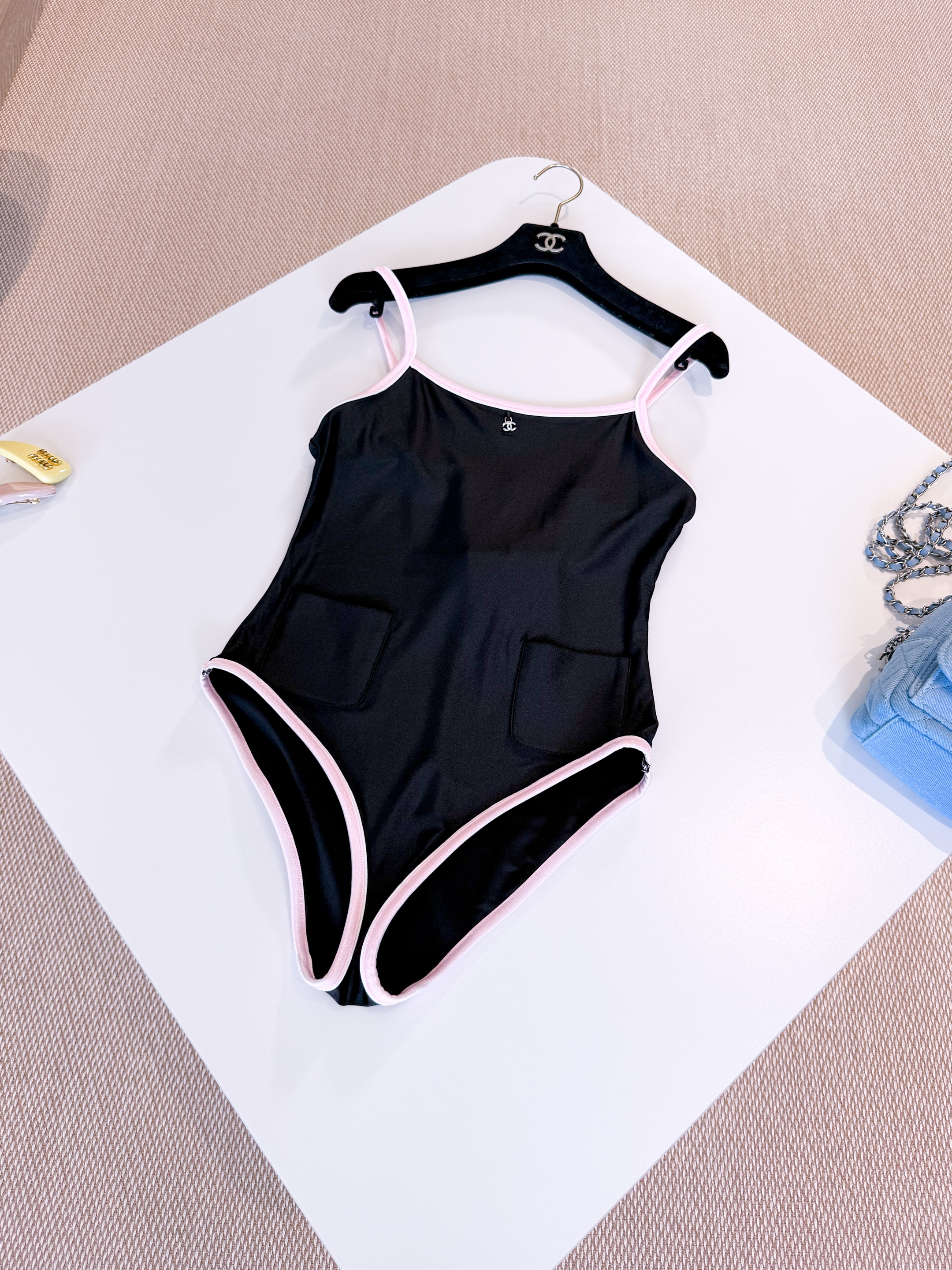NIGO Chanel Women's Spring Summer Coco Beach Ready-to-wear Pink Black Clash Resort Swimsuit One-piece Swimsuit #nigo81366