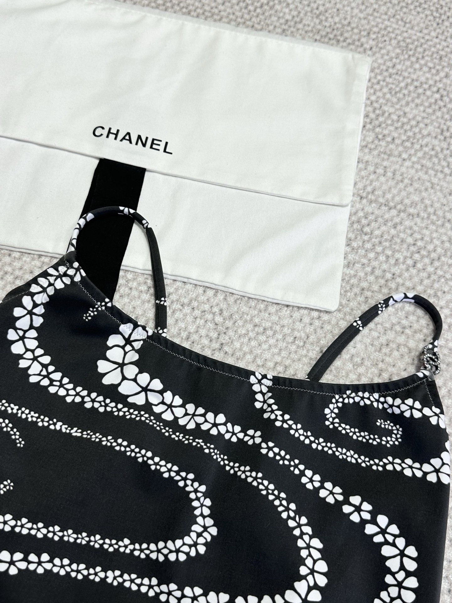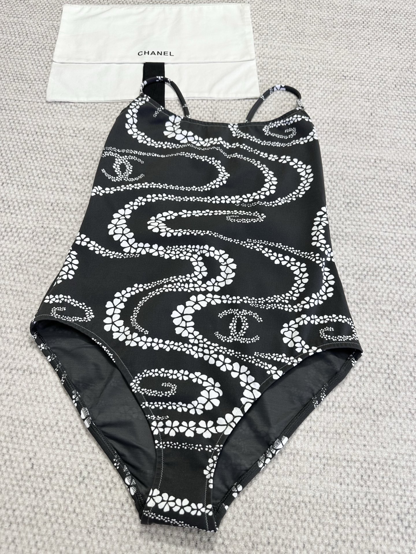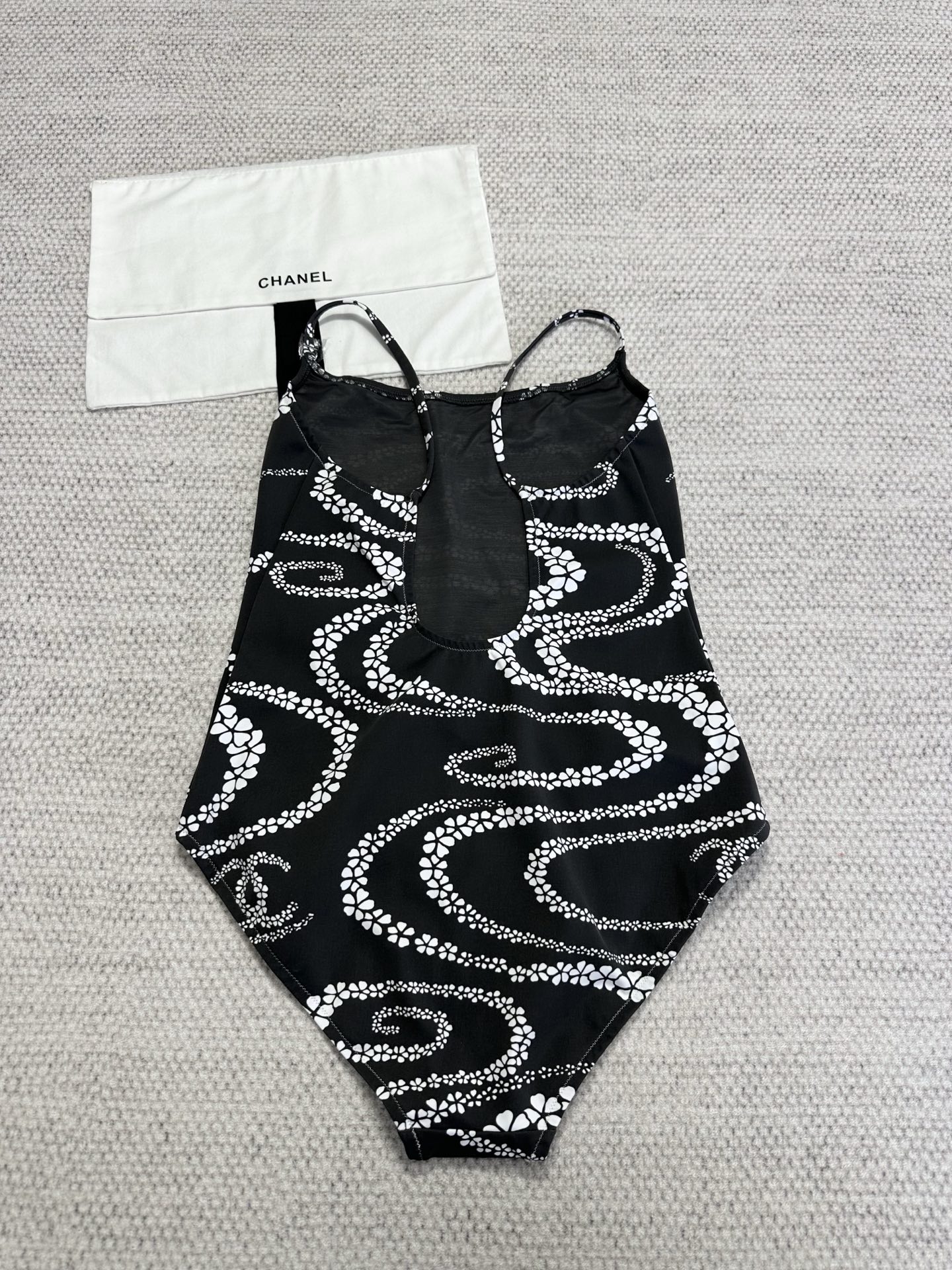 NIGO Chanel Women's Summer Black and White Printed Stretch Plain Knit One-Piece Swimsuit #nigo77253