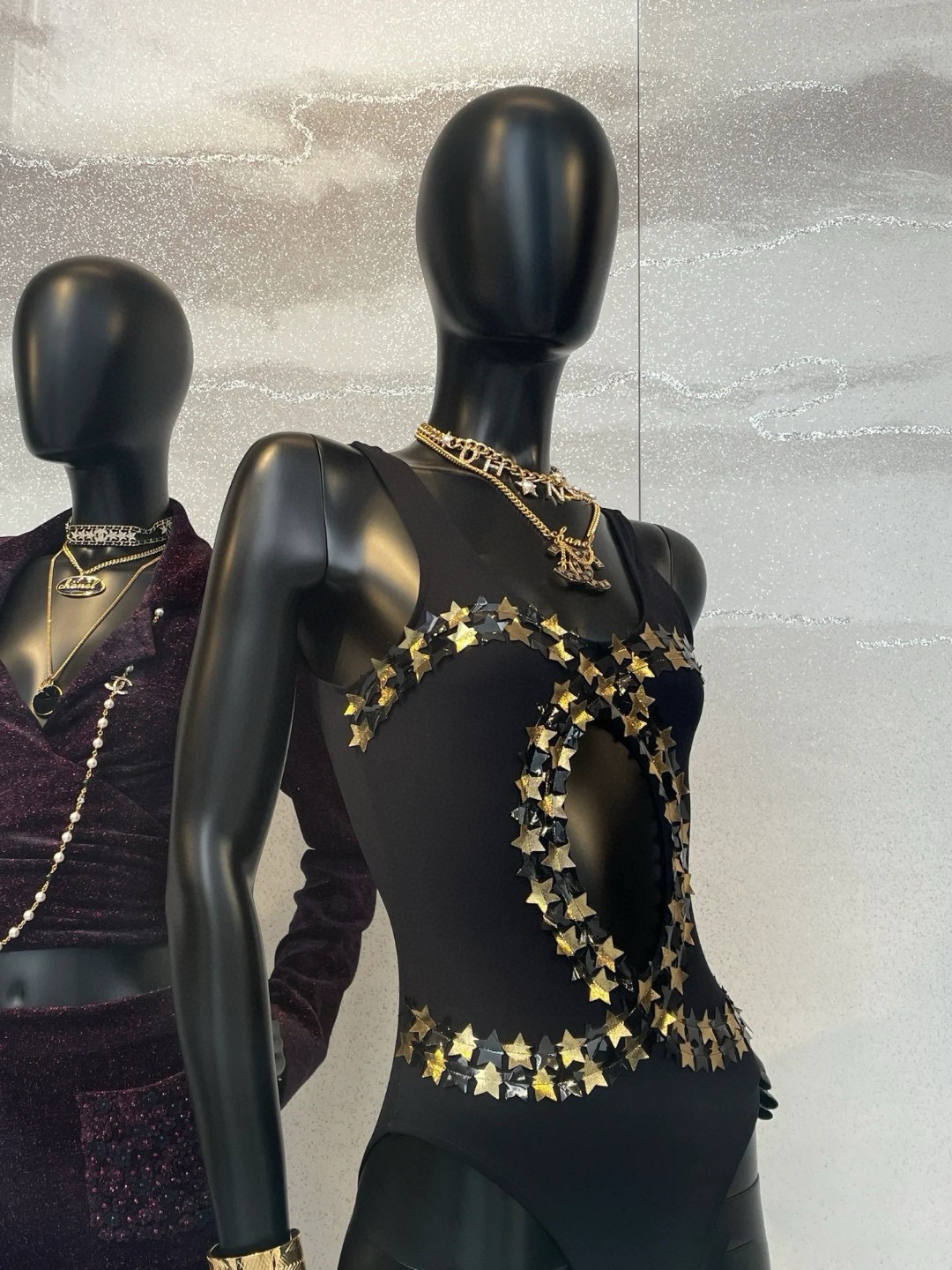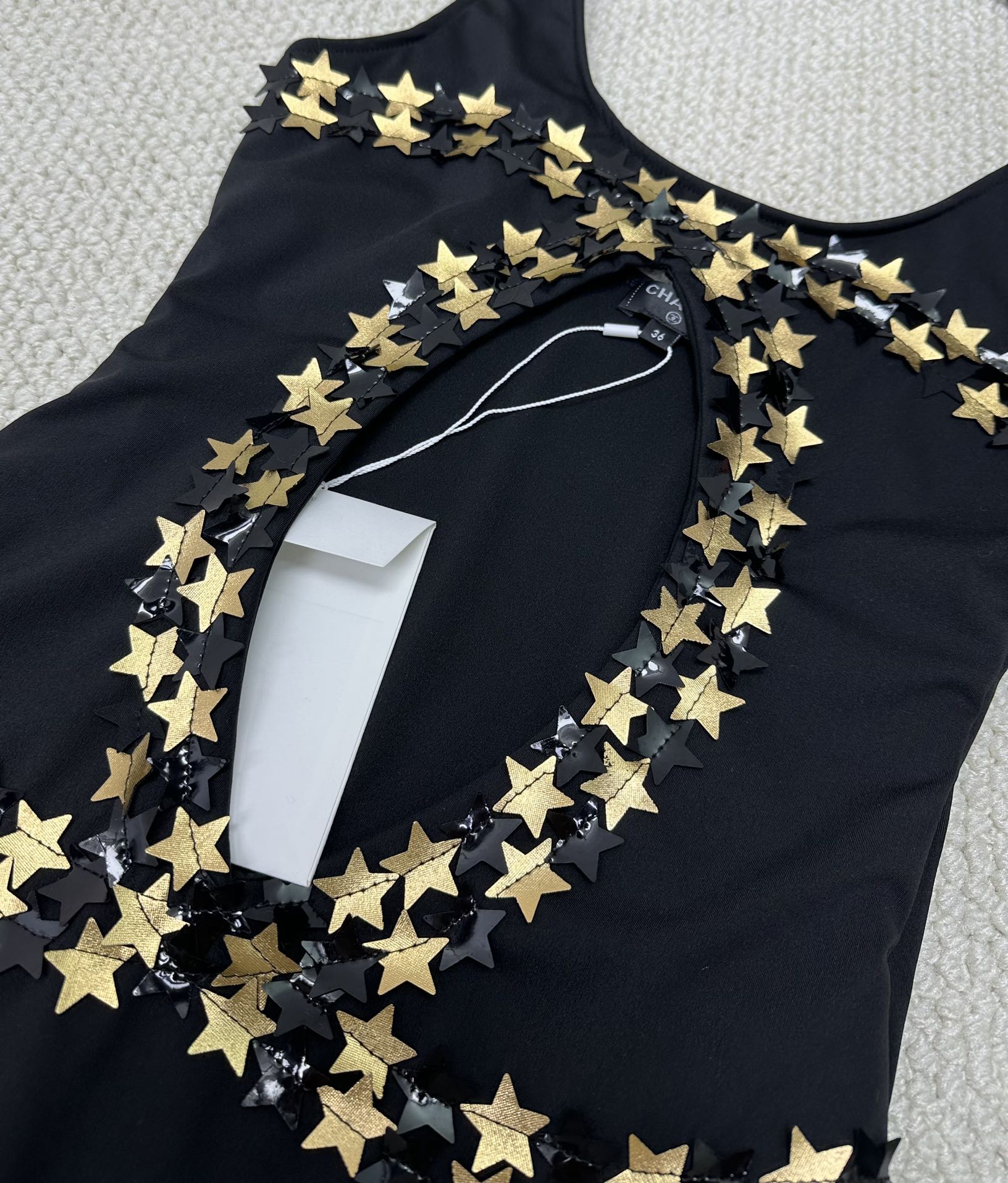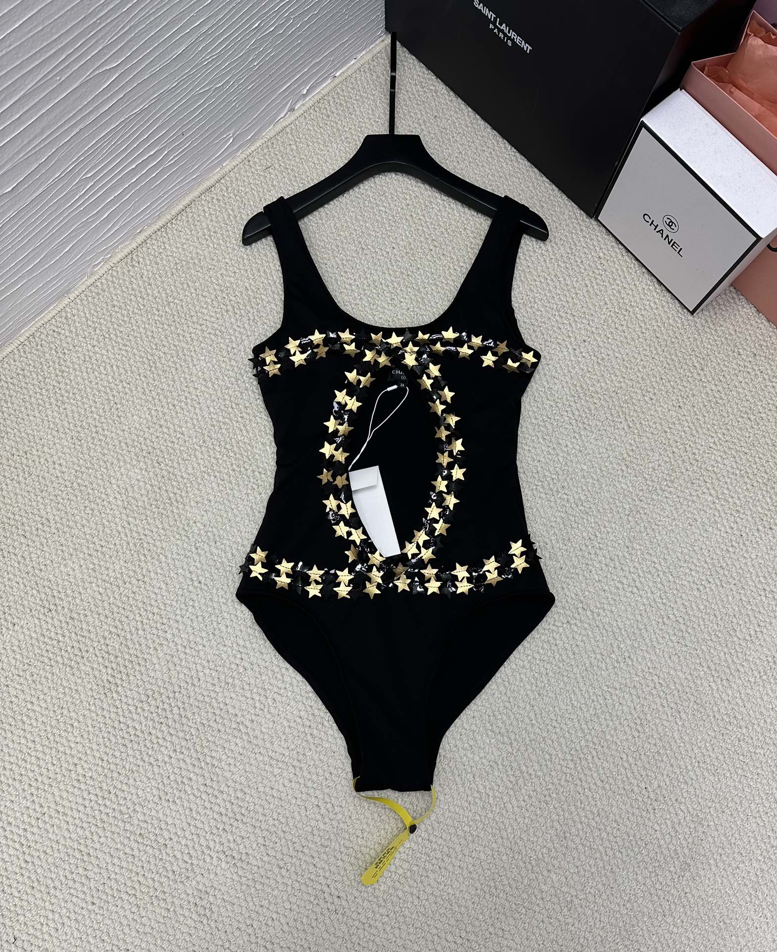 NIGO Chanel Women's Summer Gold Star Hollow Decoration Black One-piece Swimsuit #nigo72391