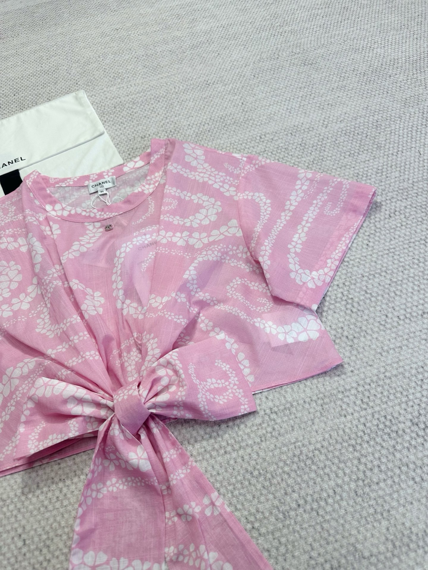 NIGO Chanel Women's CoCo Beach Round Neck Logo Print Summer Cotton Tie Short Sleeve Top T-Shirt #nigo77269