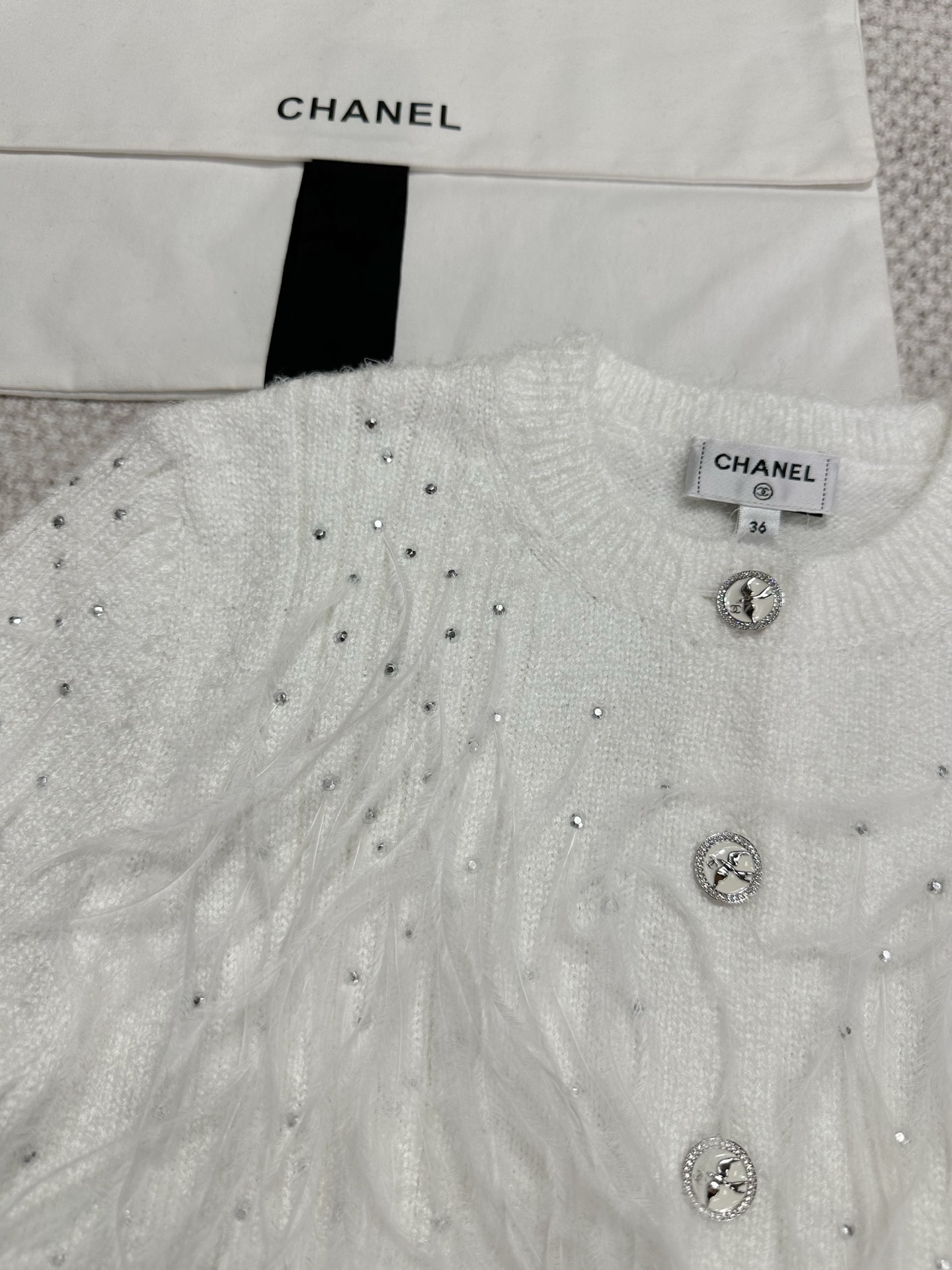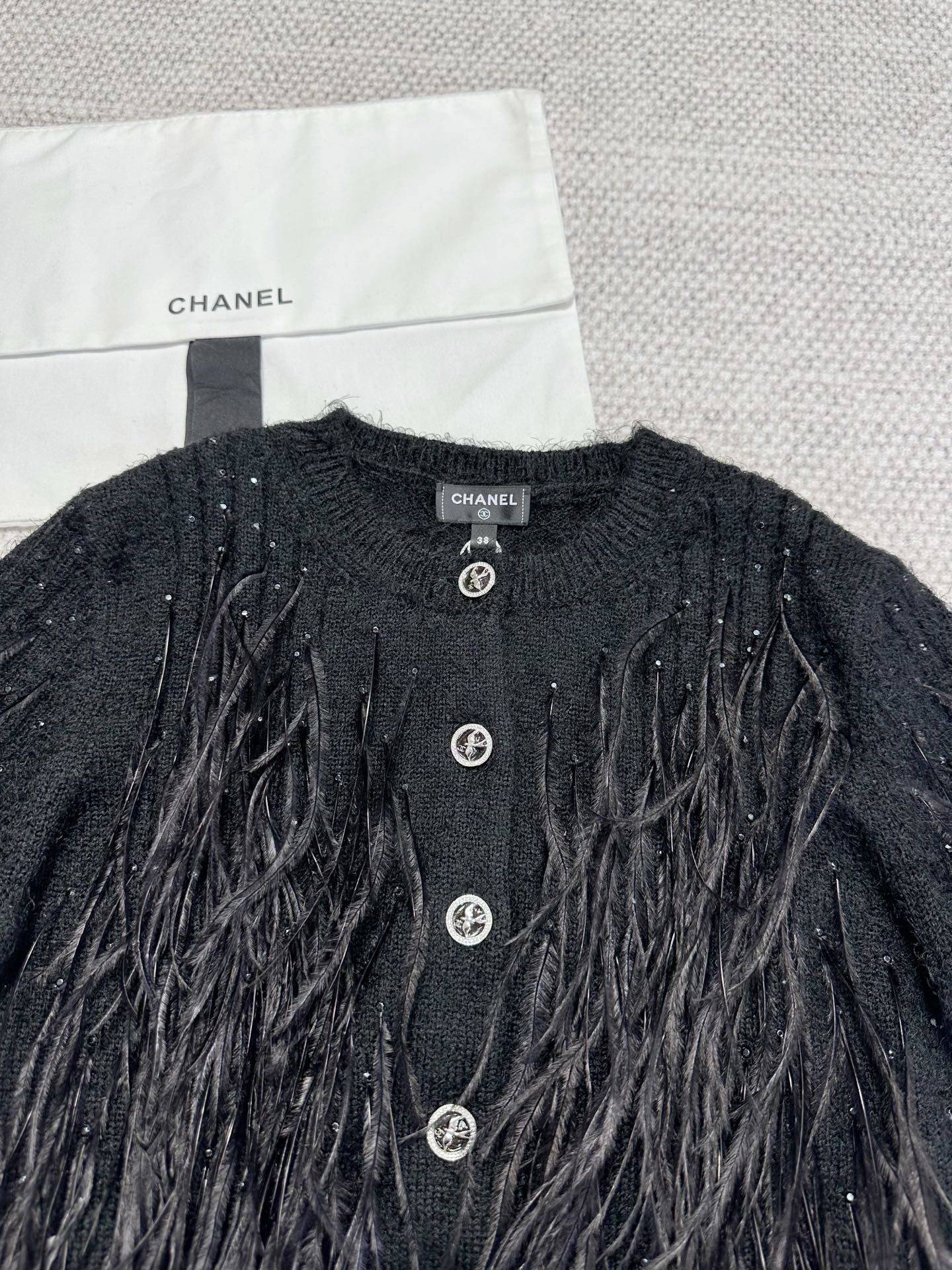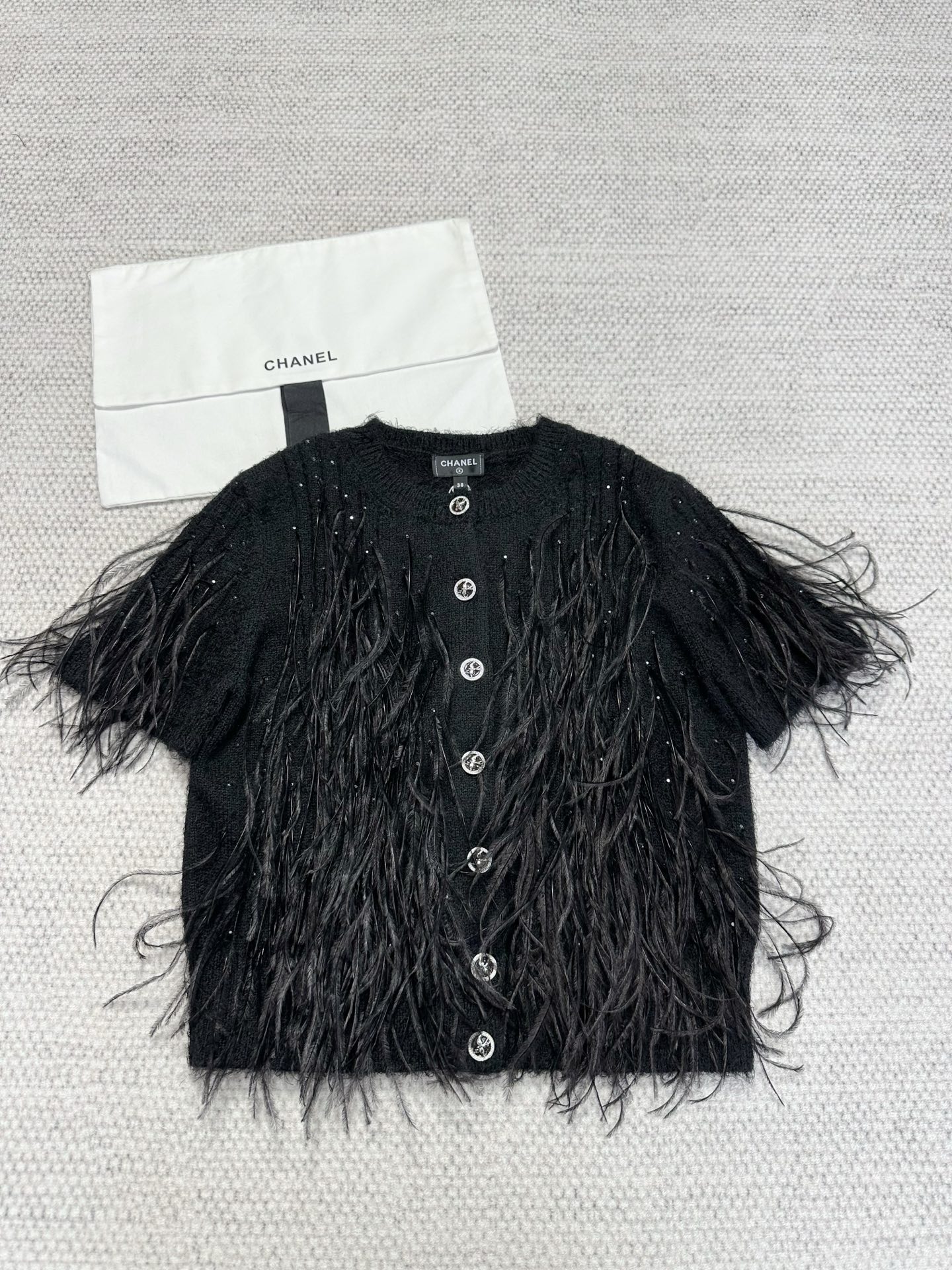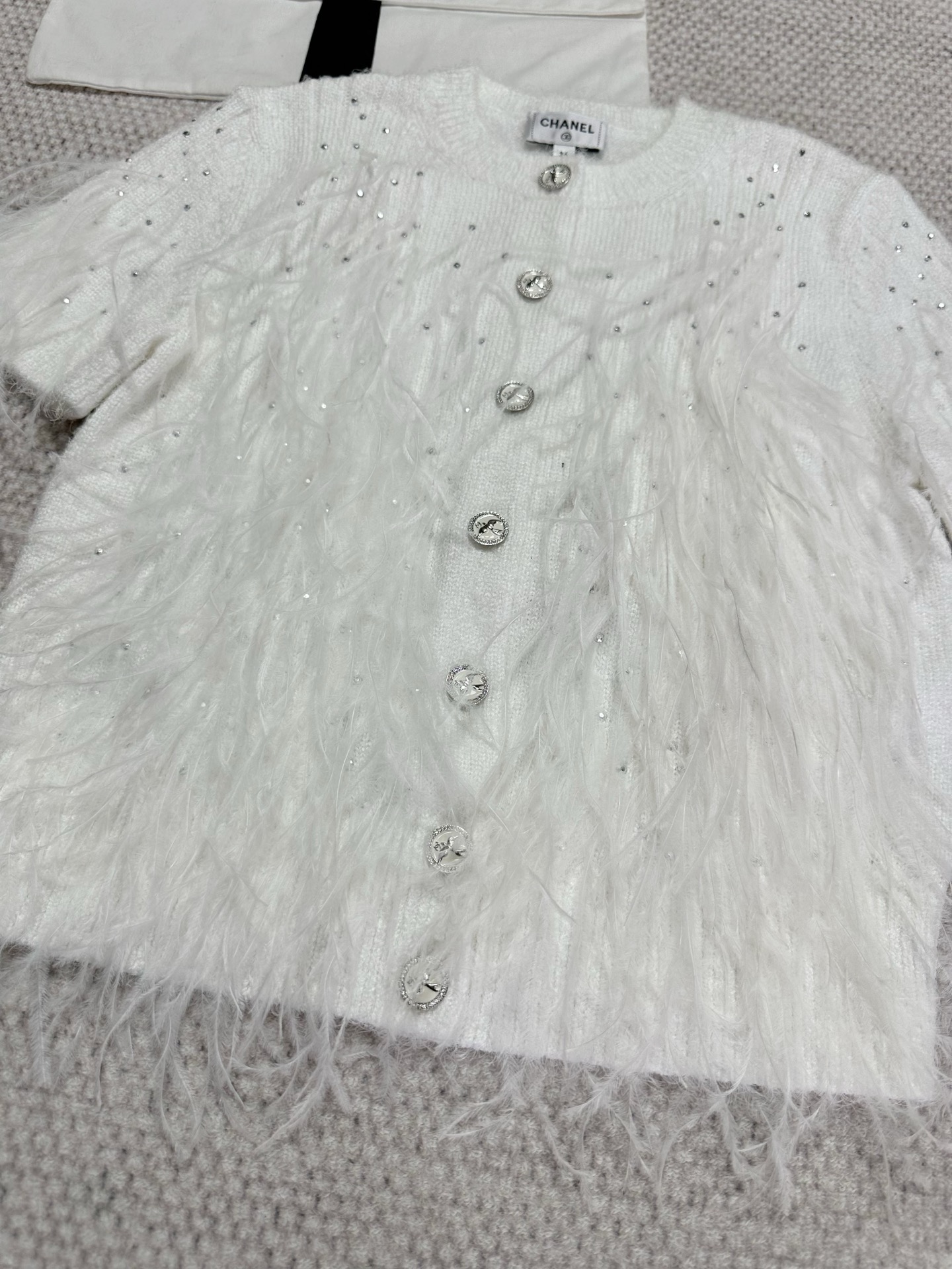 NIGO Chanel Women's Spring And Summer Feather Tassel Knitted Cardigan Top Fashion Elegant Single-breasted Round Neck Blouse Ngvp #nigo1718