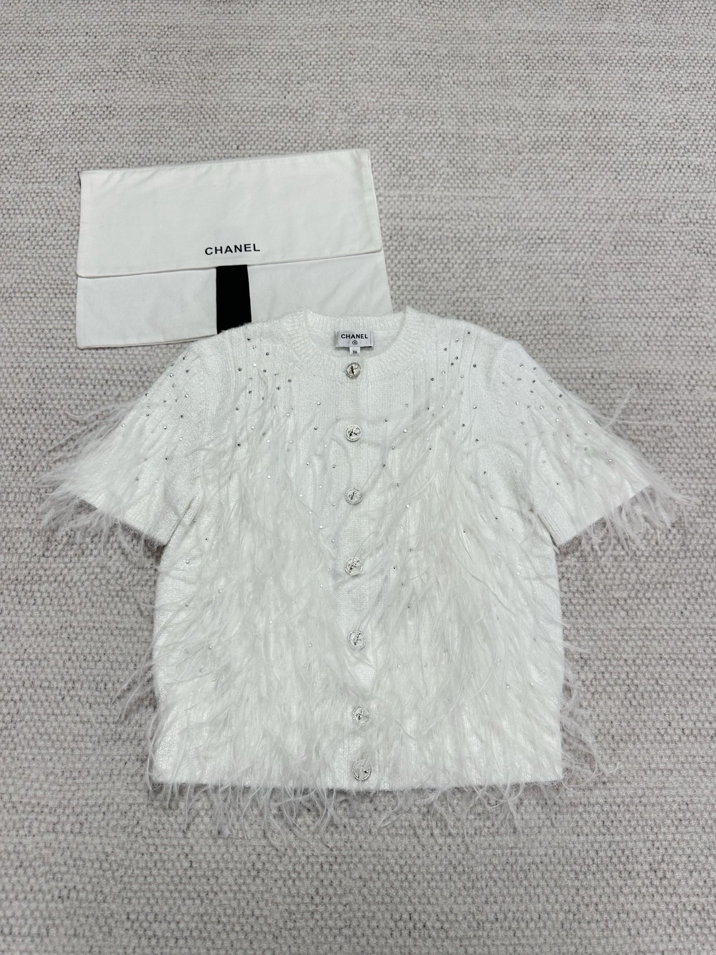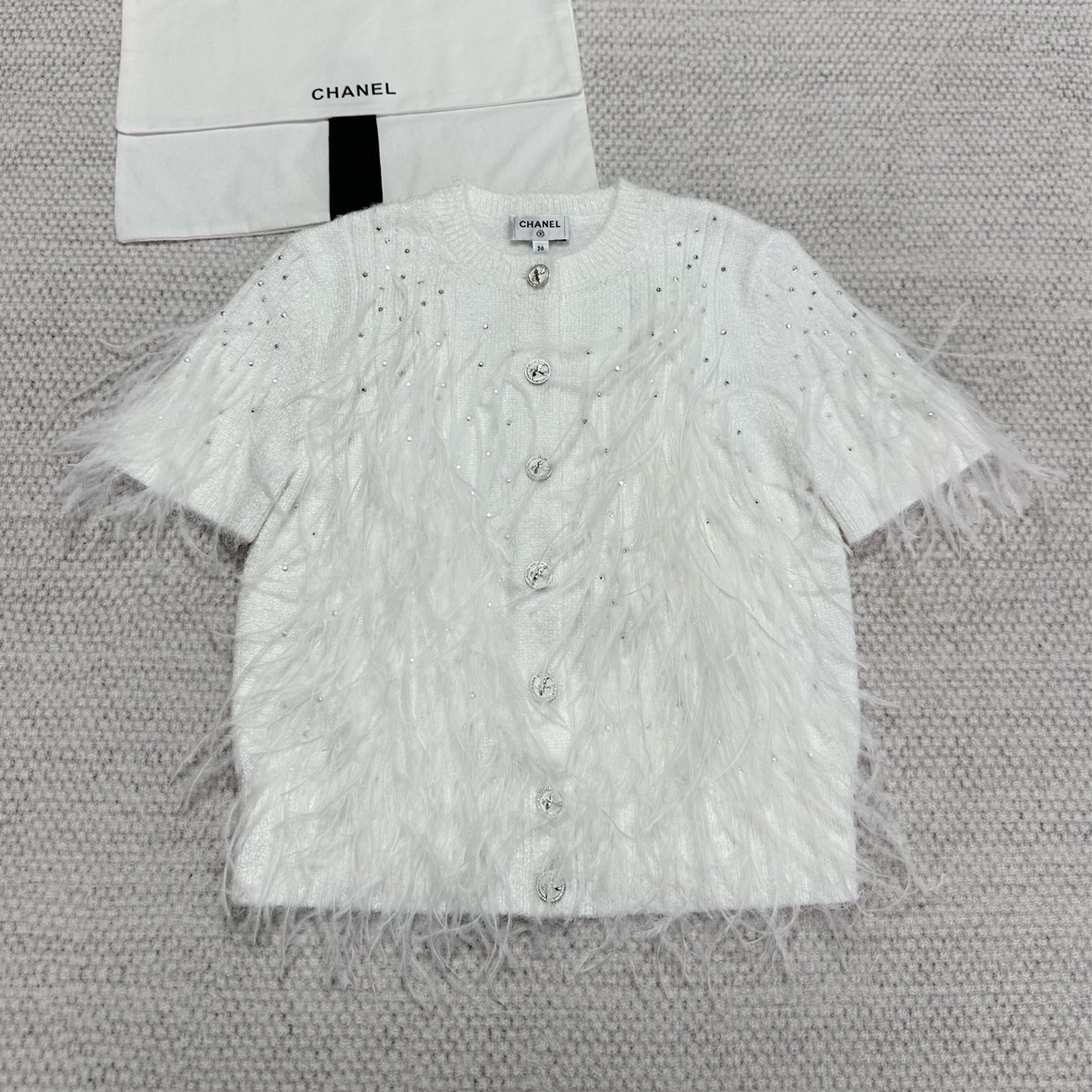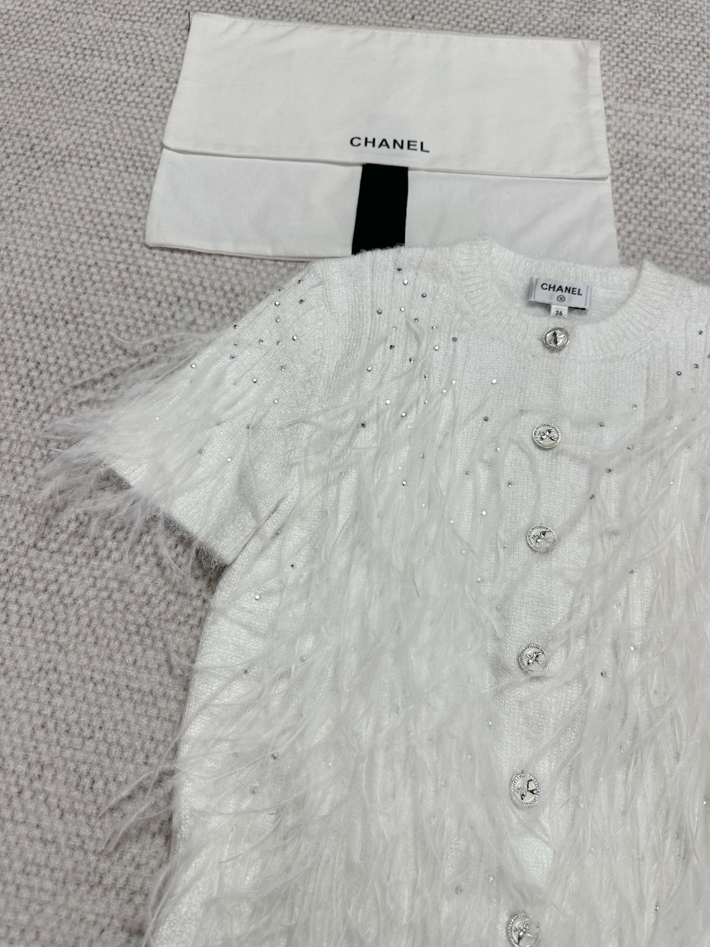 NIGO Chanel Women's Spring And Summer Feather Tassel Knitted Cardigan Top Fashion Elegant Single-breasted Round Neck Blouse Ngvp #nigo1718