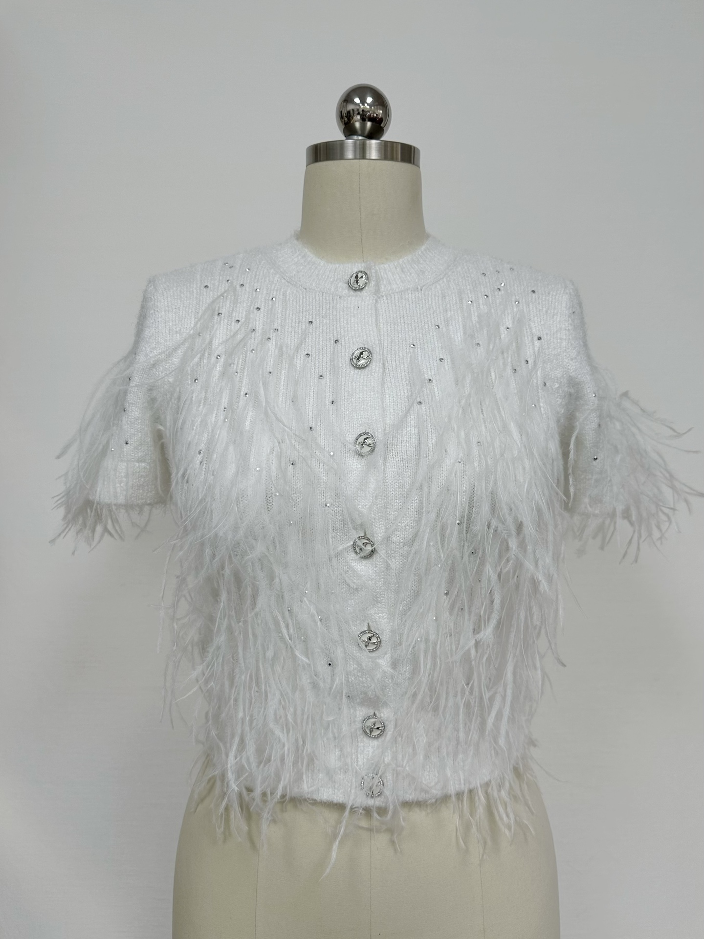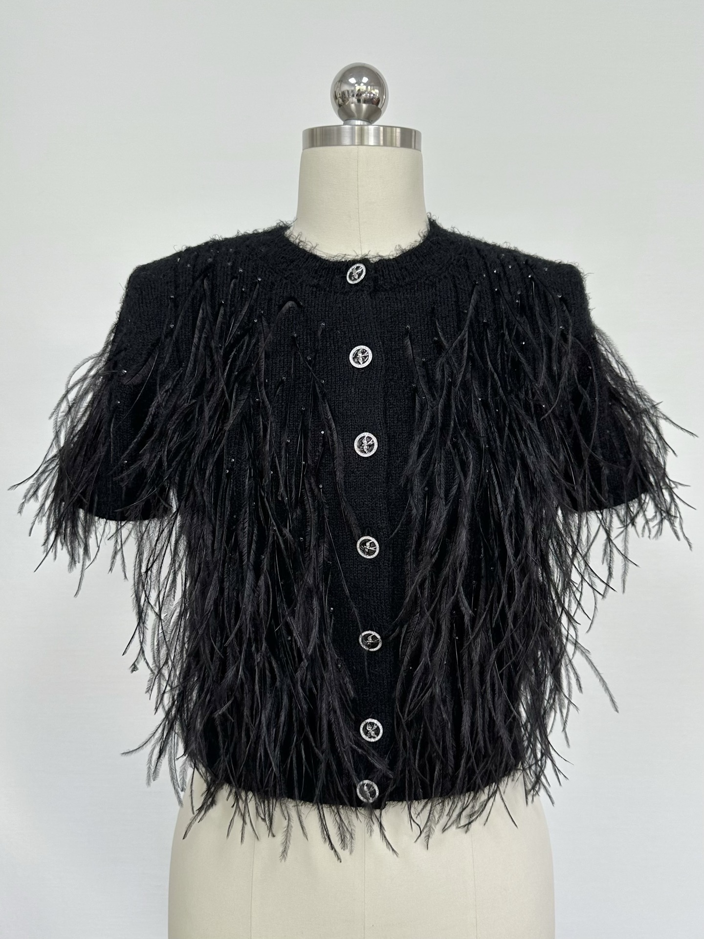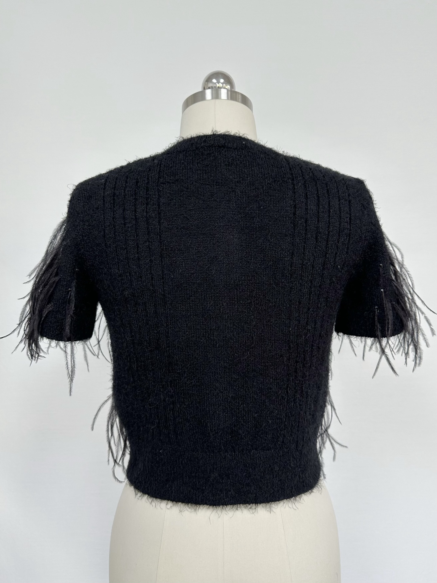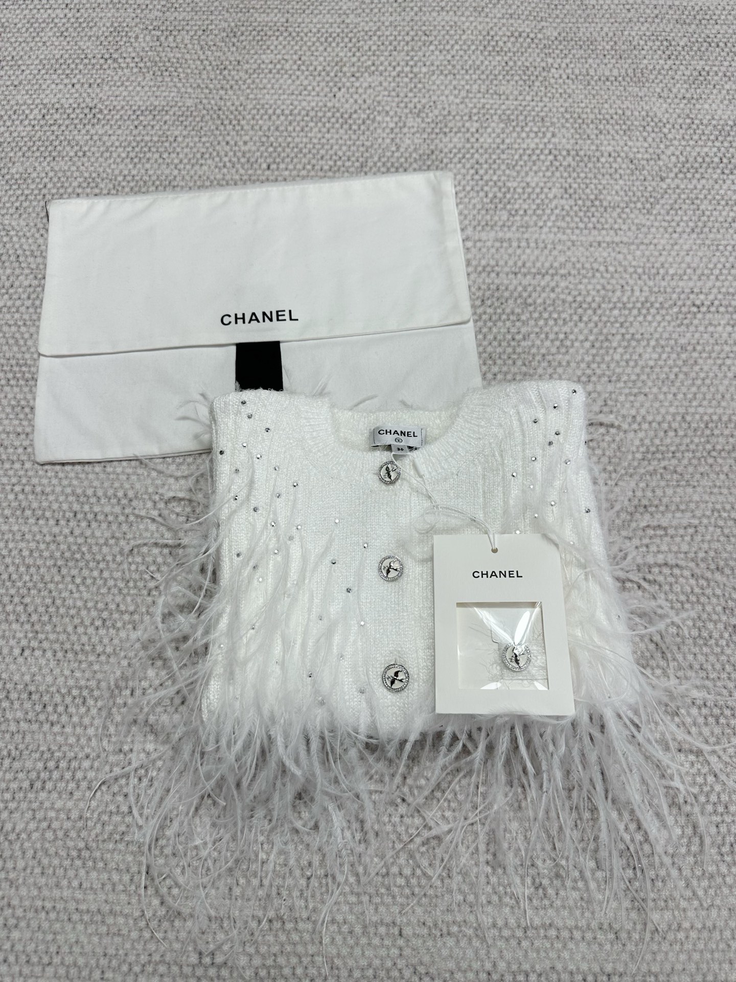 NIGO Chanel Women's Spring And Summer Feather Tassel Knitted Cardigan Top Fashion Elegant Single-breasted Round Neck Blouse Ngvp #nigo1718