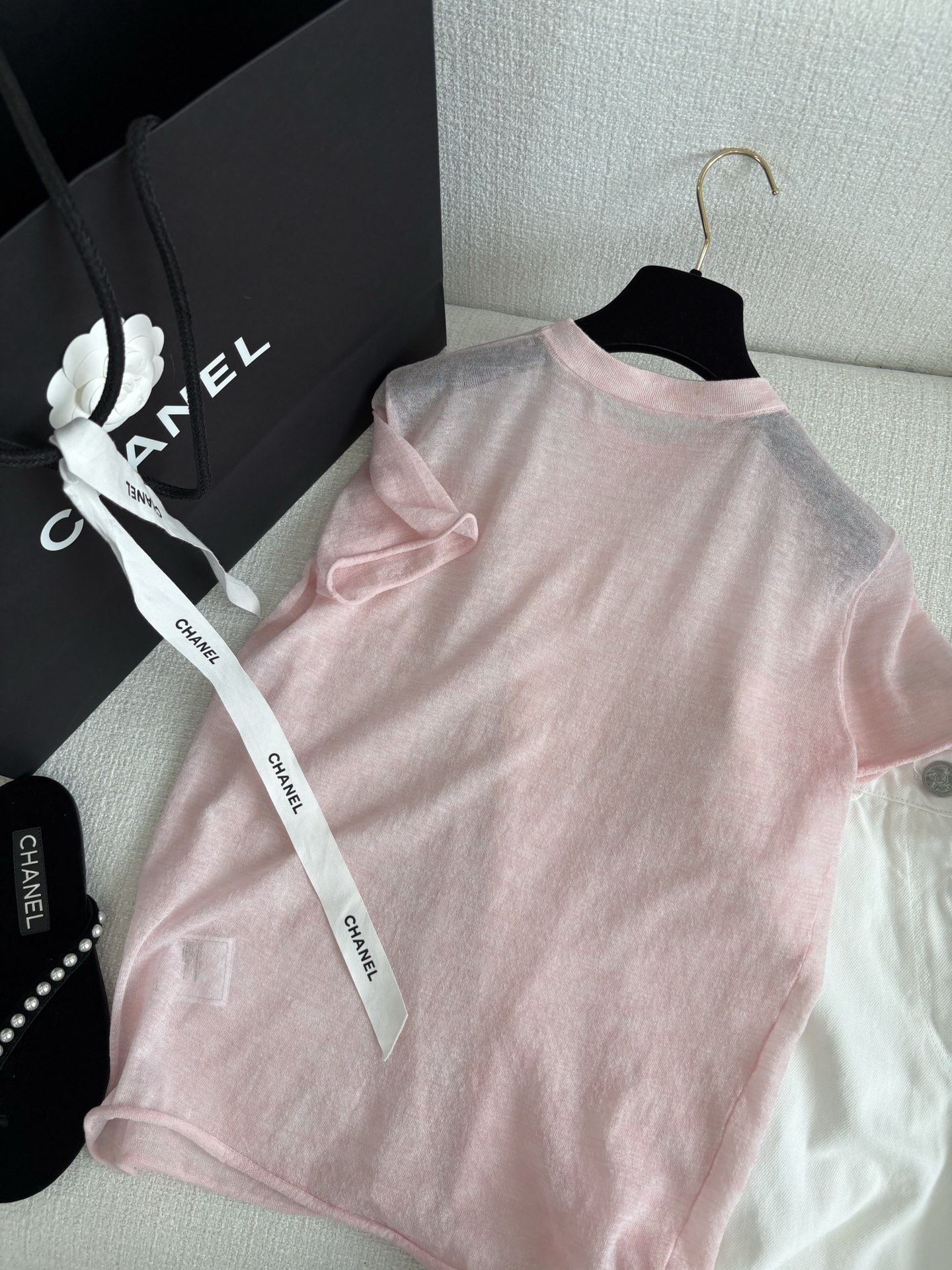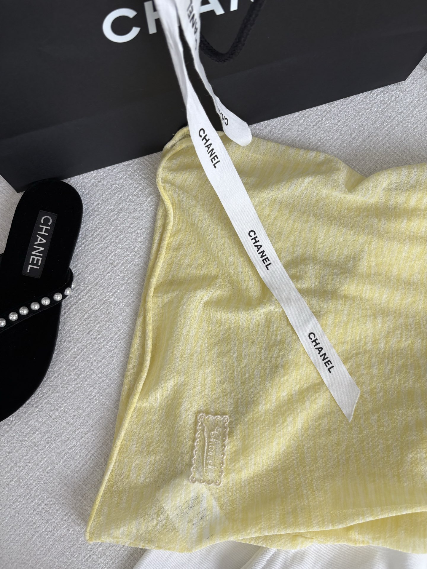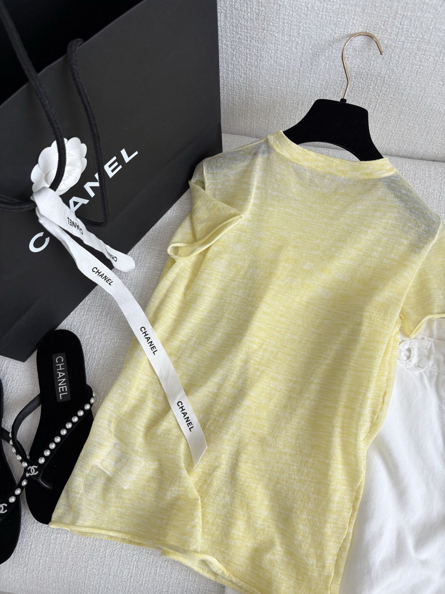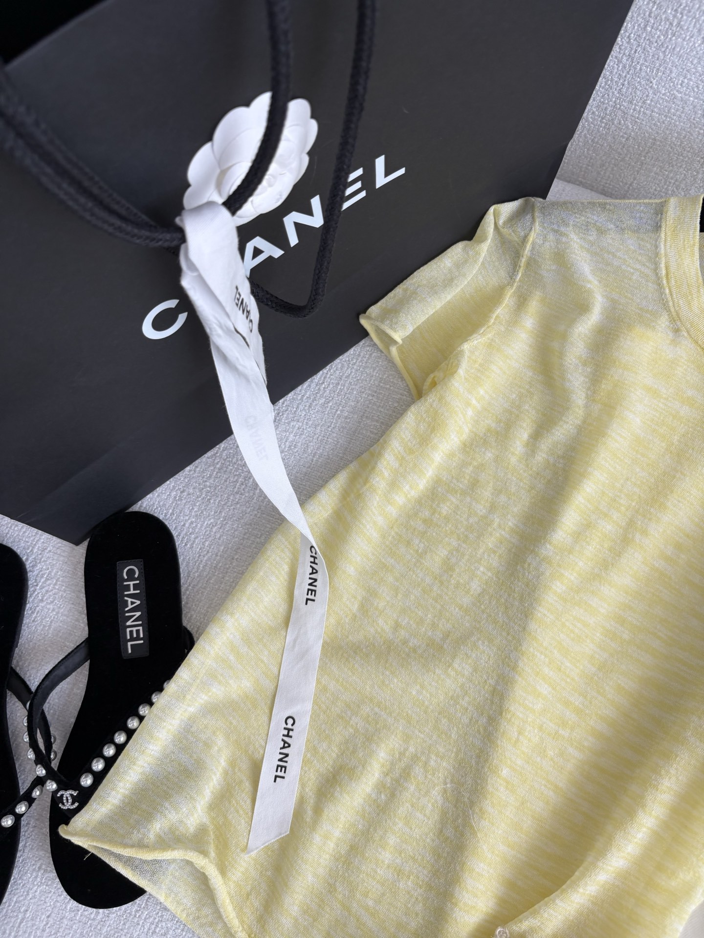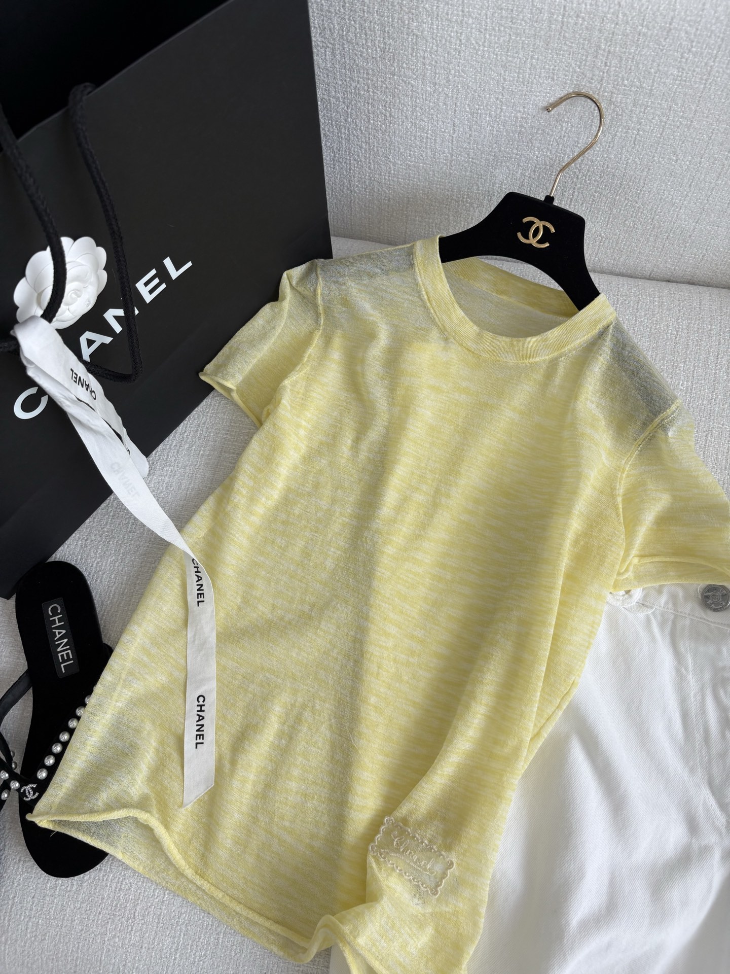 NIGO Chanel Women's Spring Summer Pink Yellow Blue Stripe Slim T-shirt Round Neck Short Sleeve Cotton Yarn Top Ngvp #nigo1596
