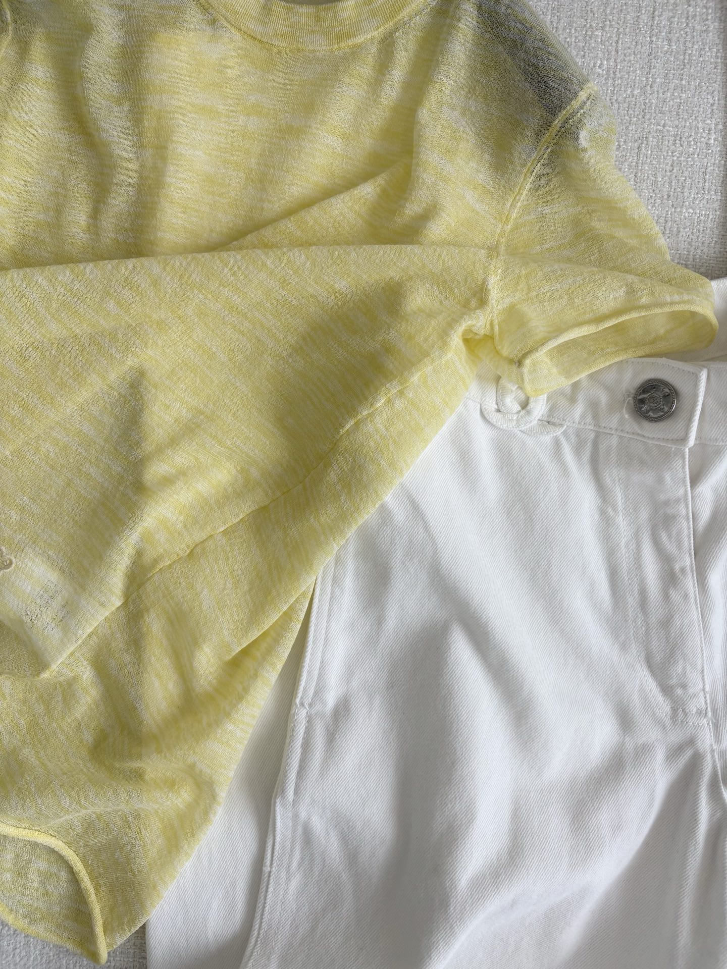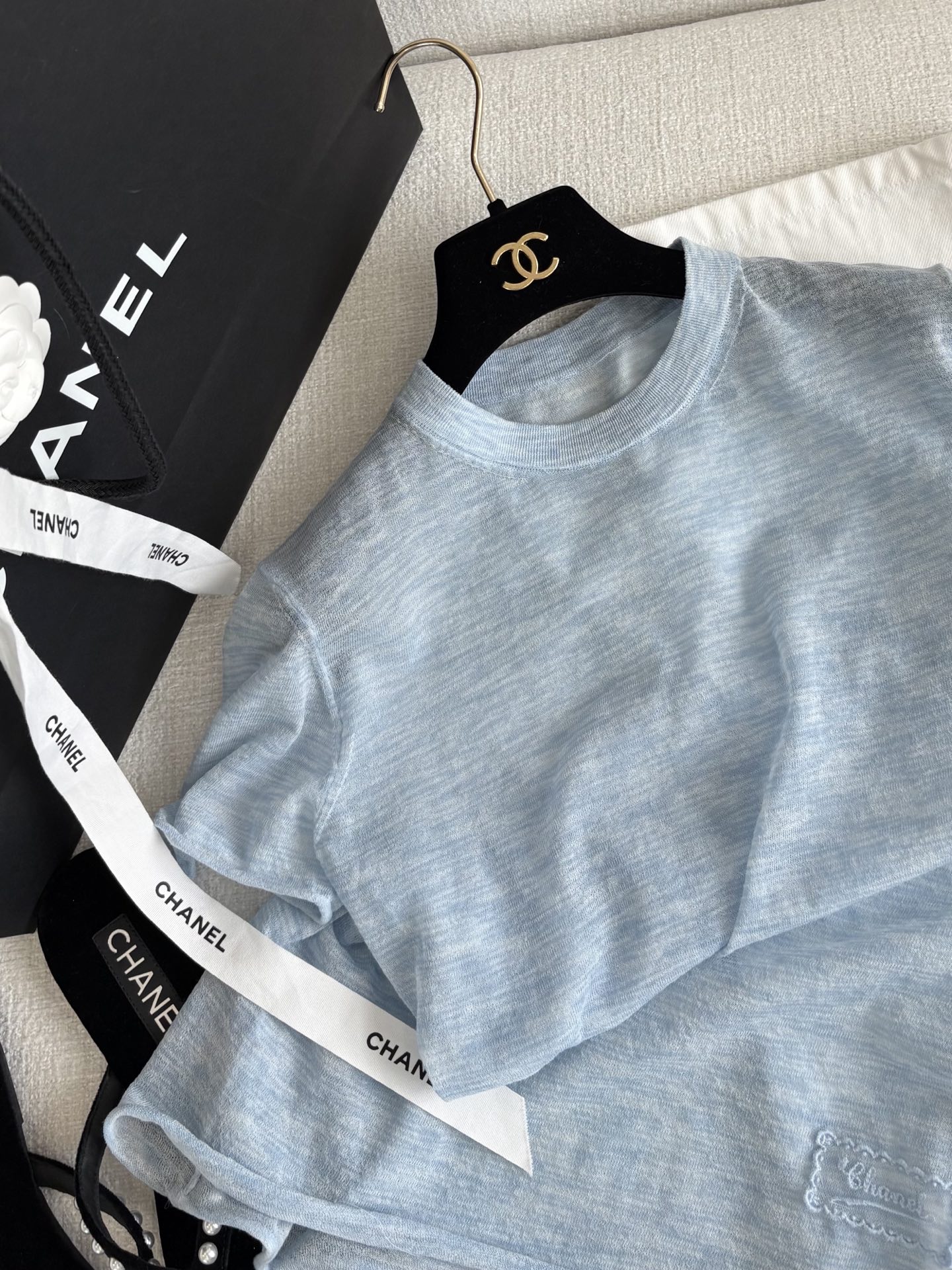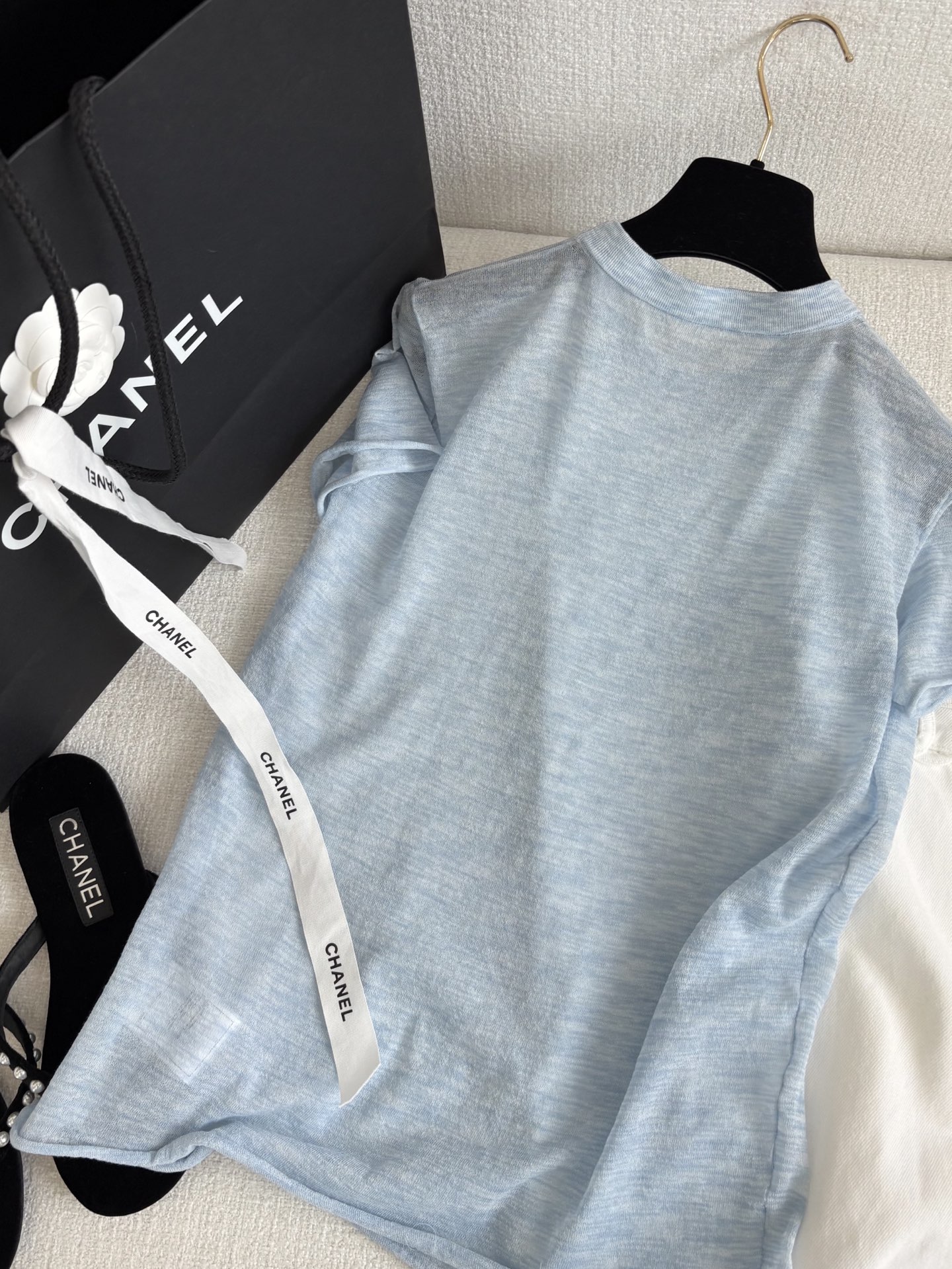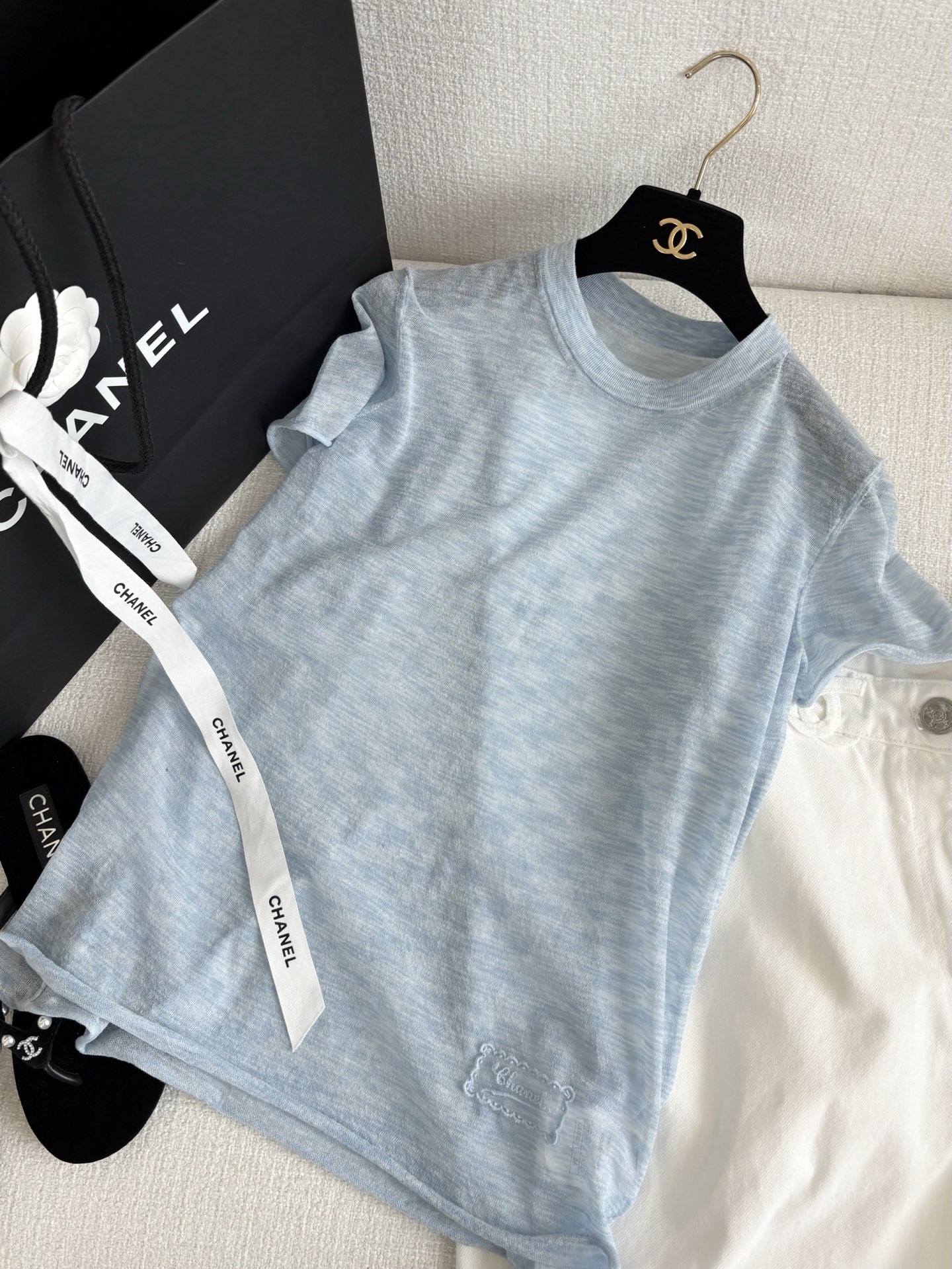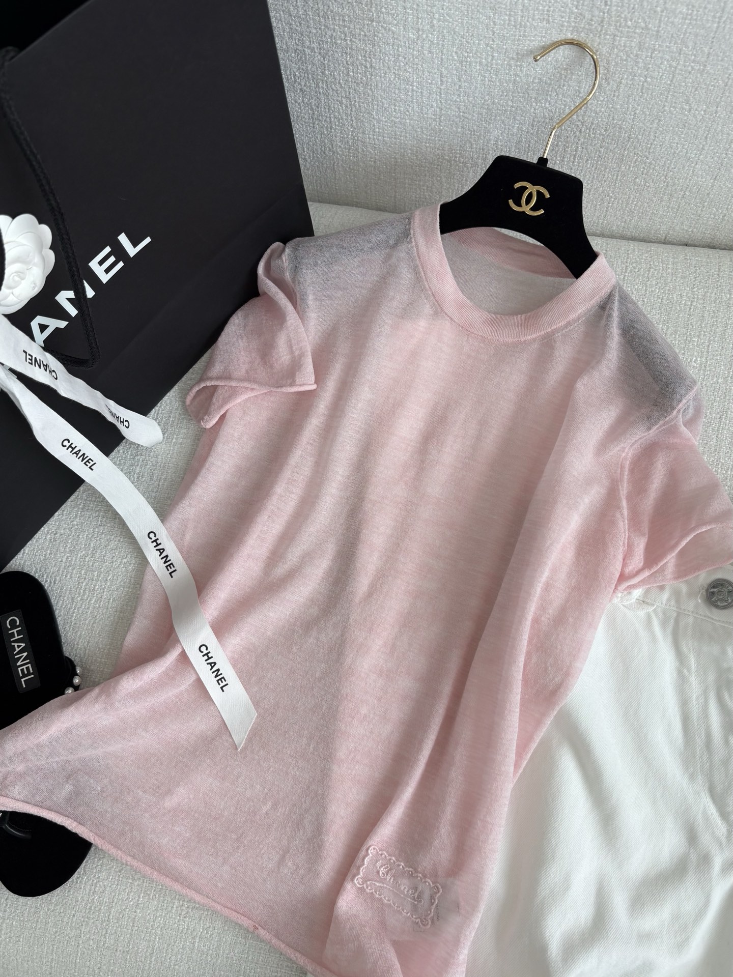 NIGO Chanel Women's Spring Summer Pink Yellow Blue Stripe Slim T-shirt Round Neck Short Sleeve Cotton Yarn Top Ngvp #nigo1596