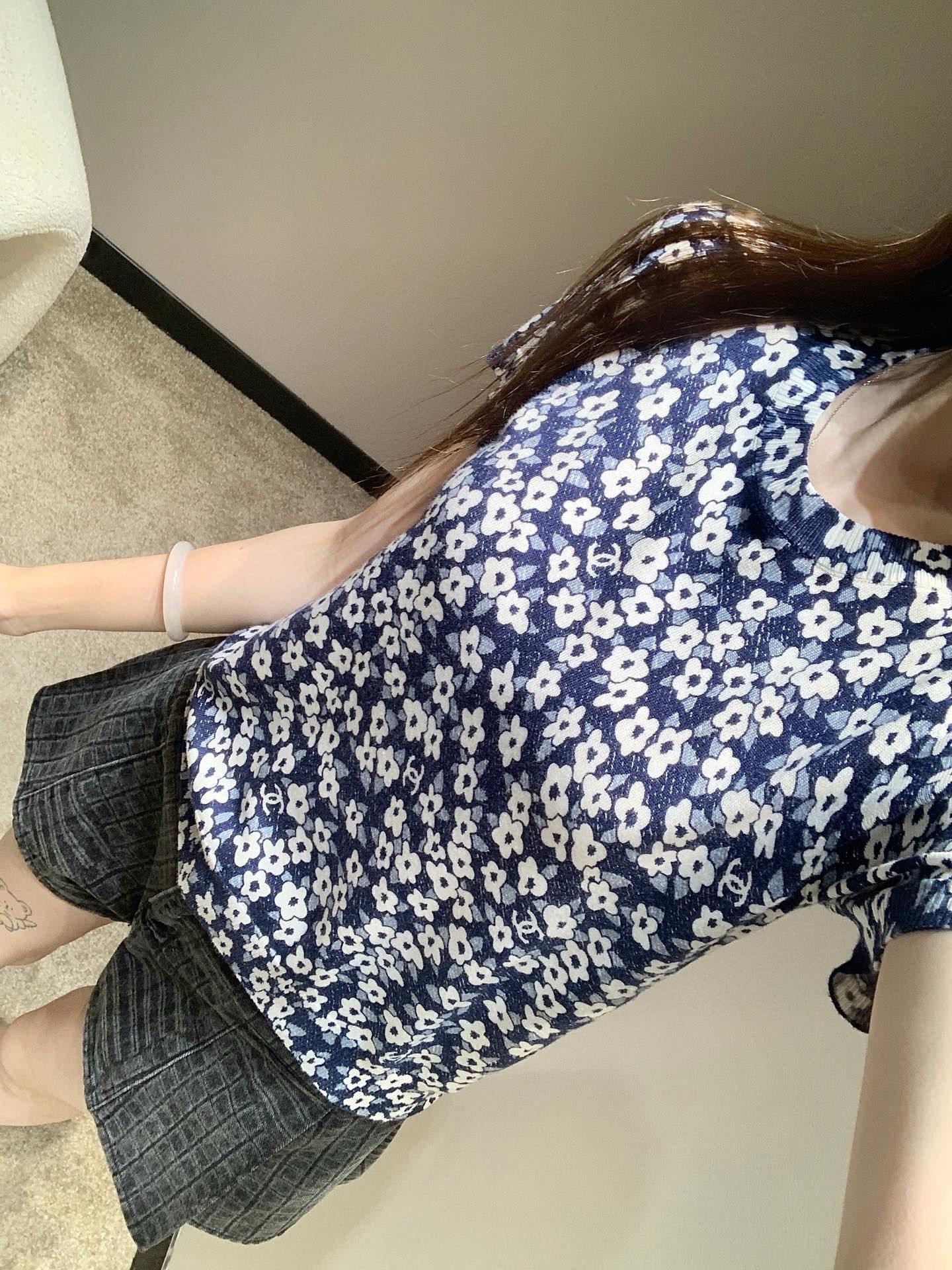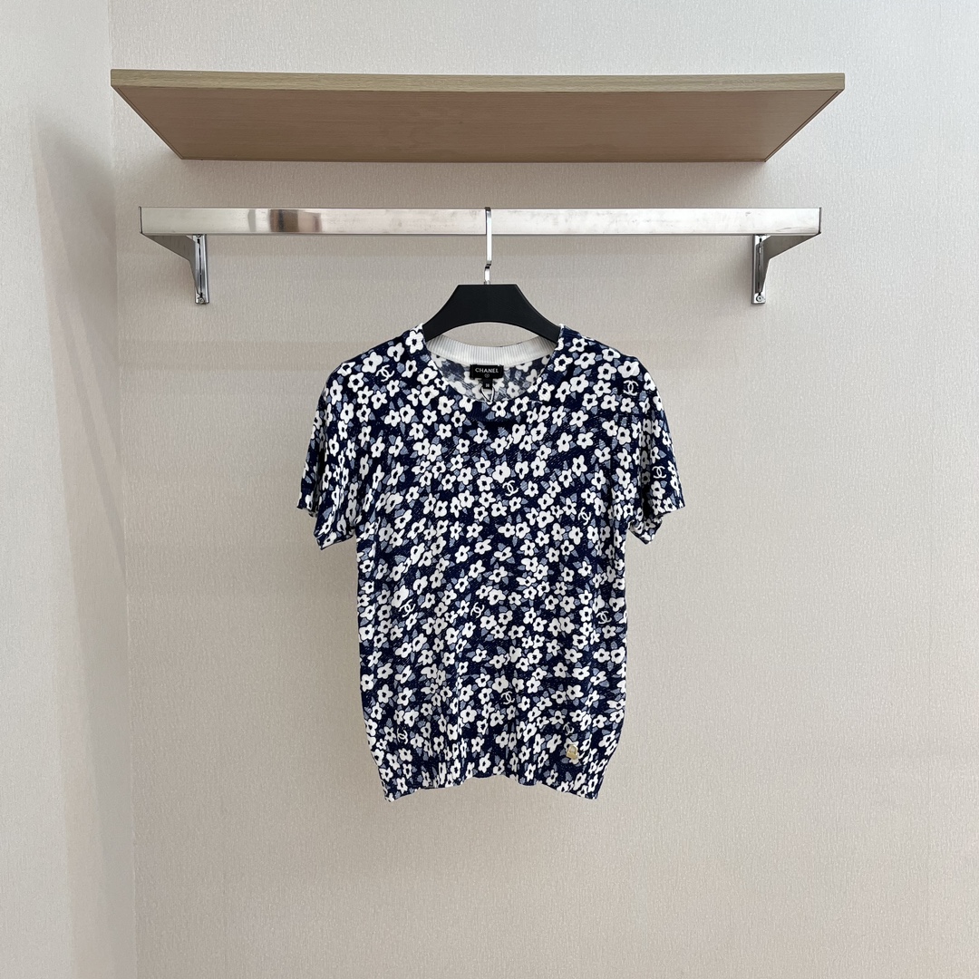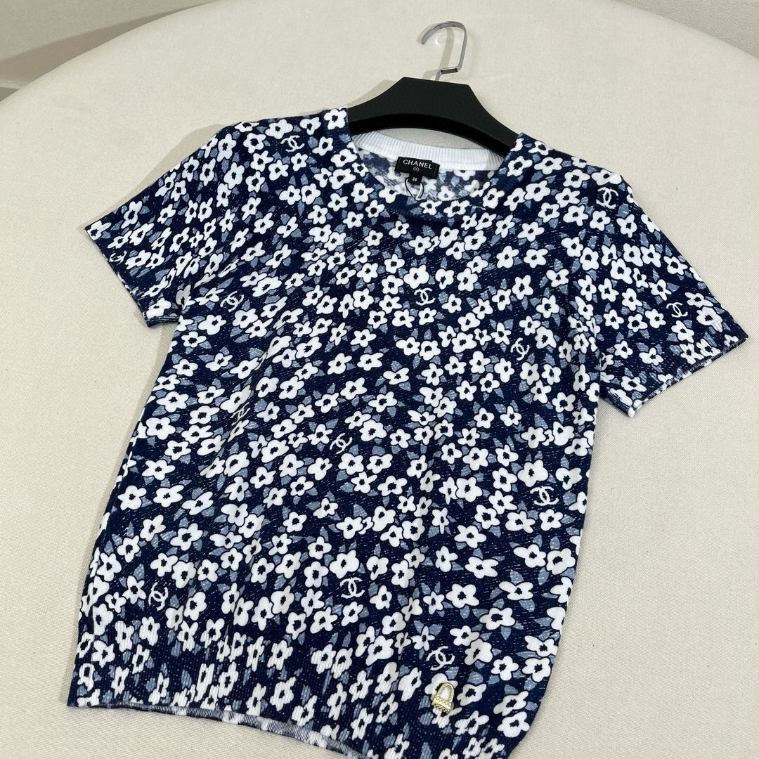 NIGO Chanel Women's Summer Floral Pattern Printed Round Neck Short Sleeve T-Shirt #nigo736578