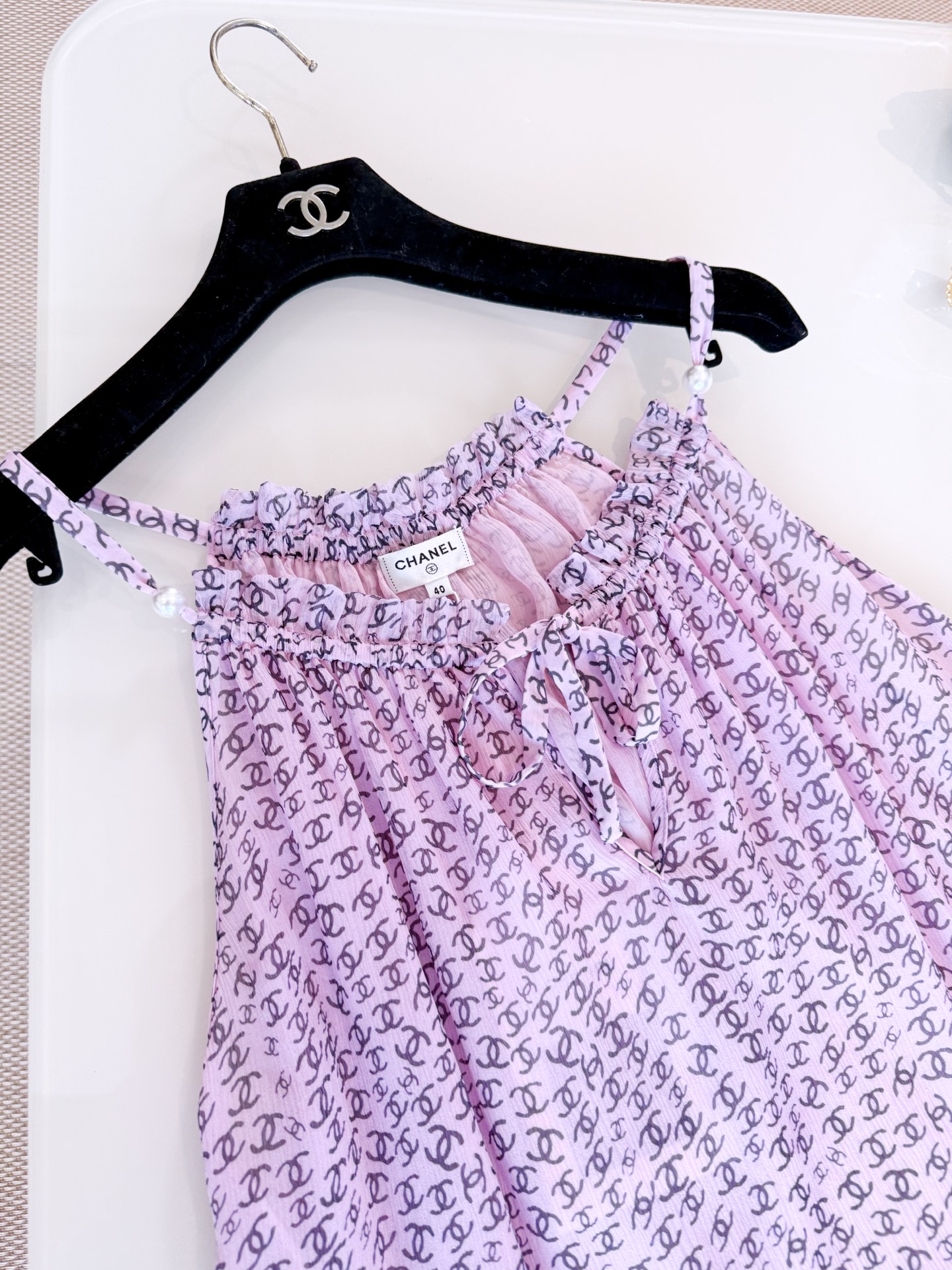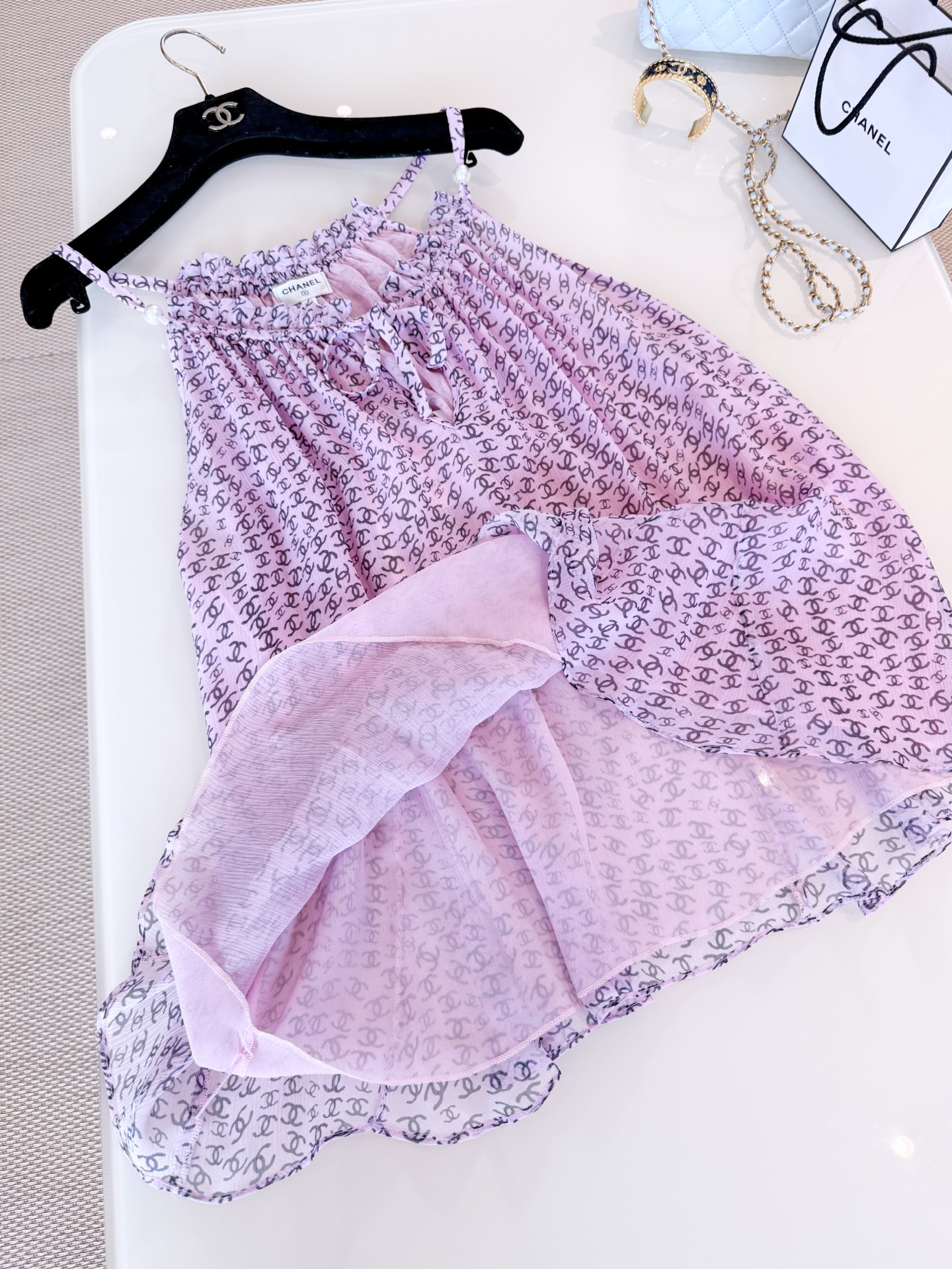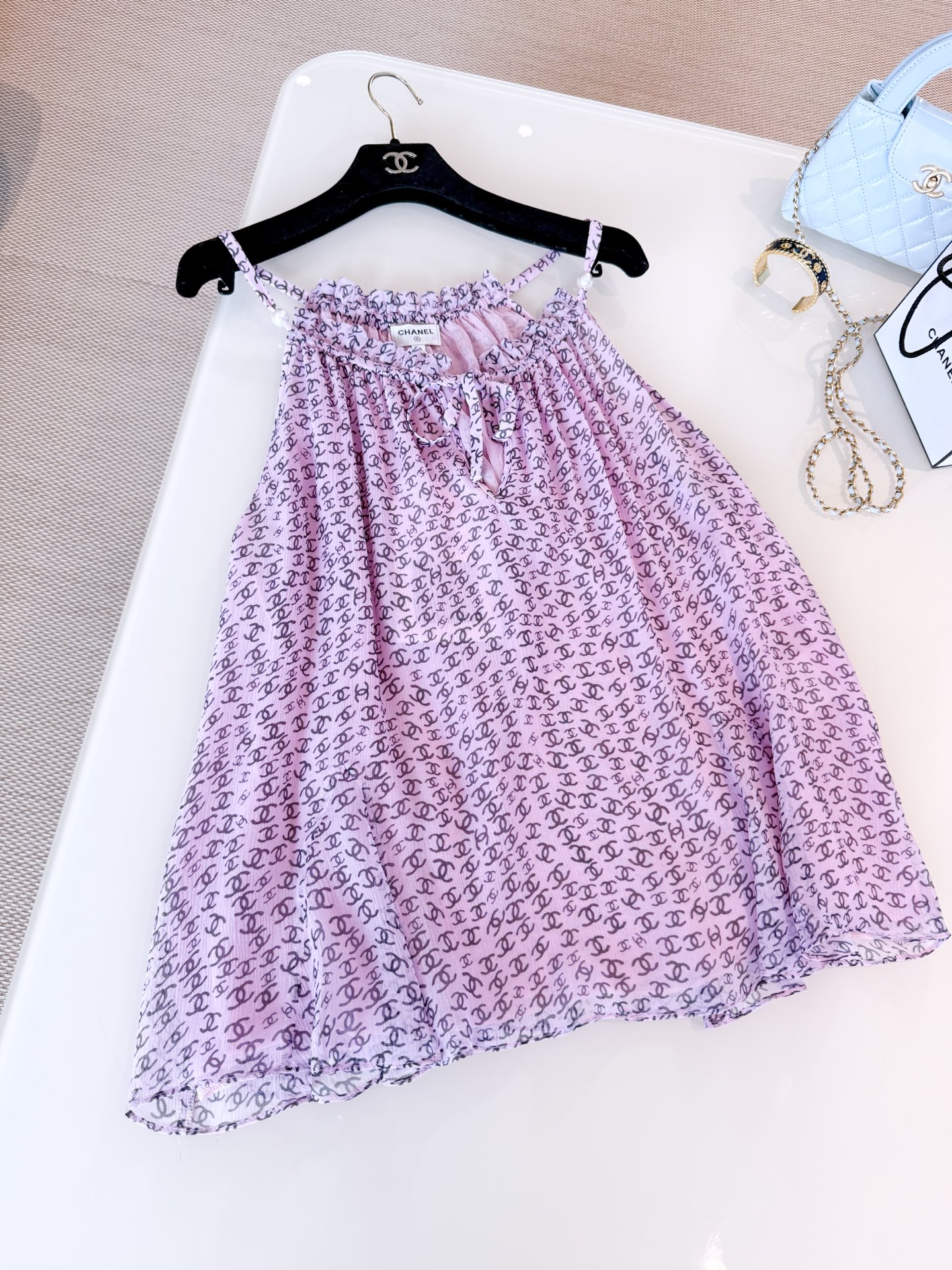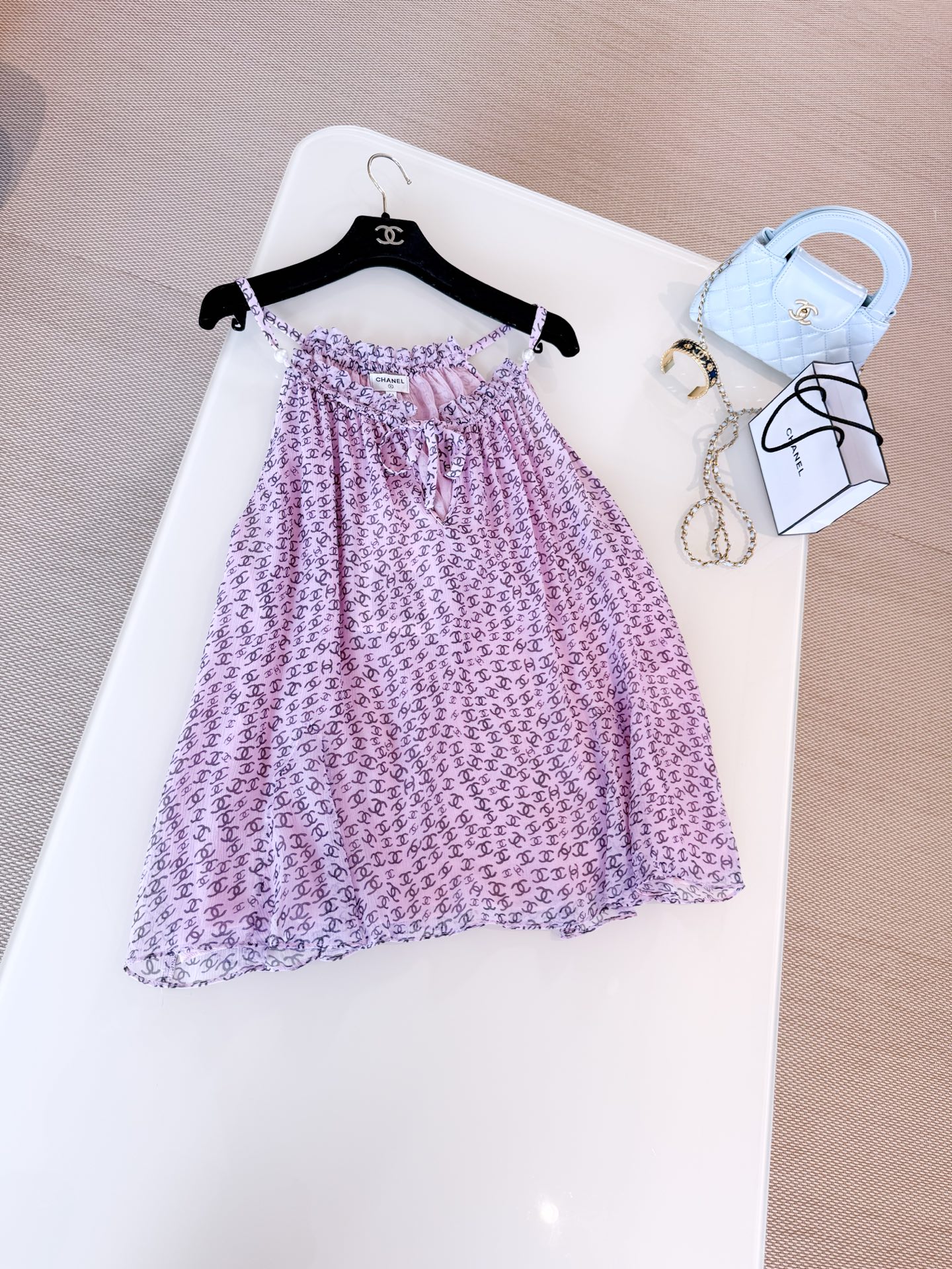NIGO Chanel Women's Summer Pink And Blue Logo Print Halter Silk Tank Top #nigo77963
