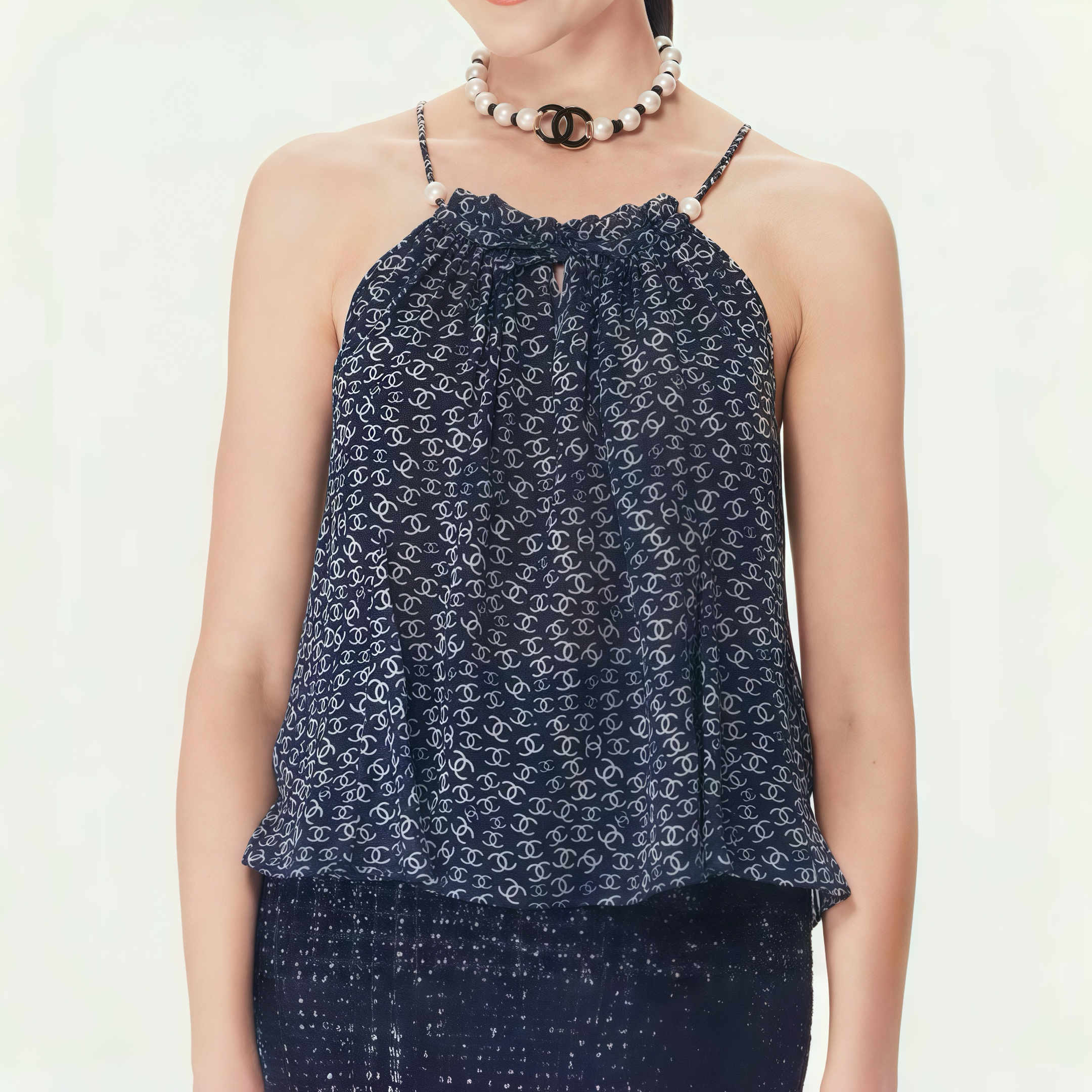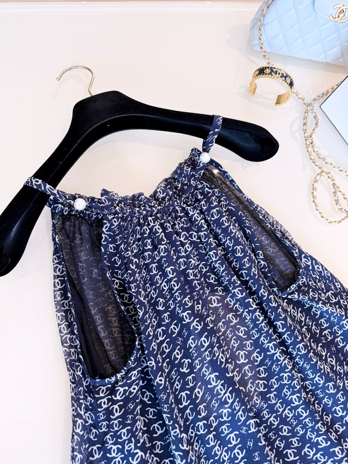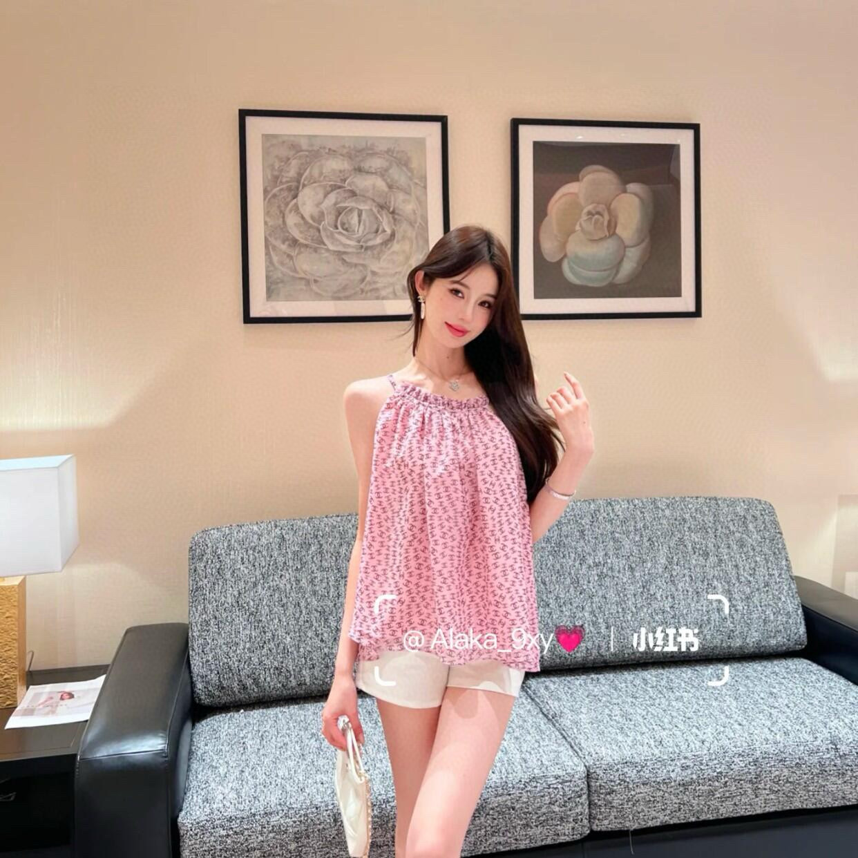 NIGO Chanel Women's Summer Pink And Blue Logo Print Halter Silk Tank Top #nigo77963