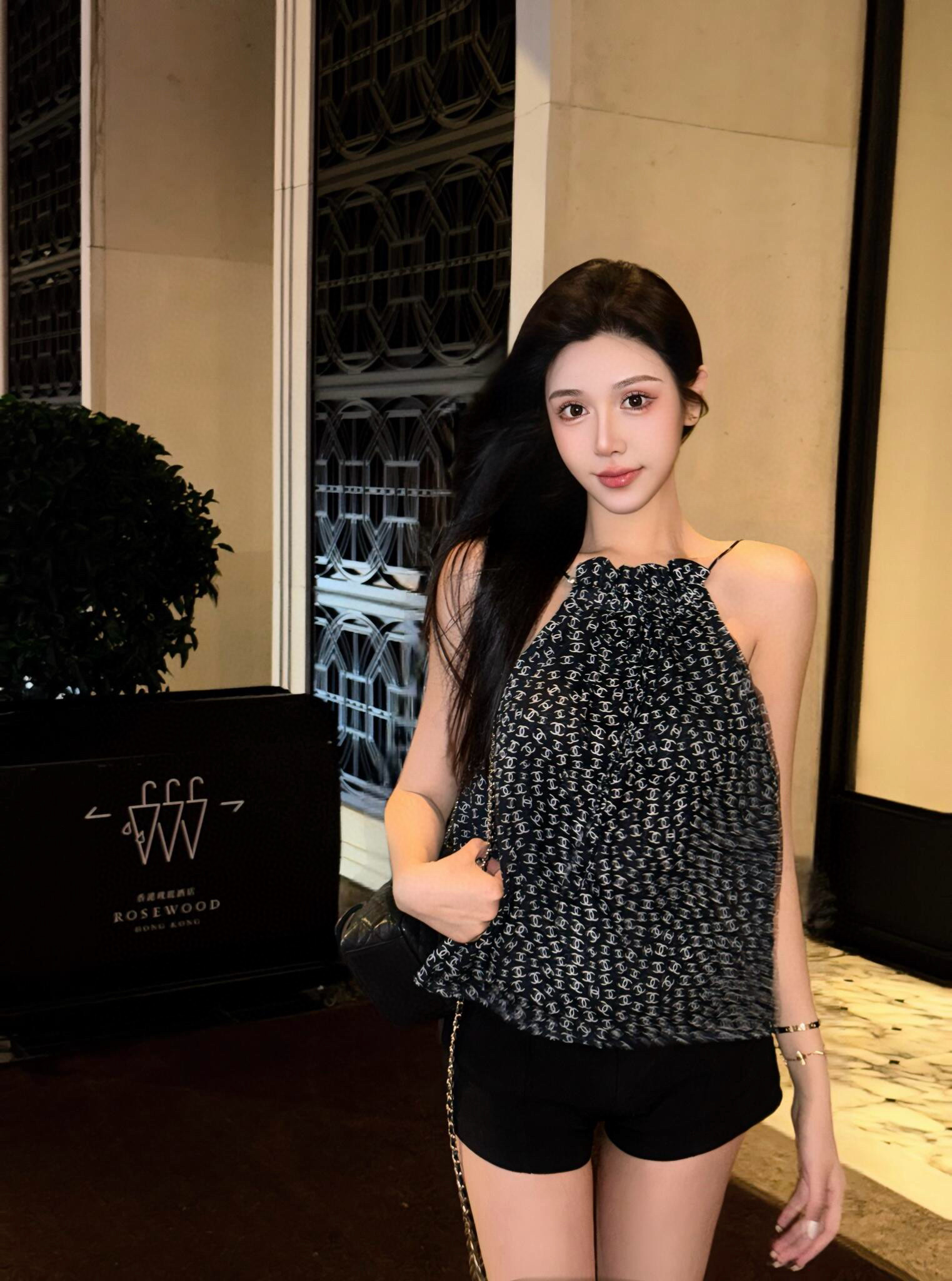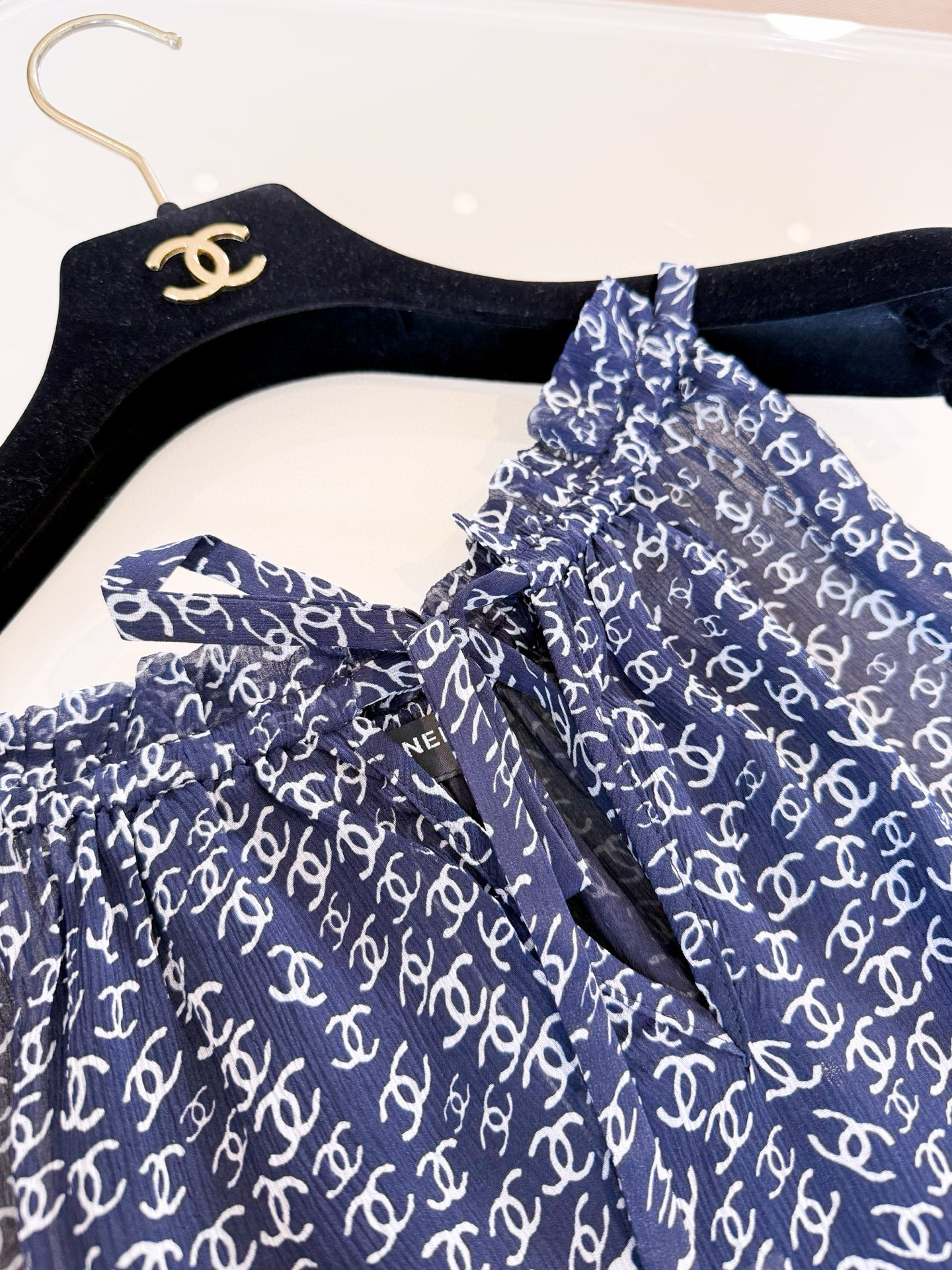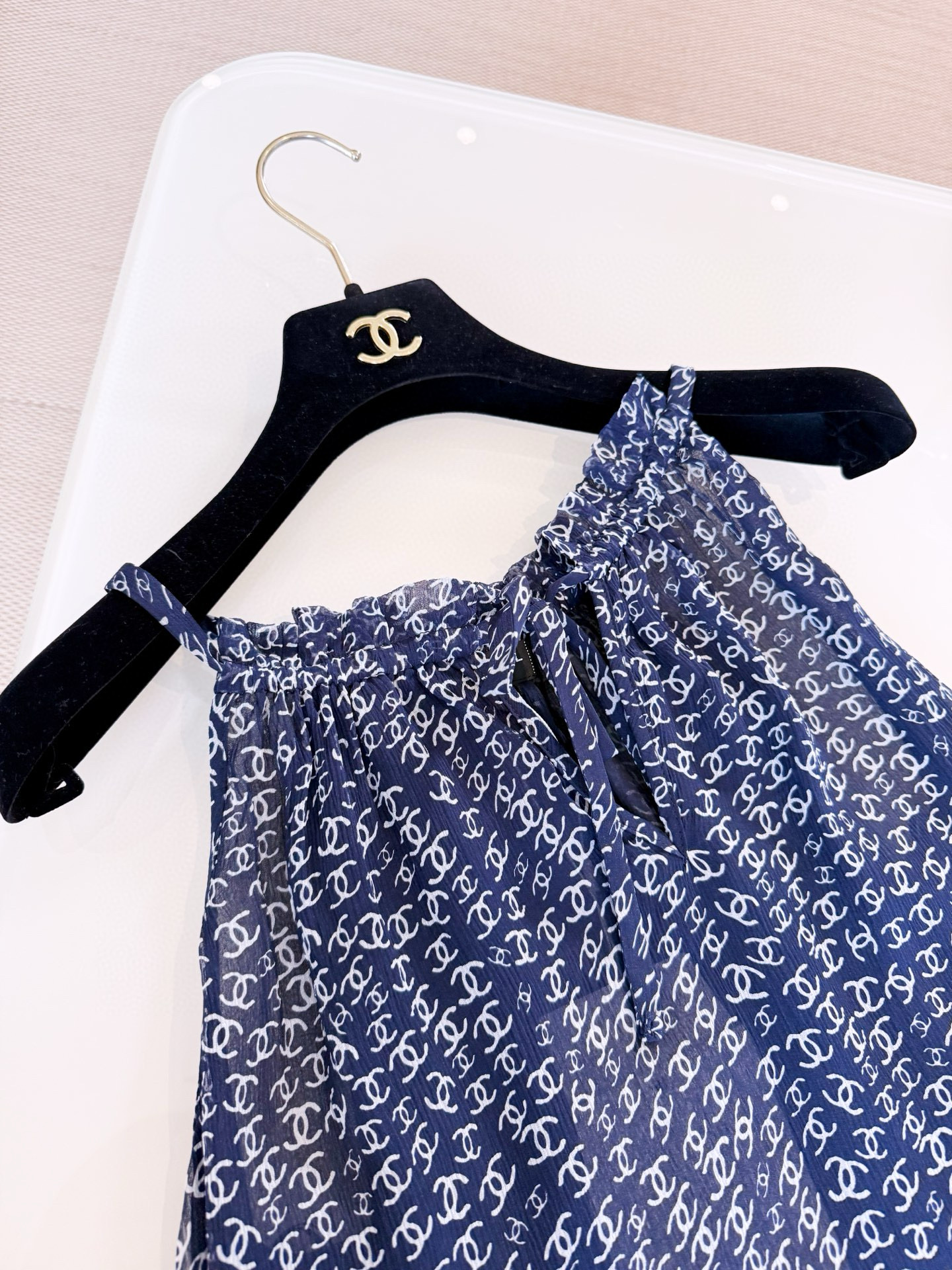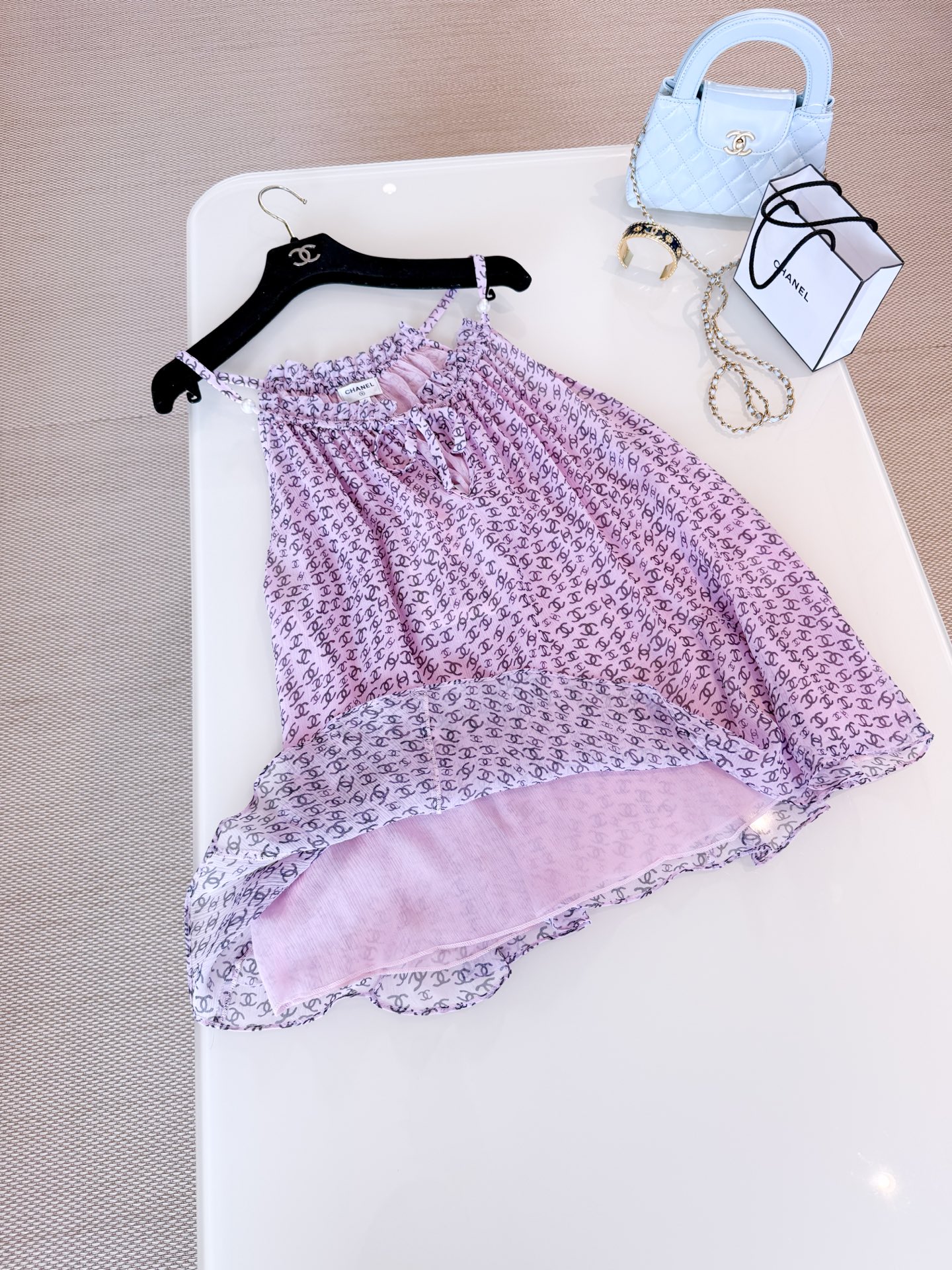 NIGO Chanel Women's Summer Pink And Blue Logo Print Halter Silk Tank Top #nigo77963