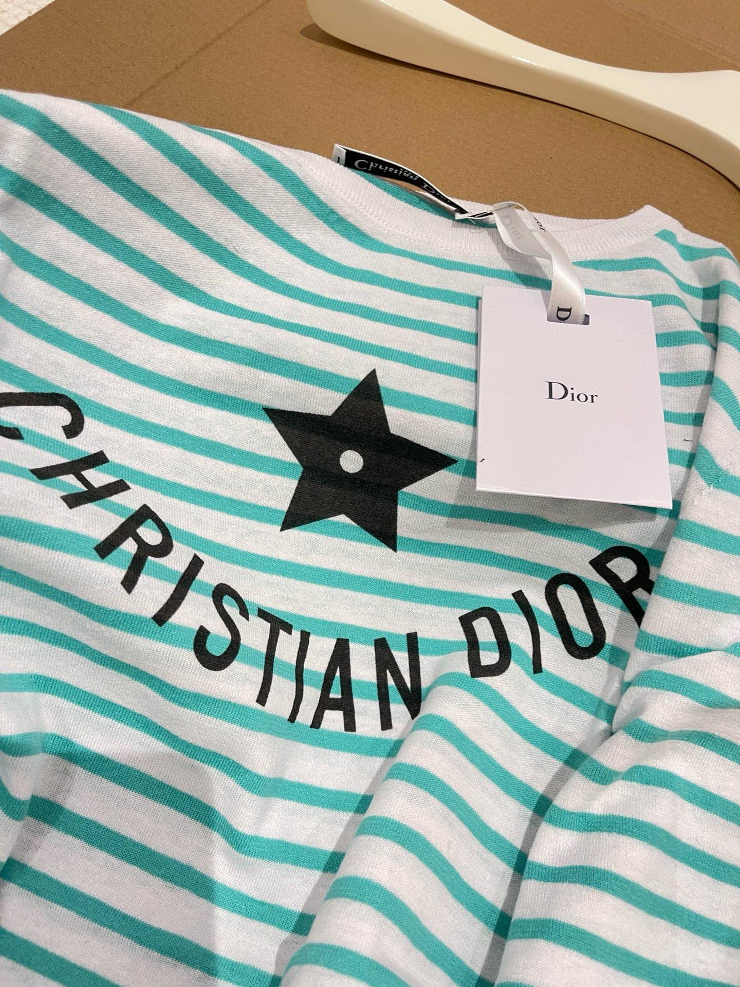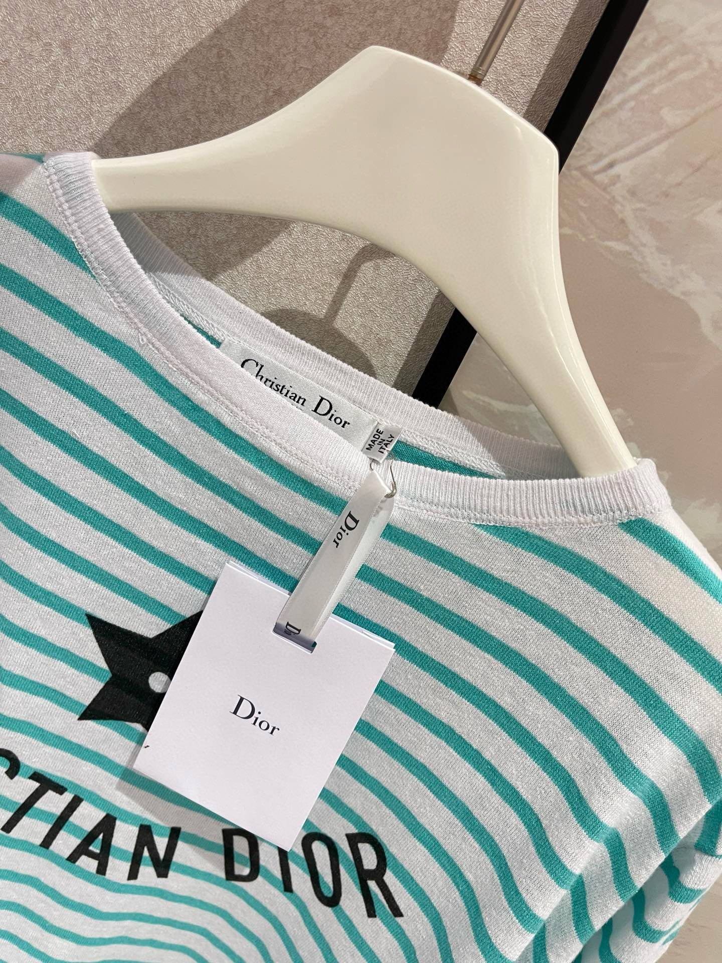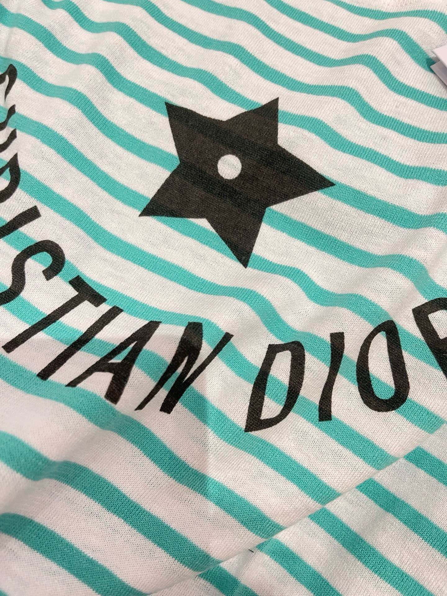 NIGO Dior Women's Spring Summer Mint Green Striped Printed Cashmere Linen Knitwear Top Long Sleeve T-shirt #nigo72331