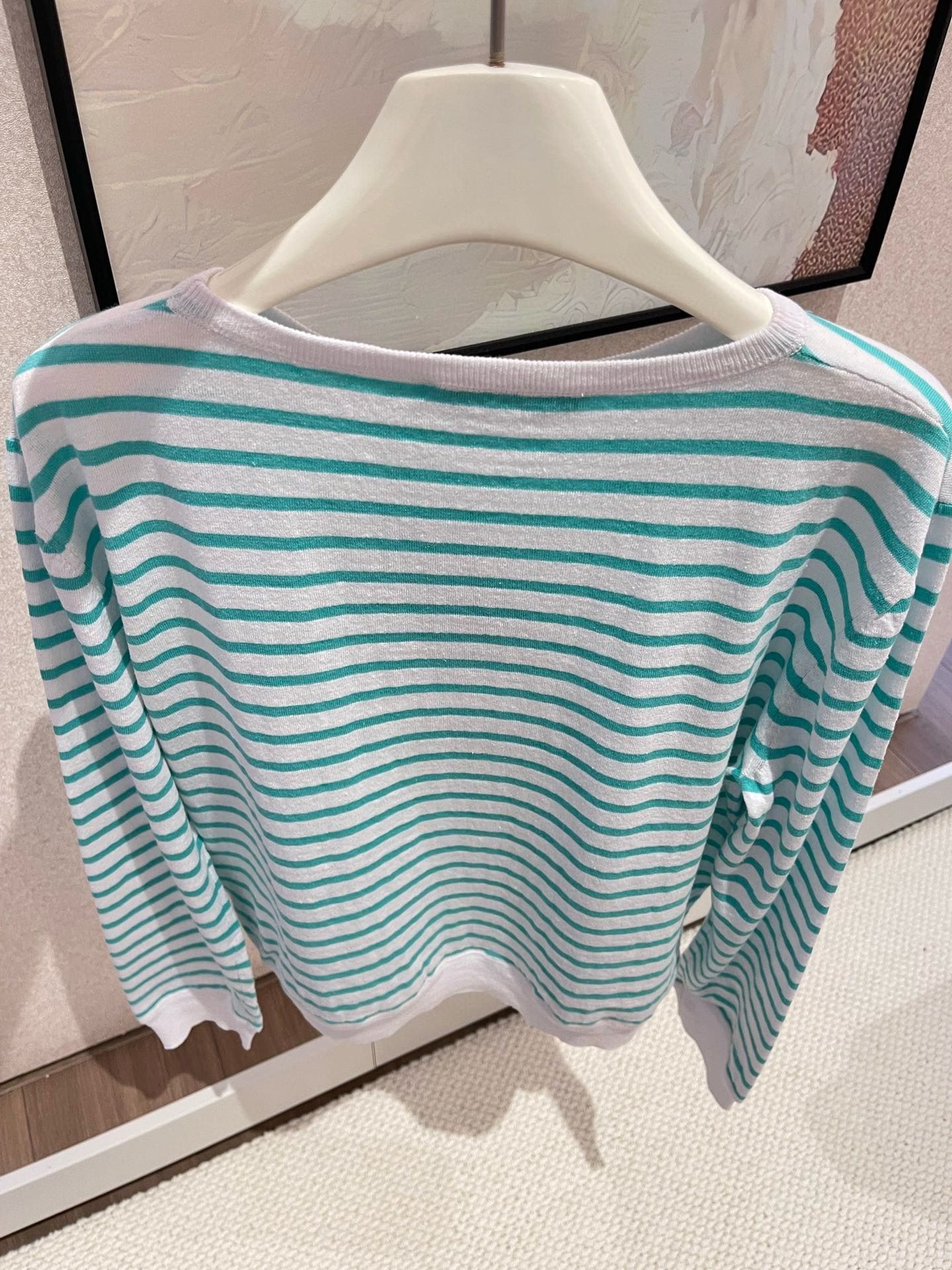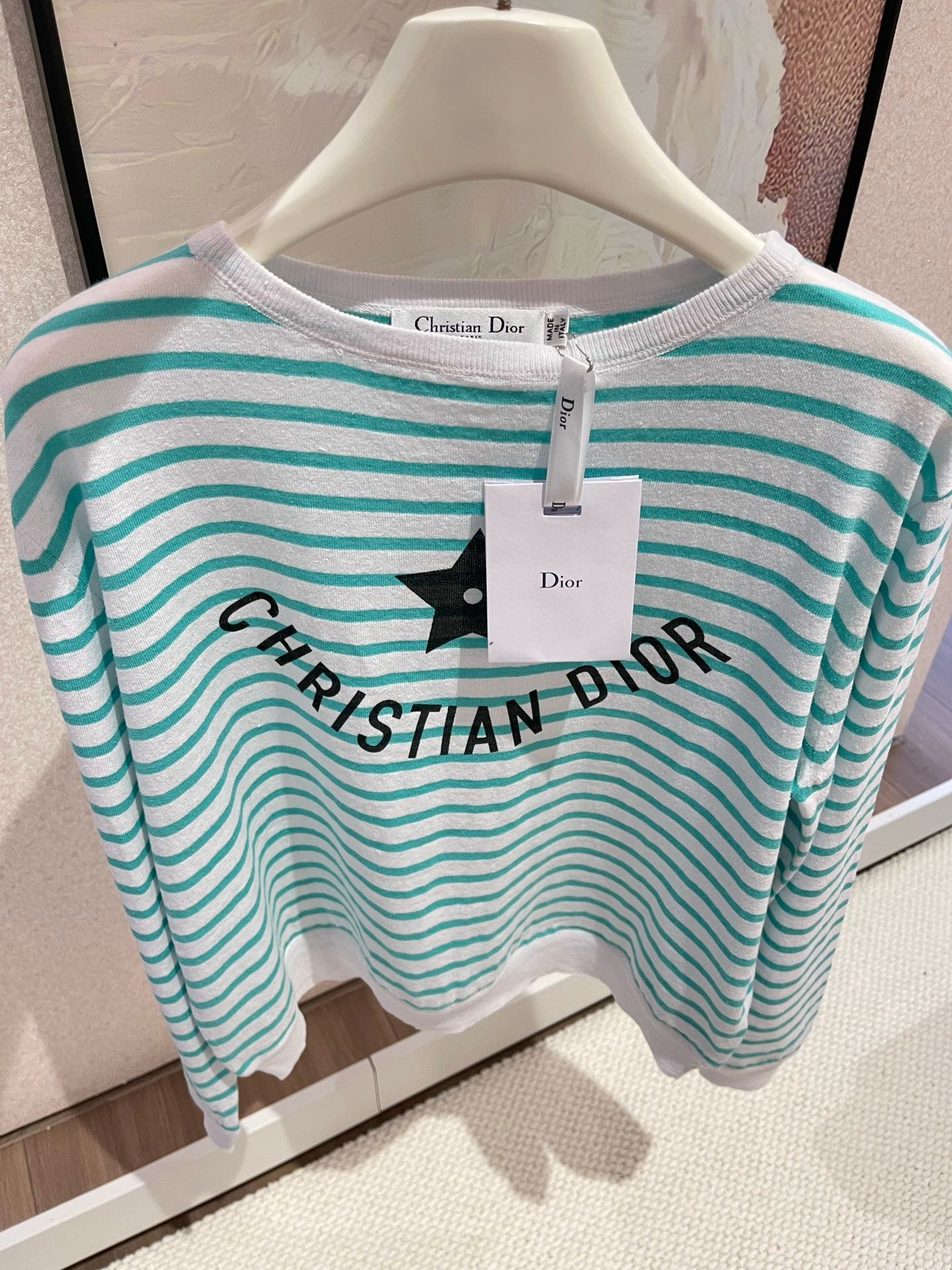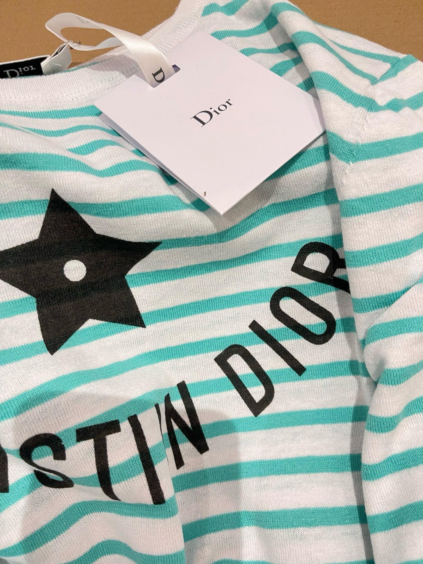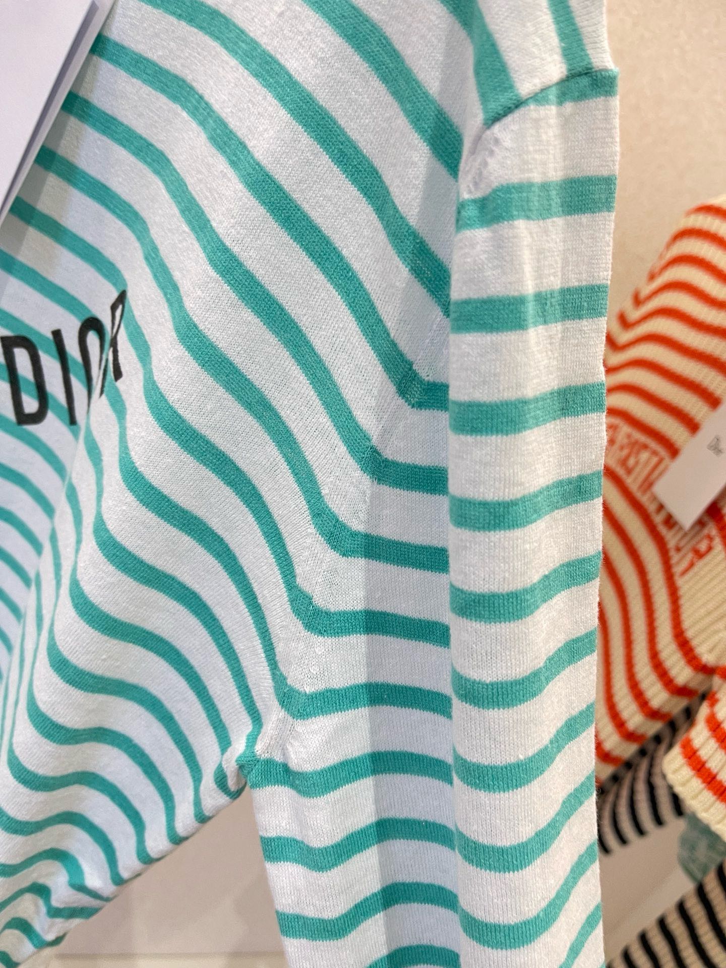 NIGO Dior Women's Spring Summer Mint Green Striped Printed Cashmere Linen Knitwear Top Long Sleeve T-shirt #nigo72331