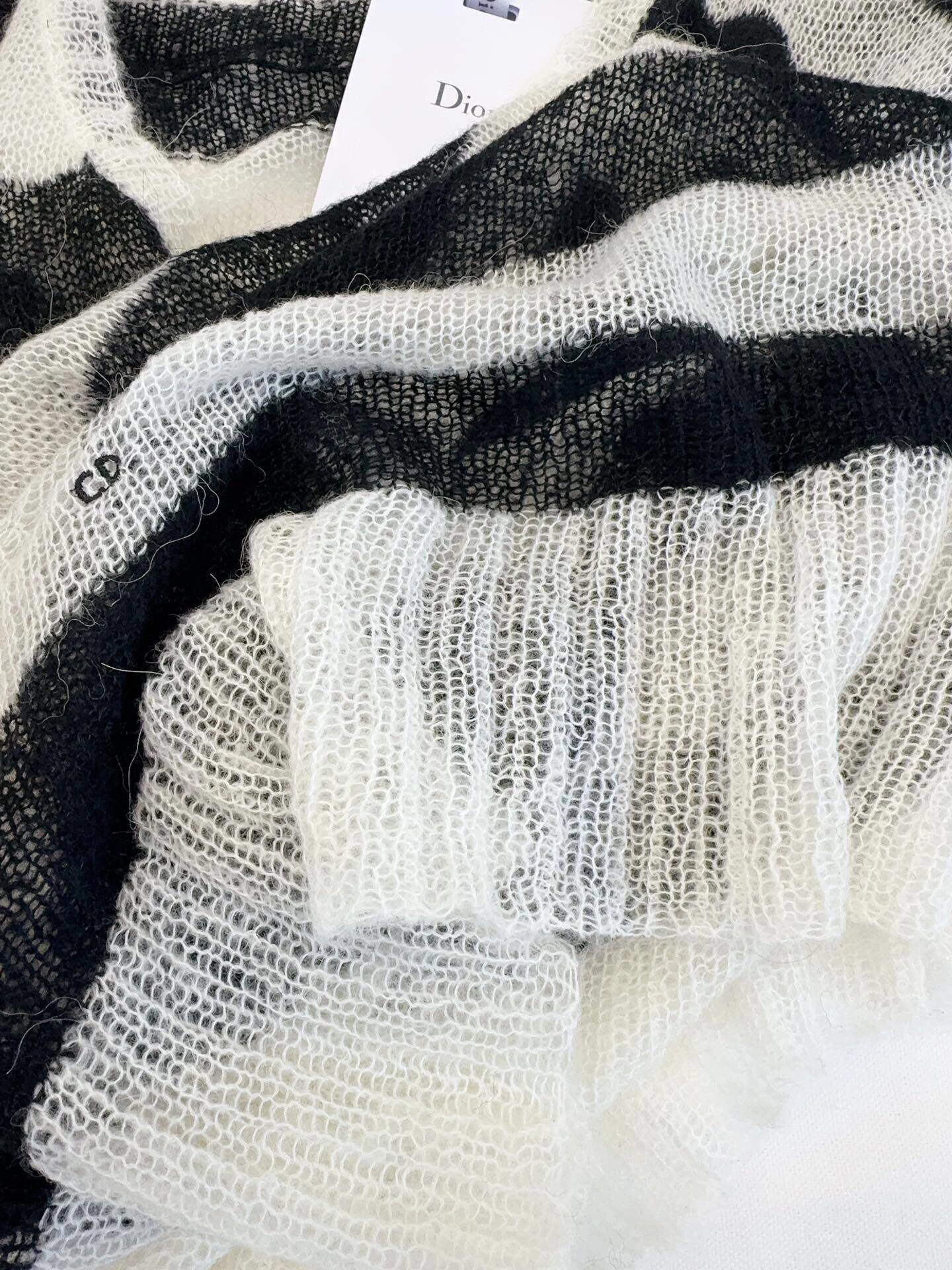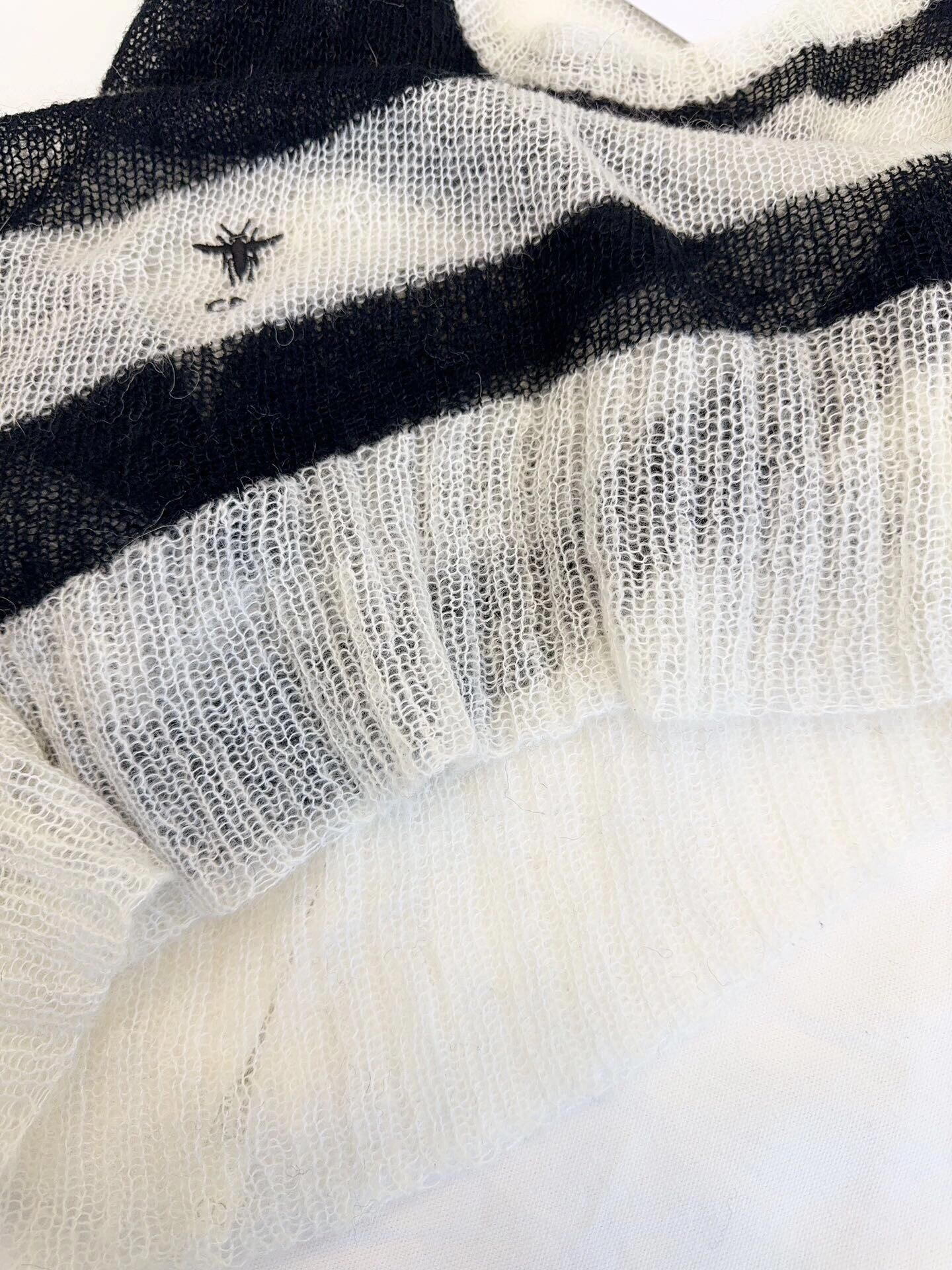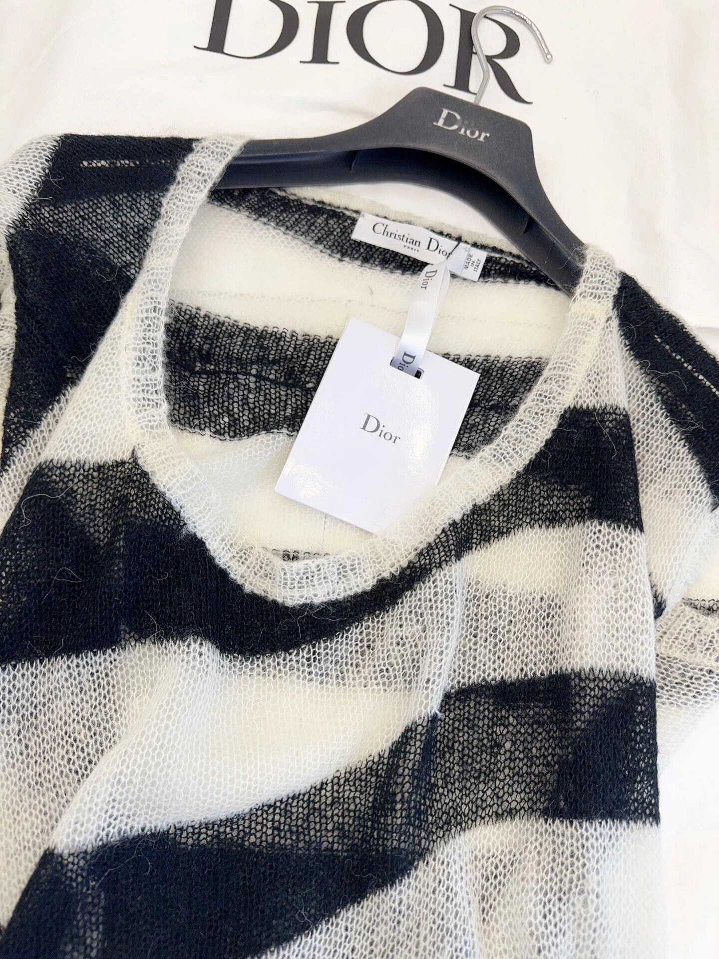NIGO Dior Women's Summer Striped Asymmetric Cashmere Loose Short Sleeve Sweater T-Shirt #nigo72549