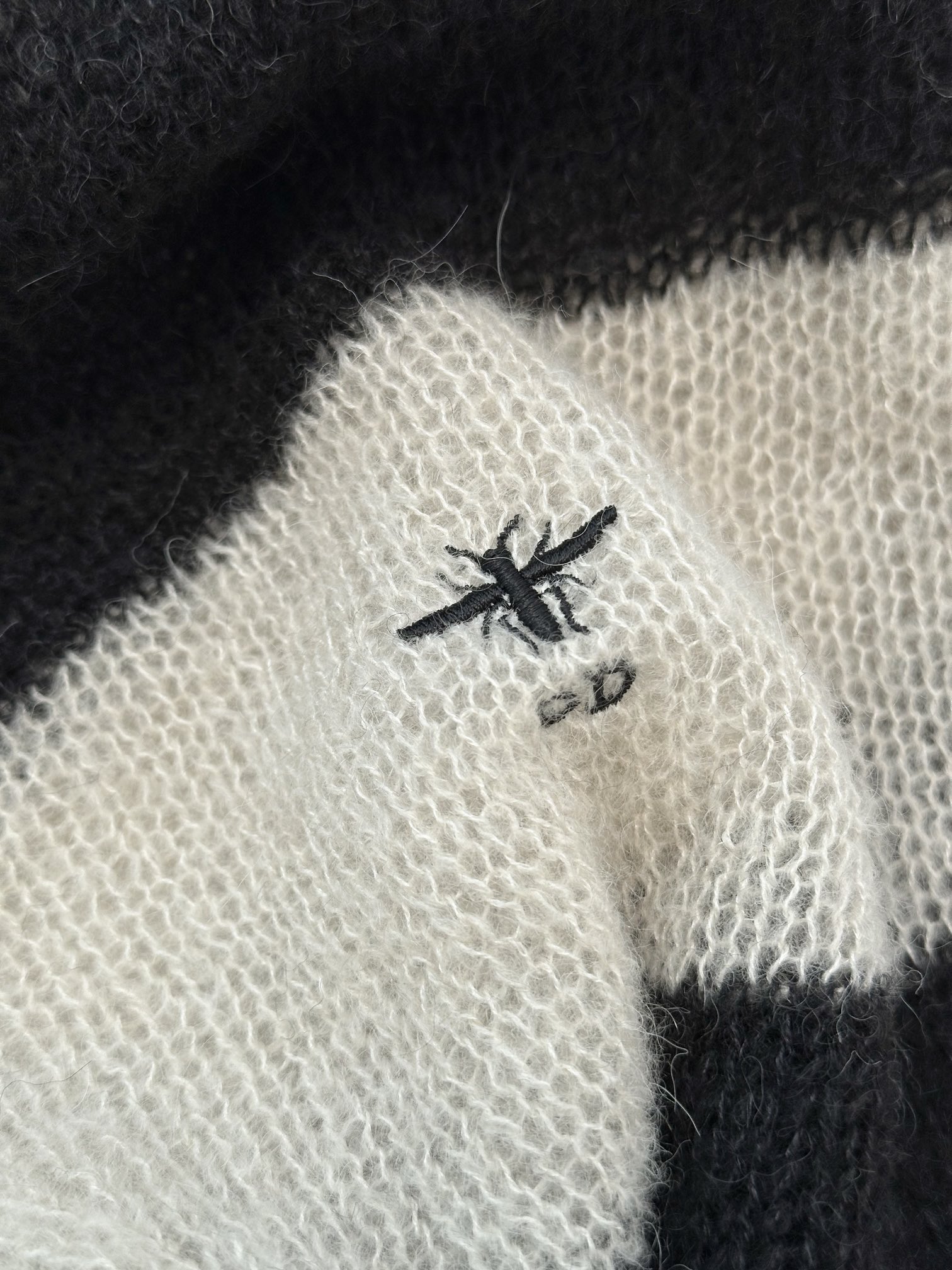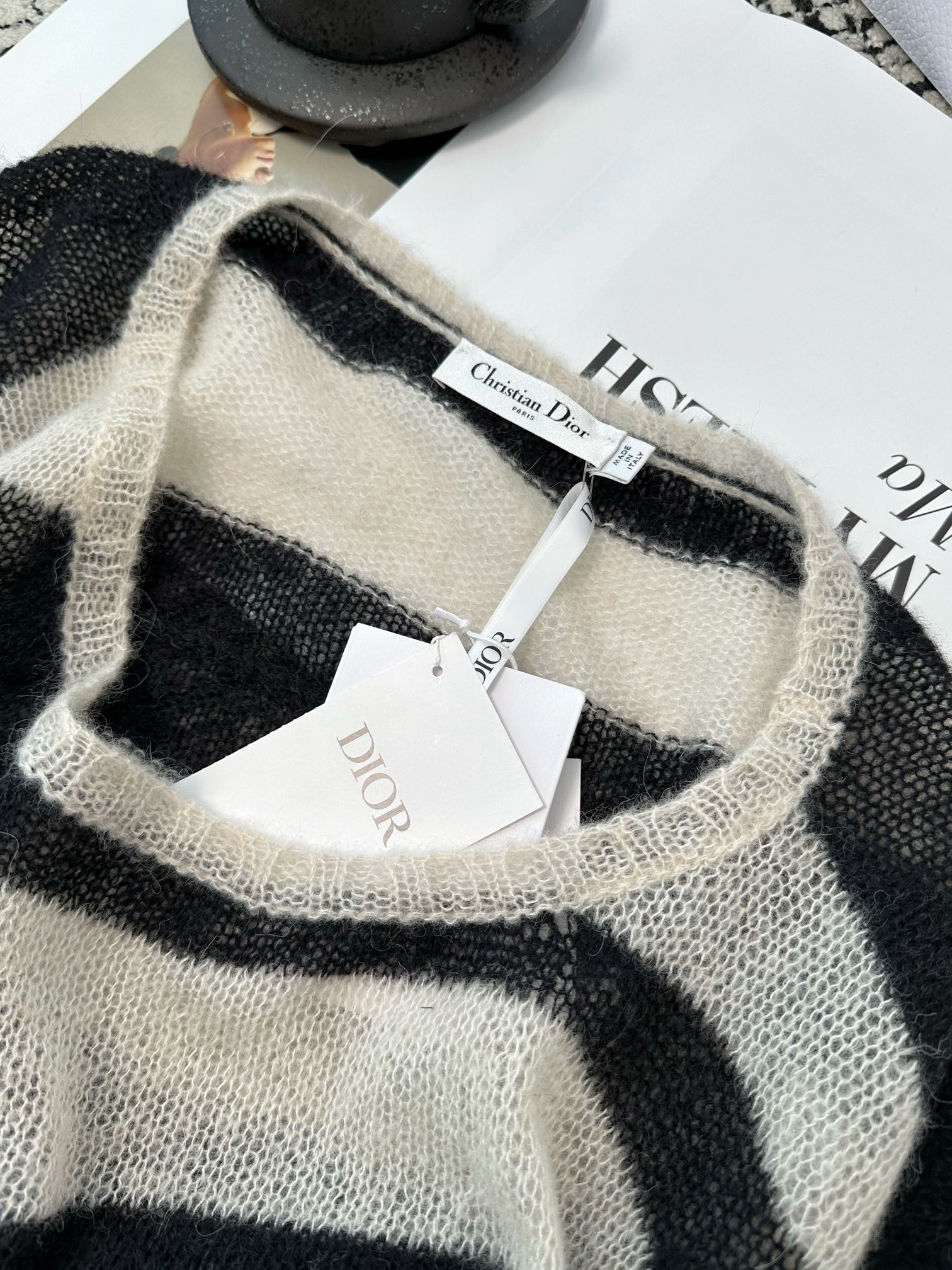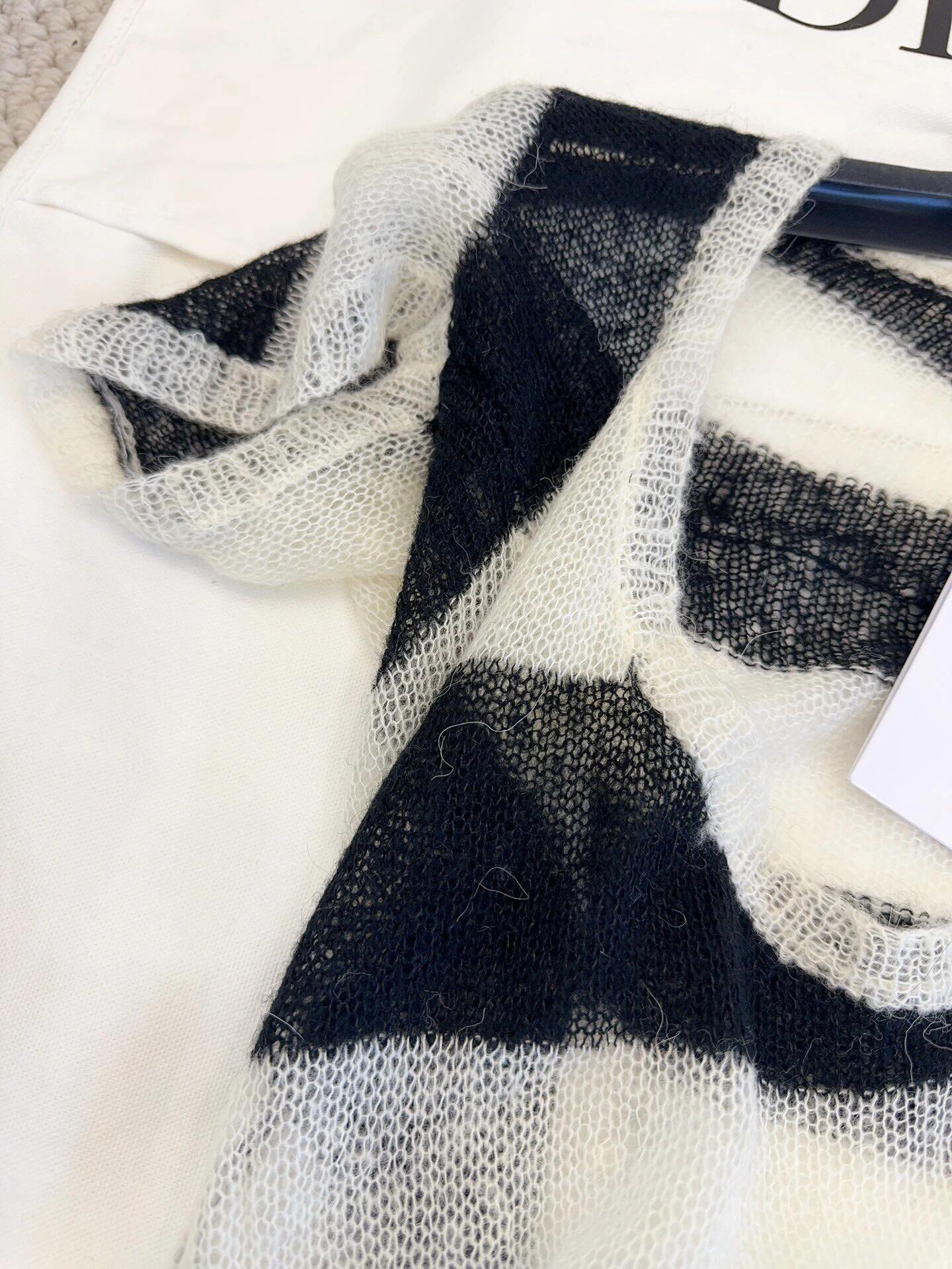 NIGO Dior Women's Summer Striped Asymmetric Cashmere Loose Short Sleeve Sweater T-Shirt #nigo72549