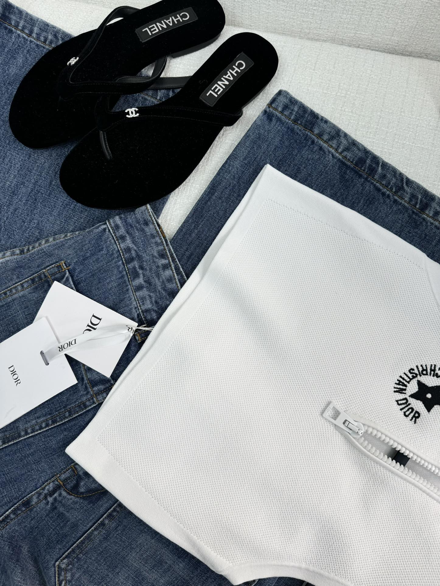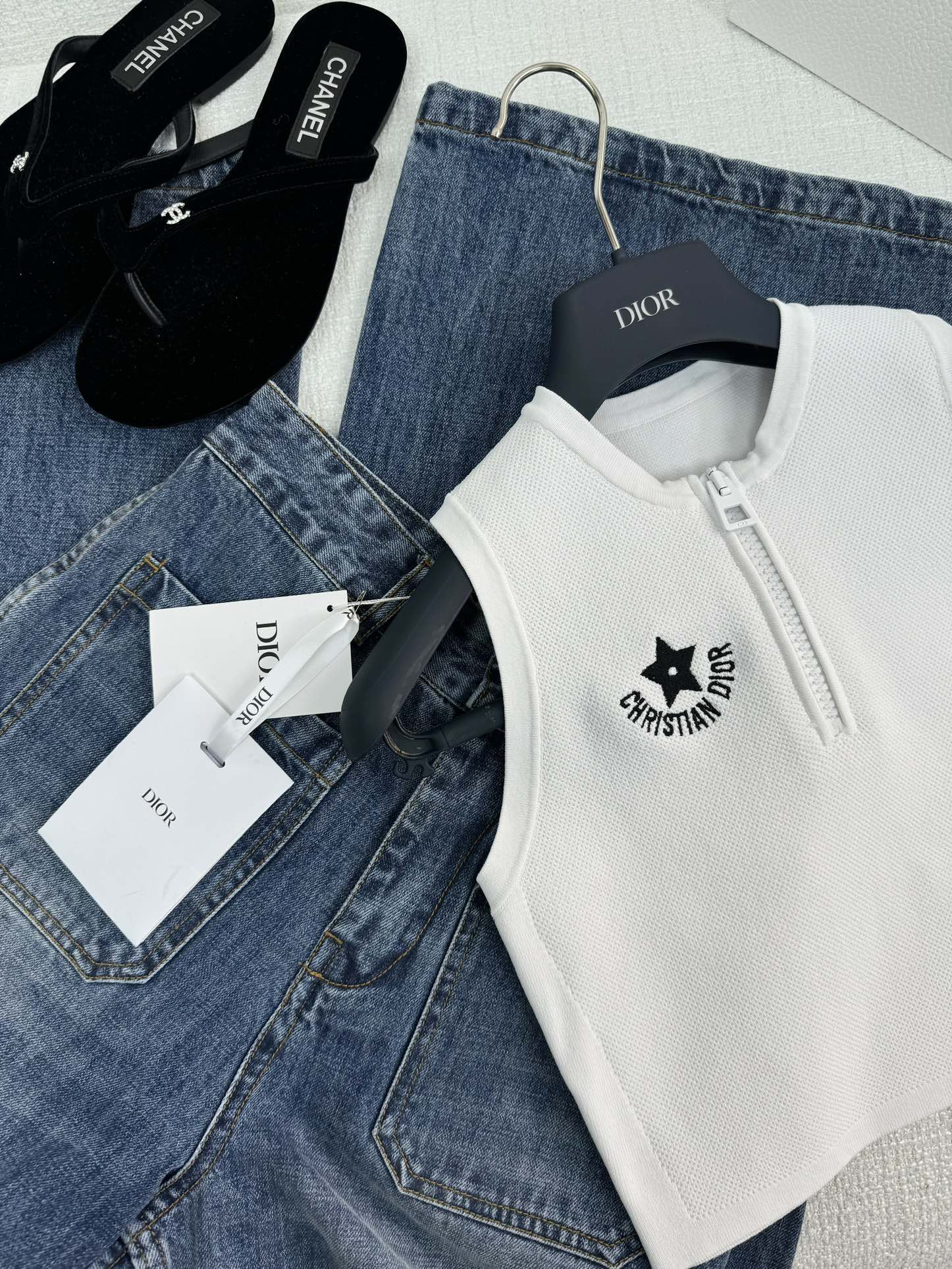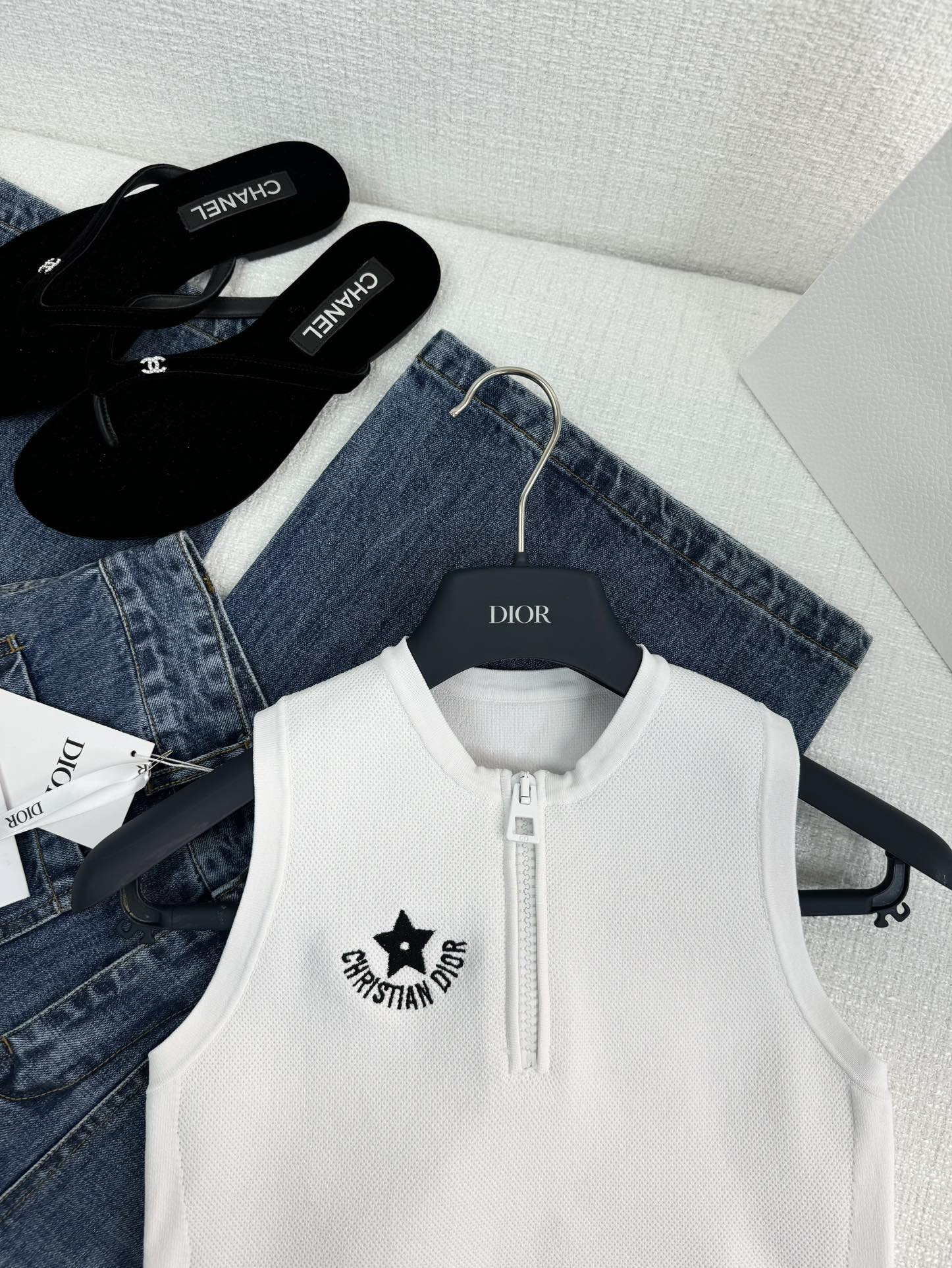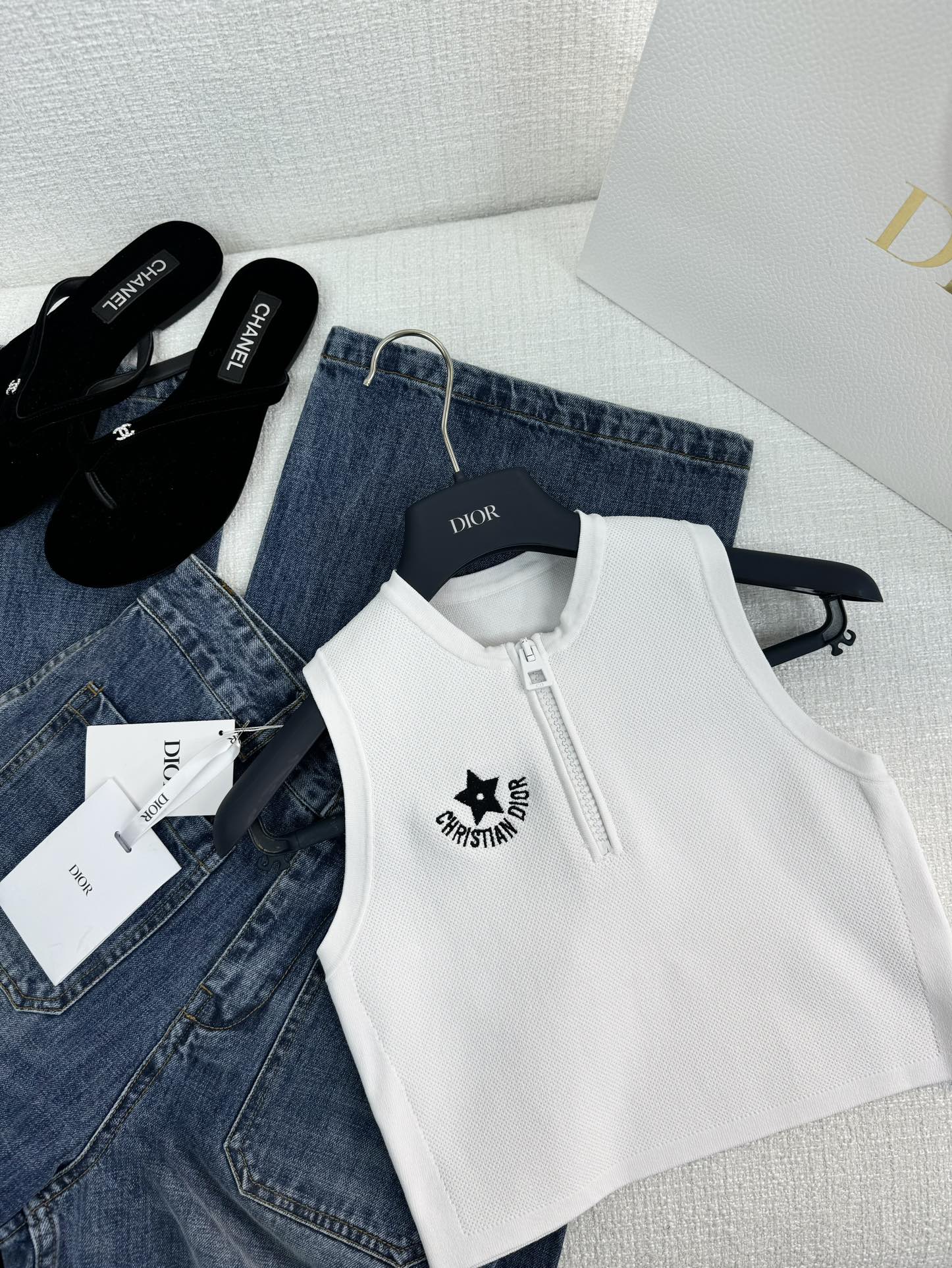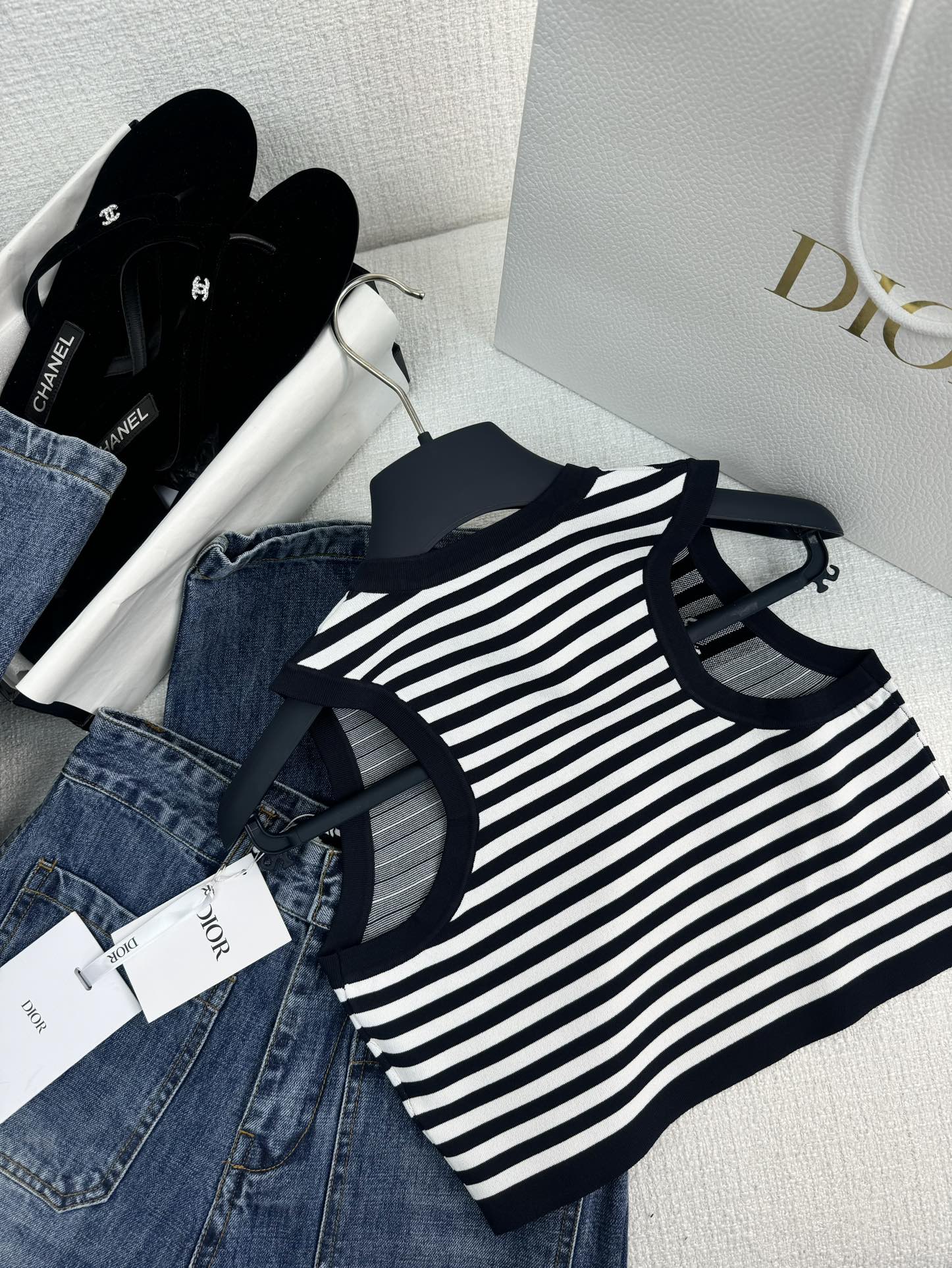 NIGO Dior Women's Summer Striped Logo Round Neck Half Zipper Shorts Knit Tank Top #nigo72318