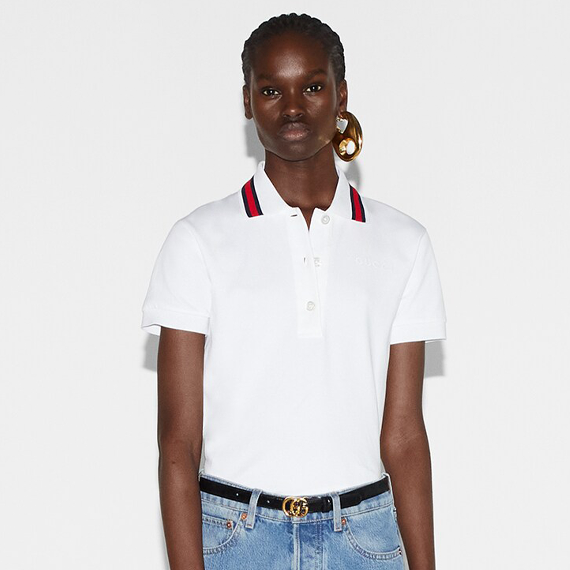 NIGO Gucci Women's Spring And Summer Fashion Casual Logo Embroidery Polo Shirt Cotton Top Striped Button Trend T-shirt #nigo71373