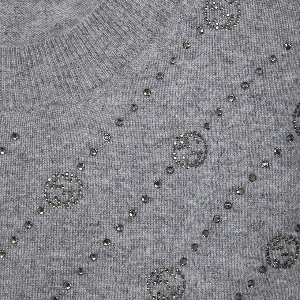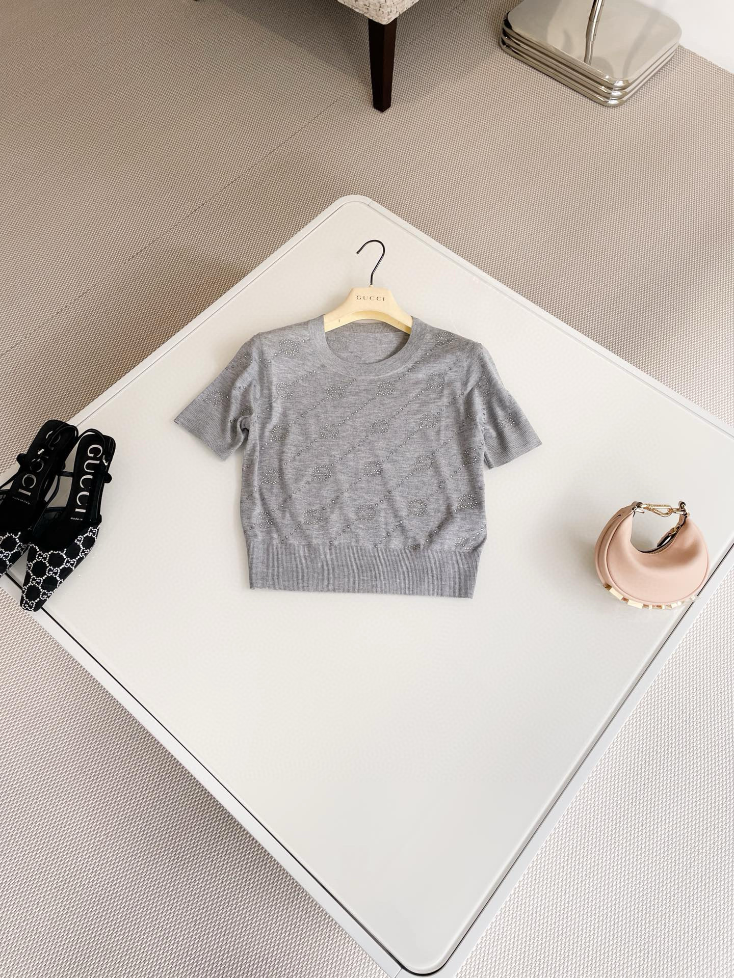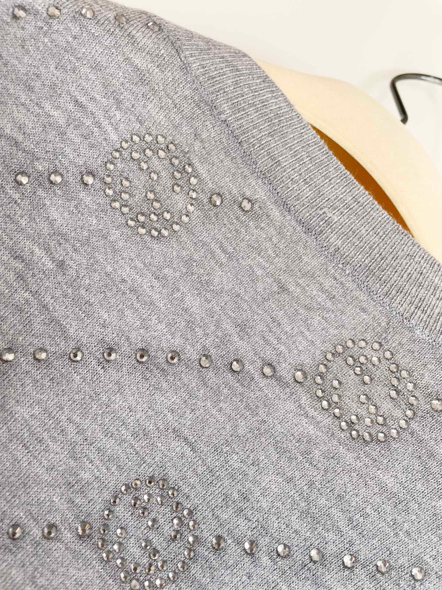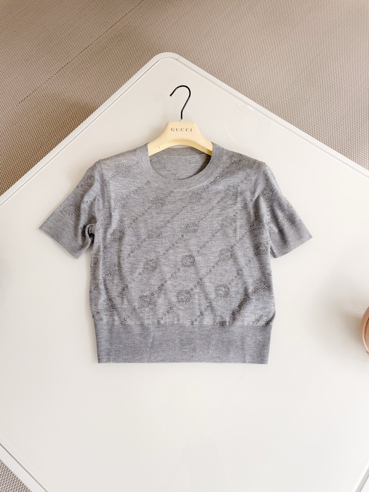 NIGO Gucci Women's Summer Gray Interlocking Double G Rhinestone Knit Pullover Top #nigo98527