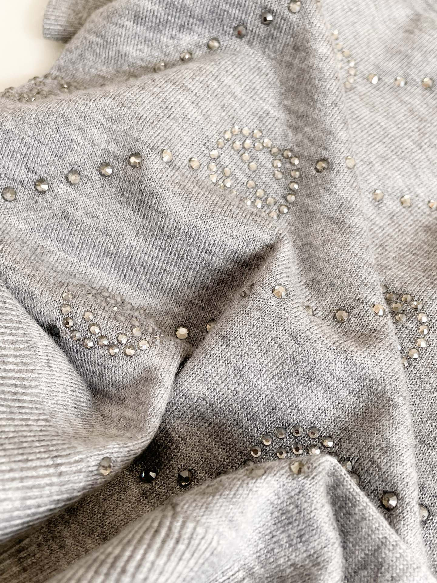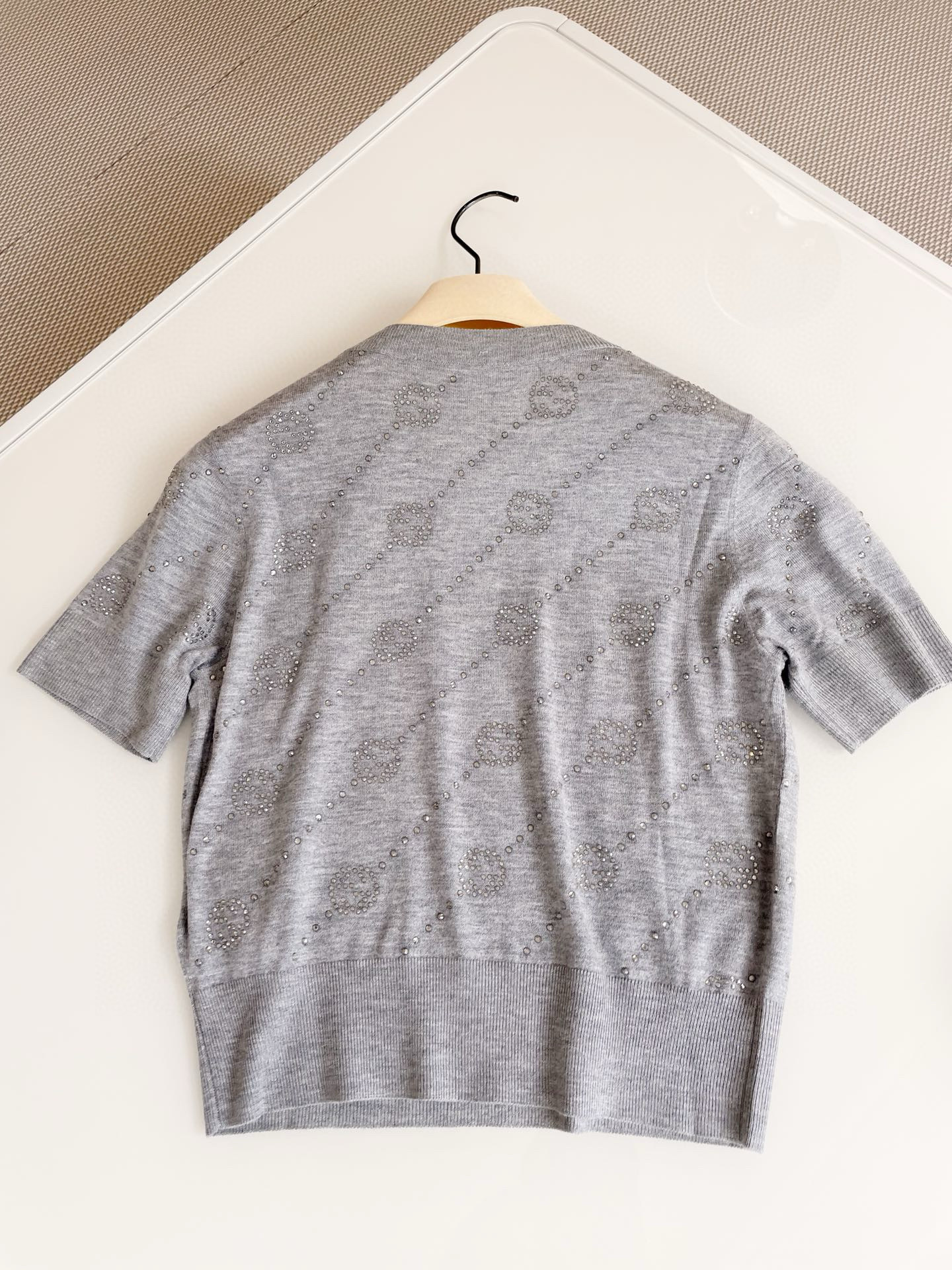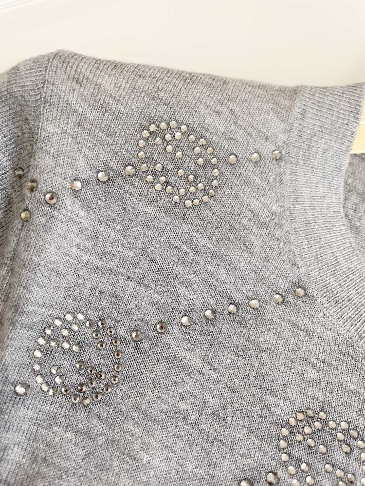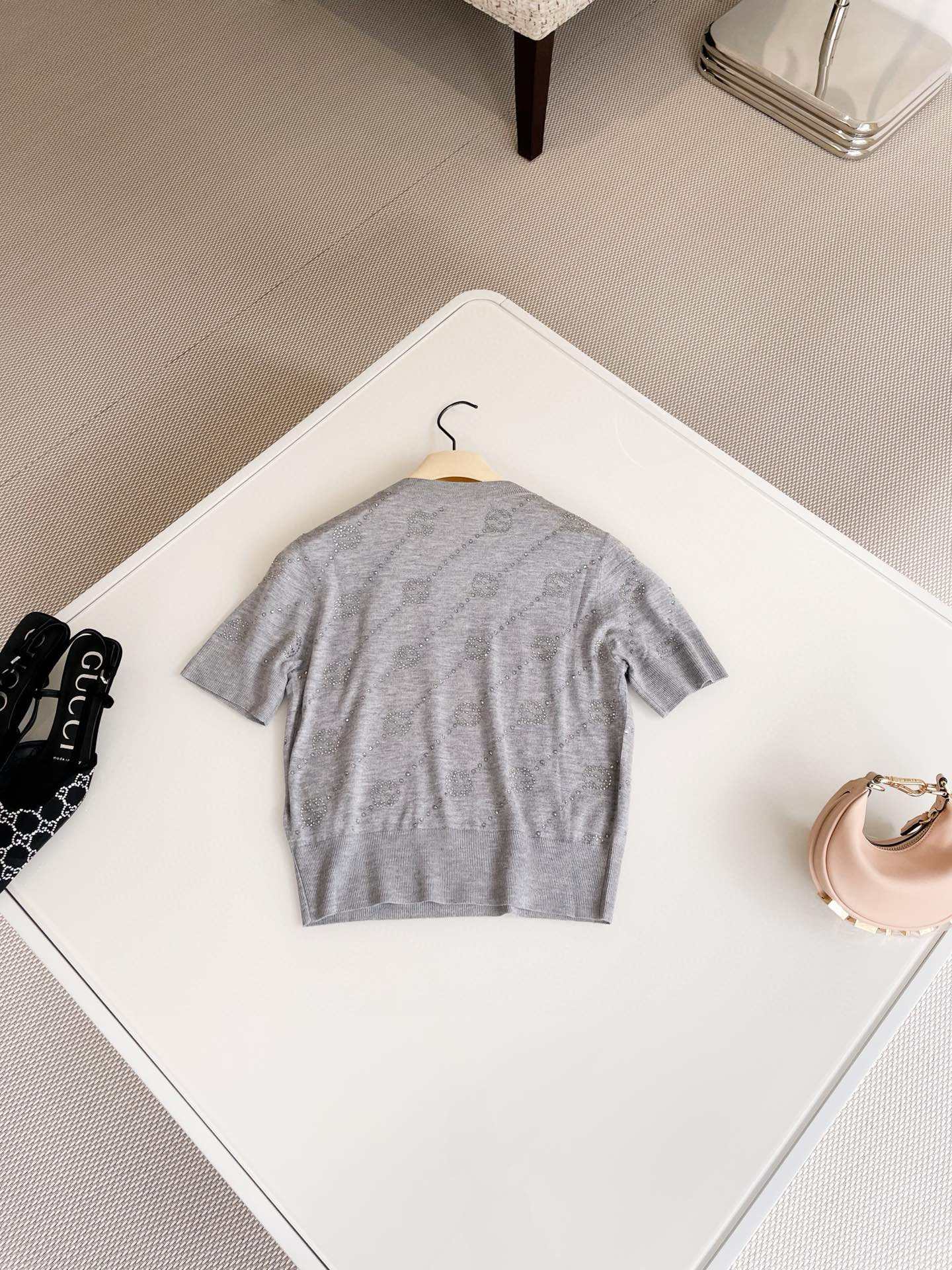 NIGO Gucci Women's Summer Gray Interlocking Double G Rhinestone Knit Pullover Top #nigo98527