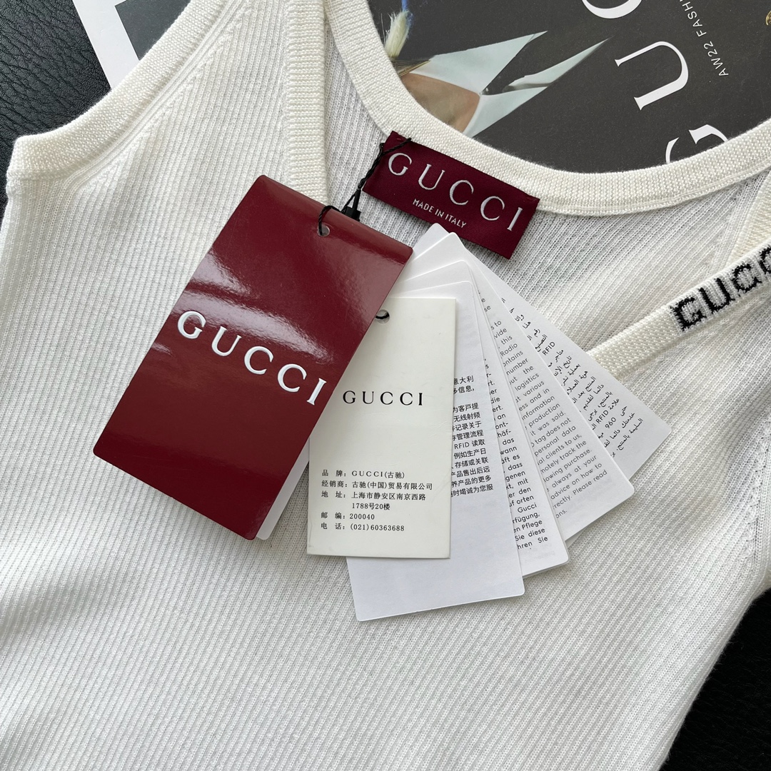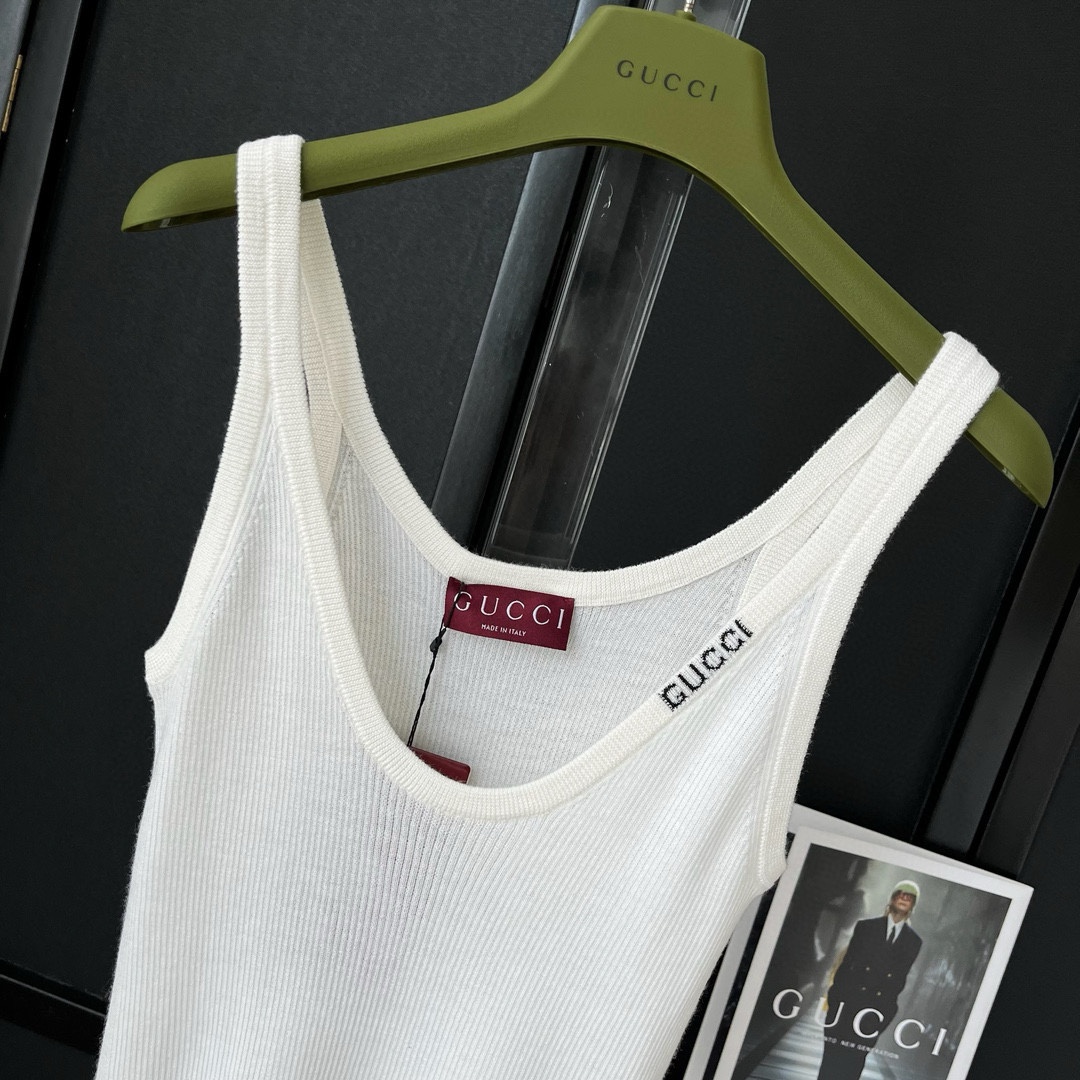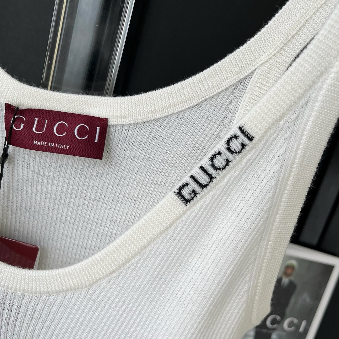 NIGO Gucci Women's Summer Letter White Printed V-Neck Knit Sleeveless Tank Top T-shirt #nigo72442