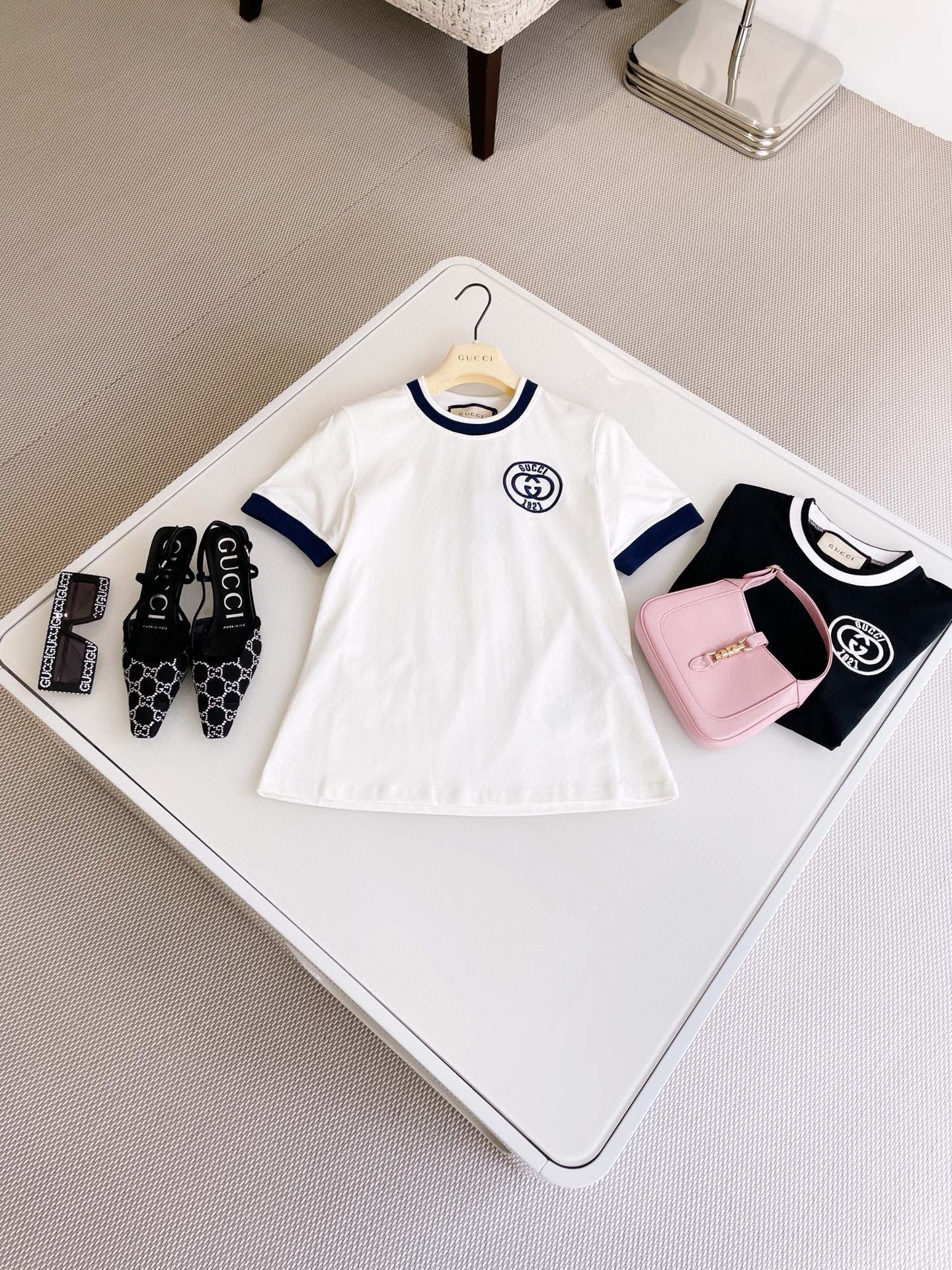NIGO Gucci Women's Summer Logo Double G Embroidery Knit Crew Neck Cotton Short Sleeve T-Shirt #nigo72443