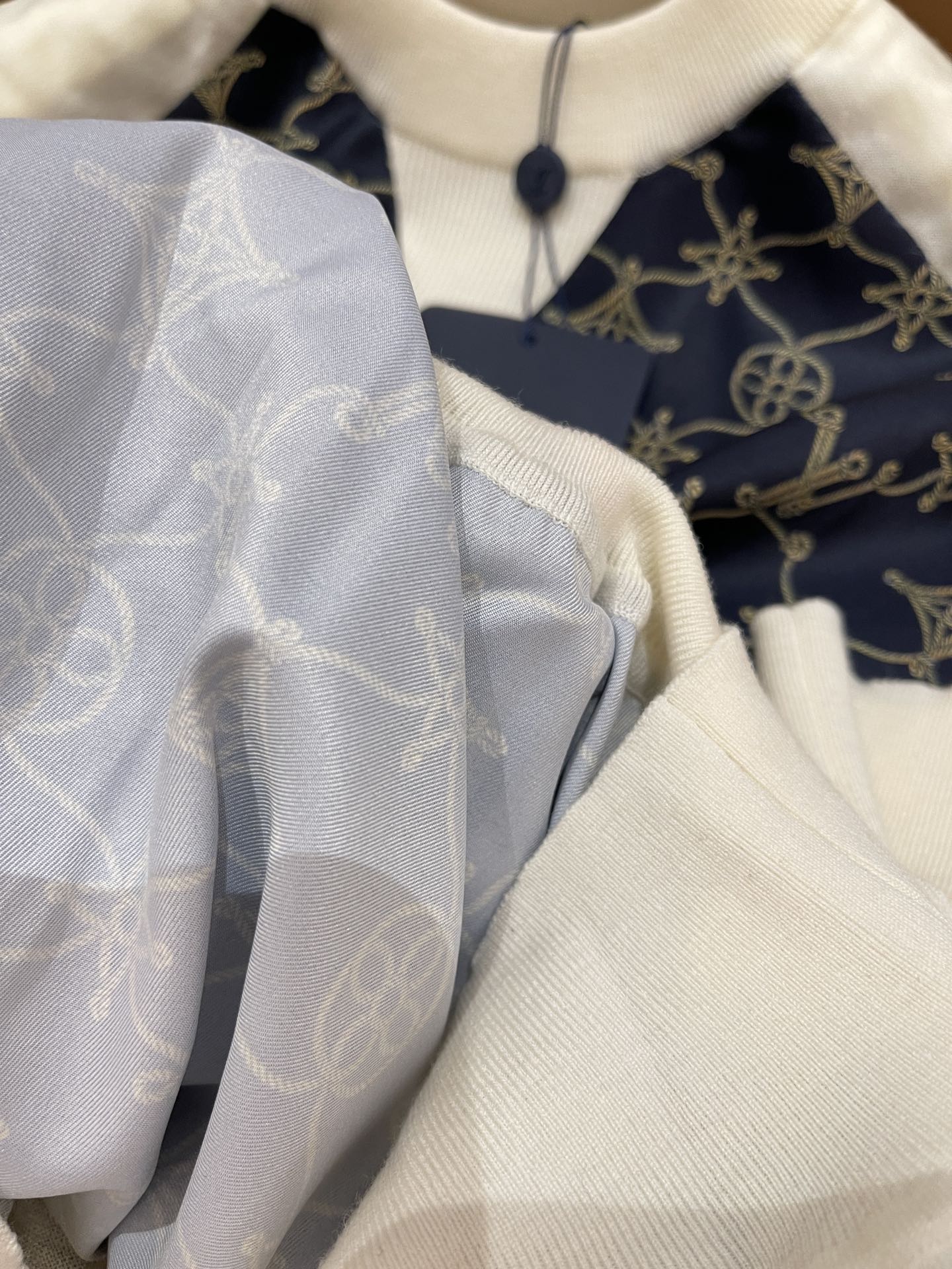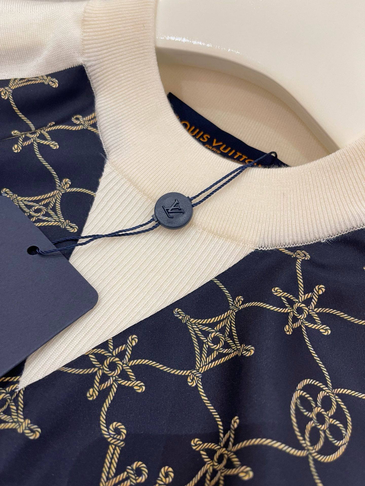 NIGO Louis Vuitton NAUTICAL MONOGRAM Women's Summer Patchwork Logo All-over Print Crew Neck 7/10 Sleeve Knit Sweater #nigo99558