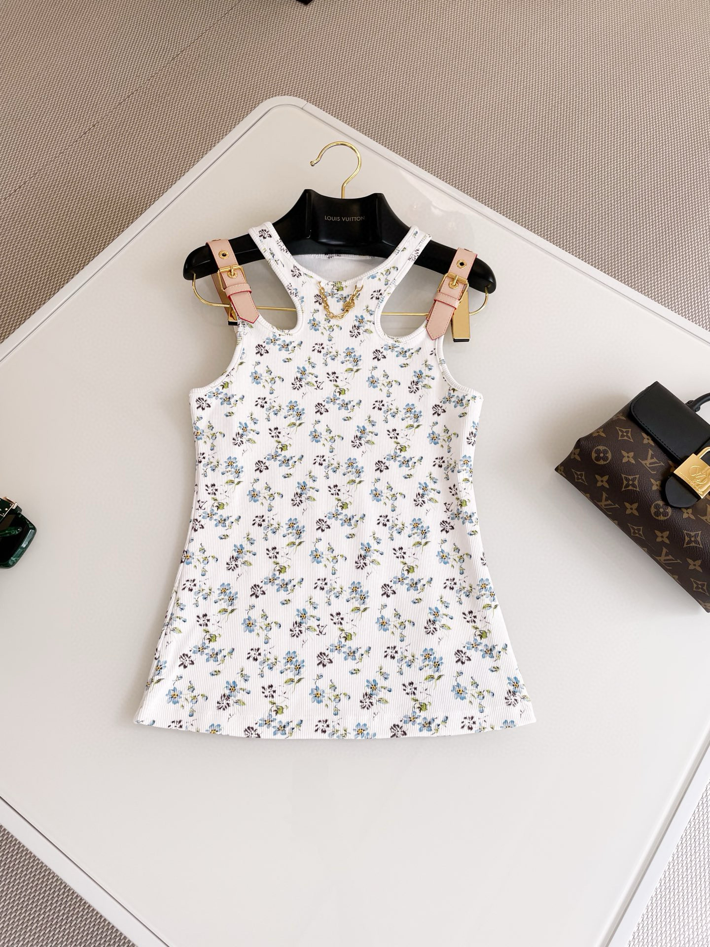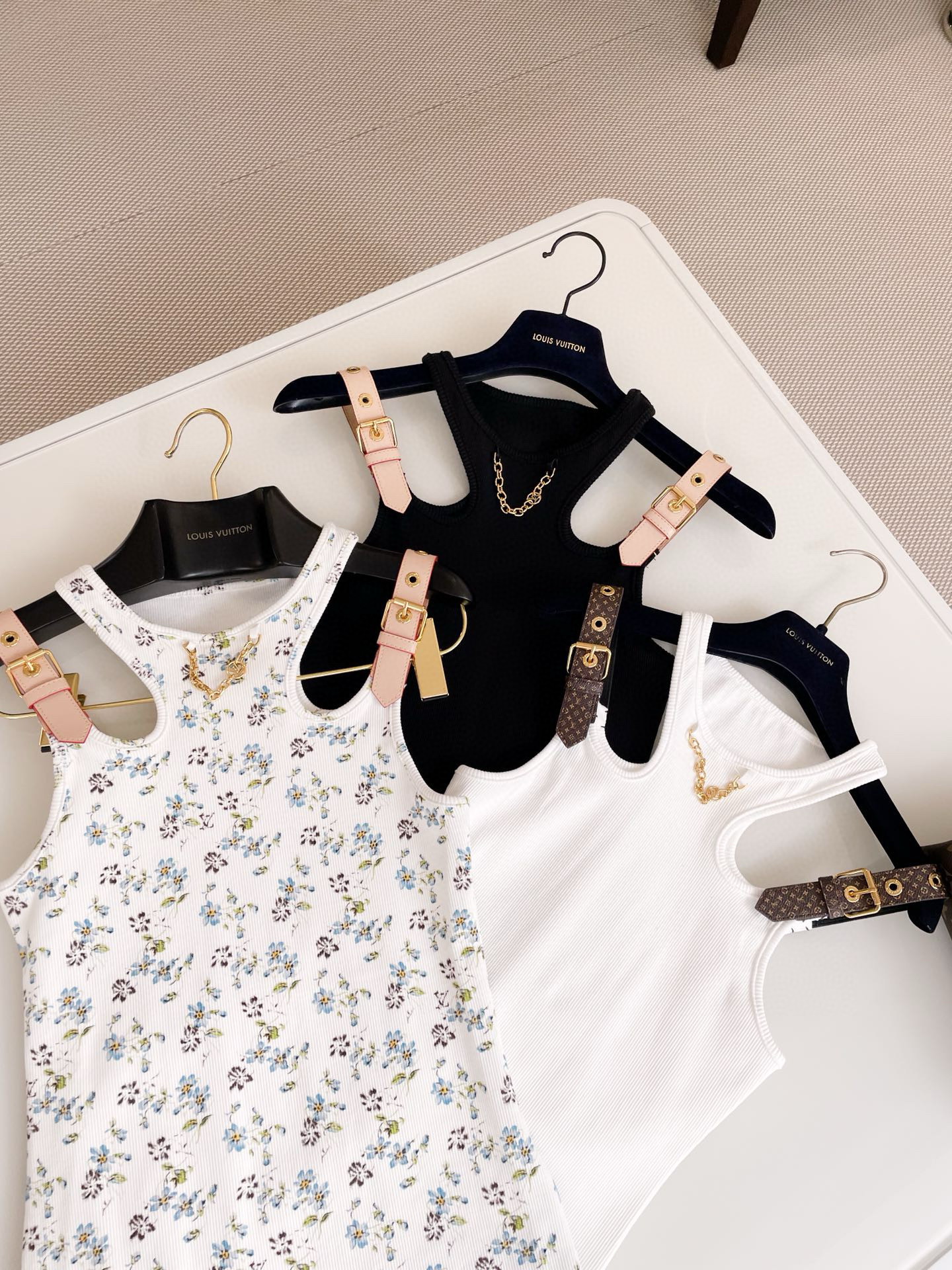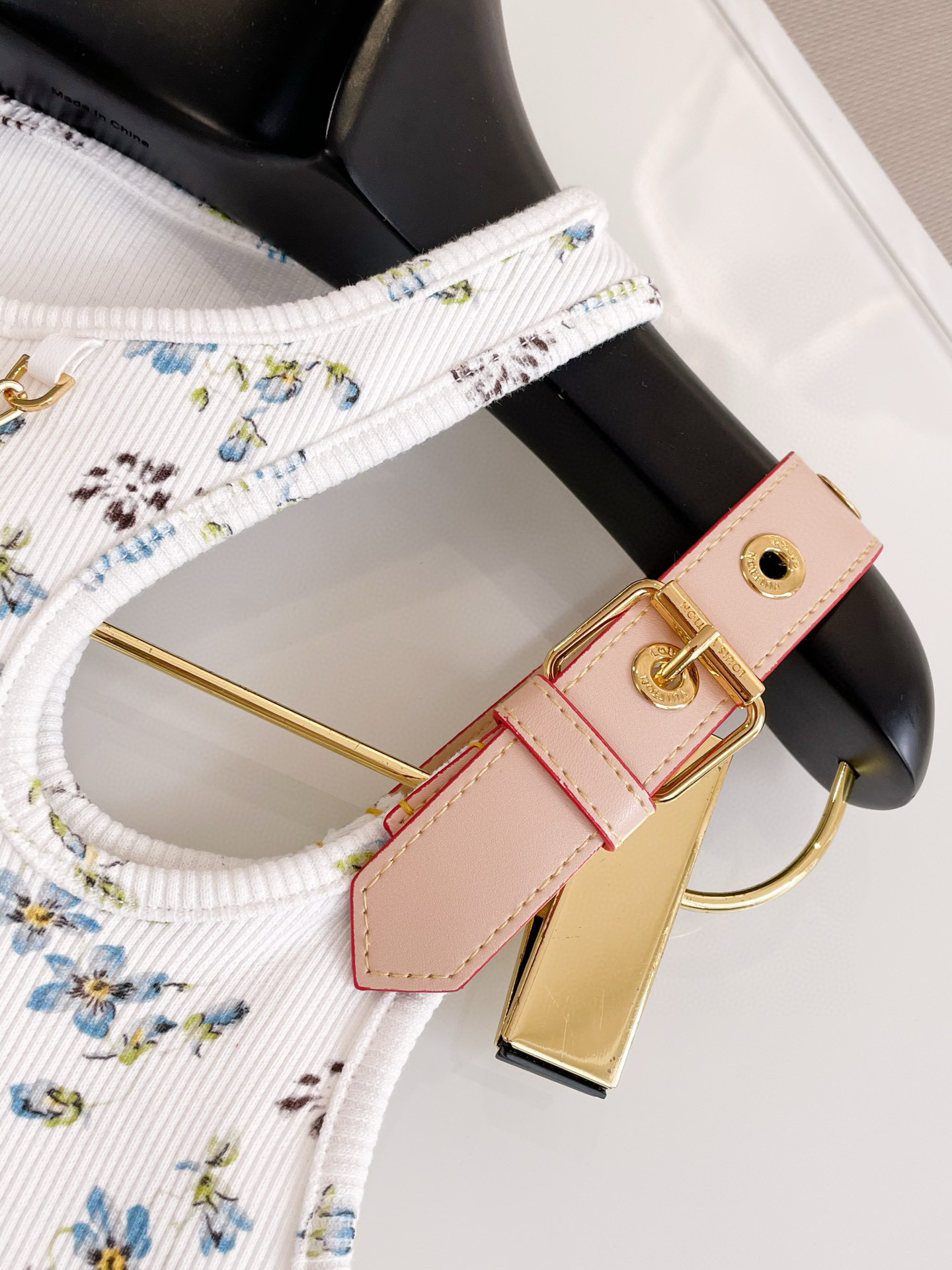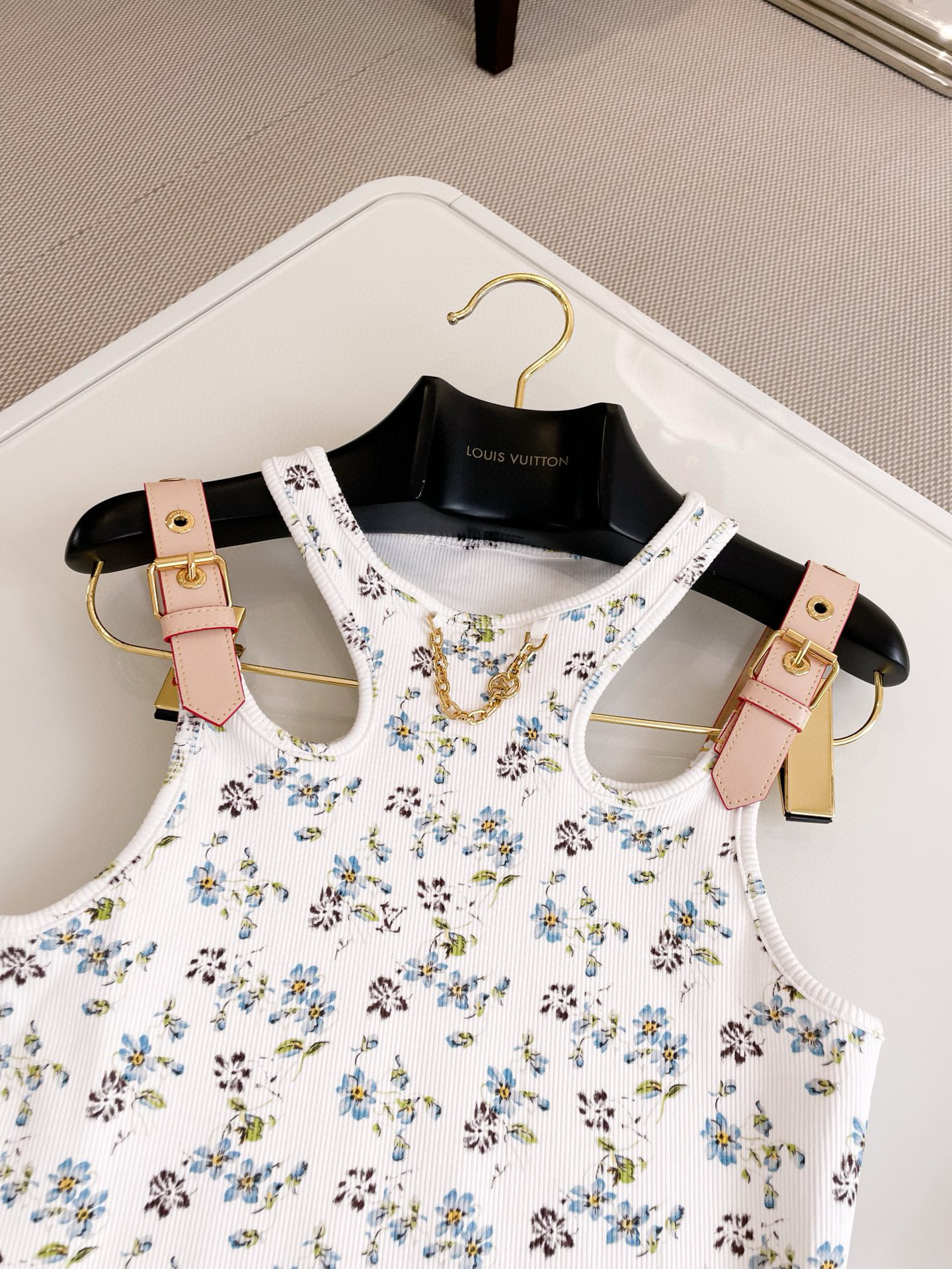 NIGO Louis Vuitton Women's Summer Floral Printed Leather Buckle Suspenders Belt White Tank Top #nigo98959