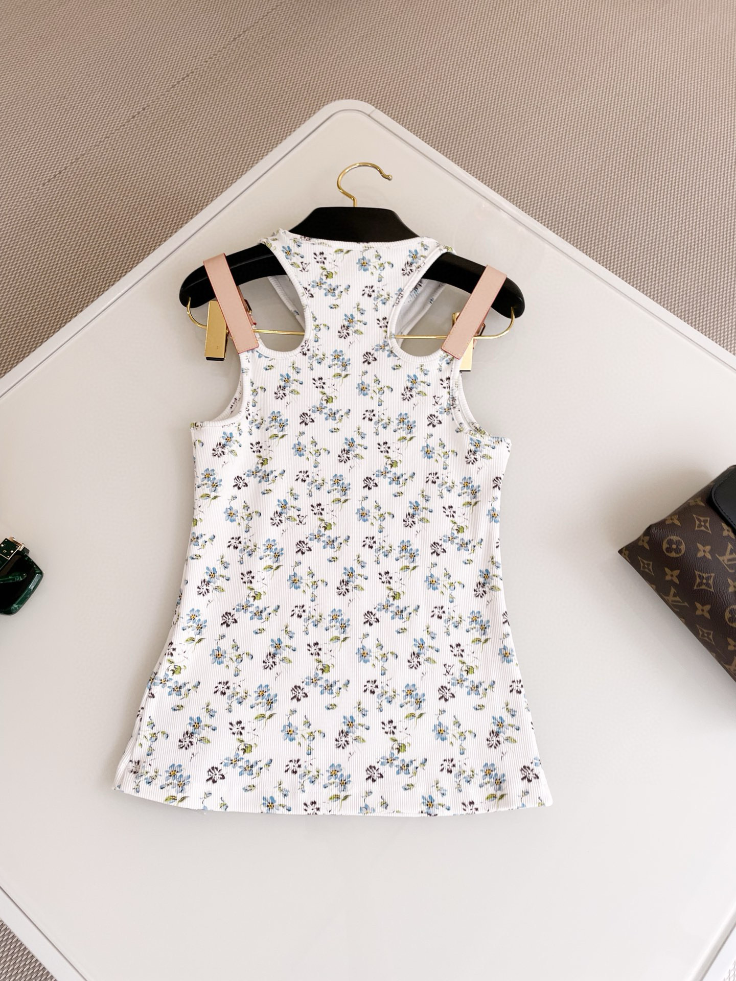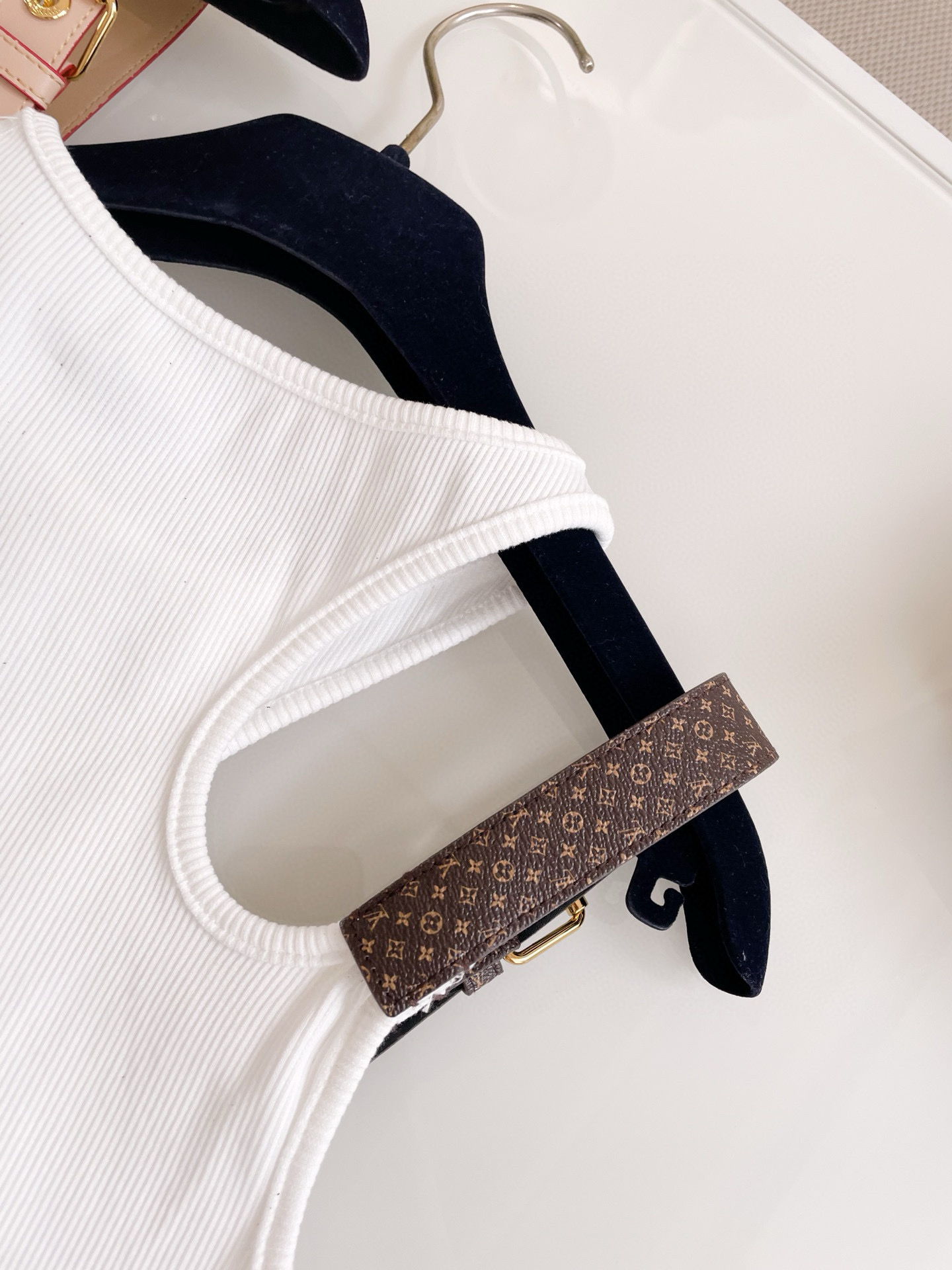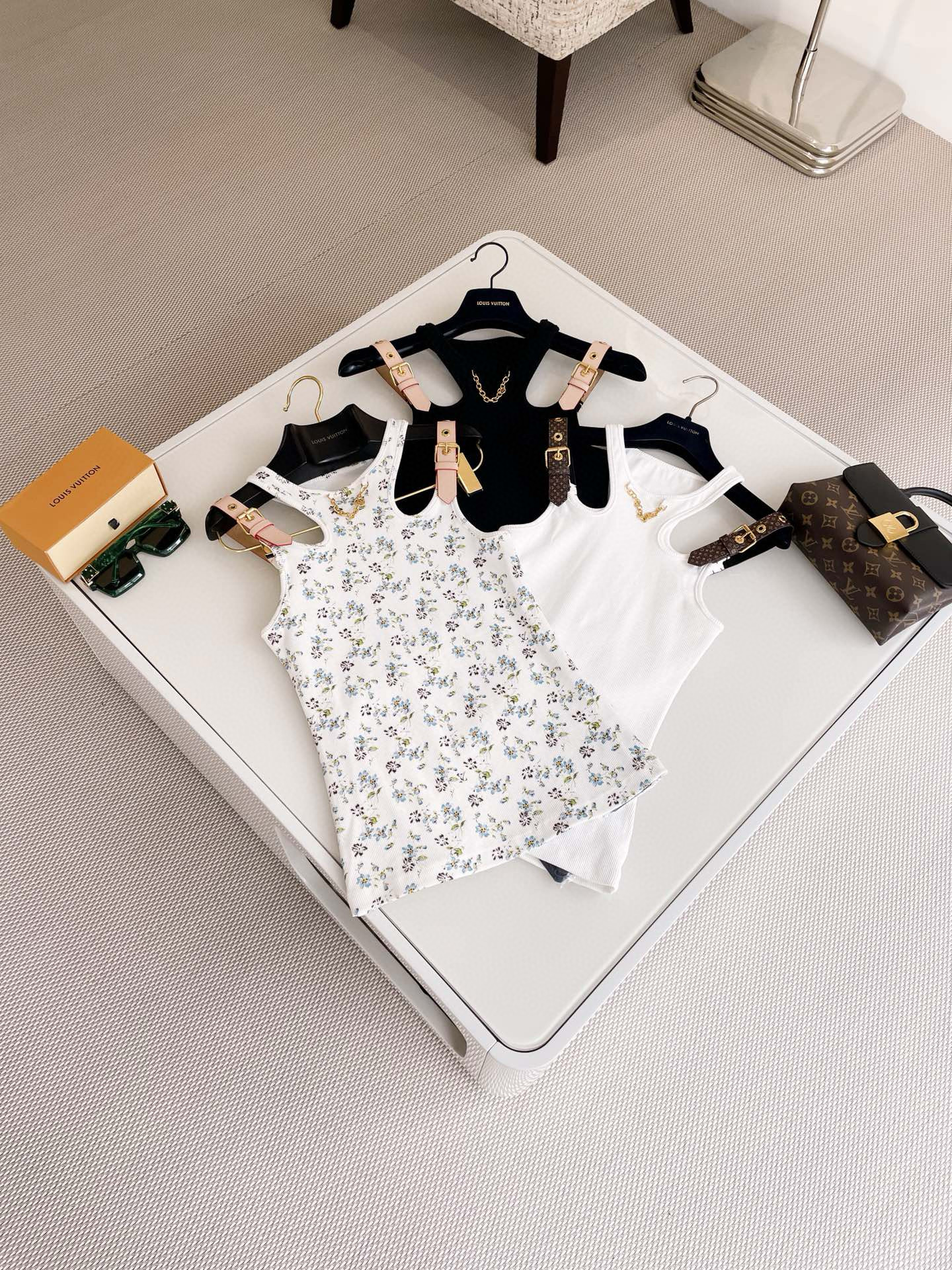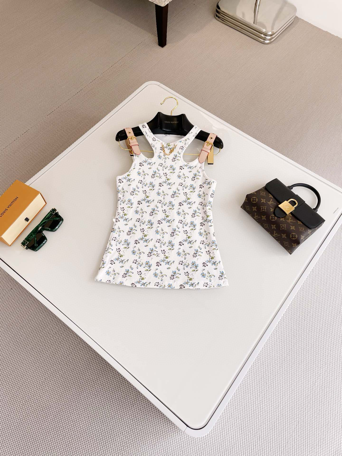 NIGO Louis Vuitton Women's Summer Floral Printed Leather Buckle Suspenders Belt White Tank Top #nigo98959
