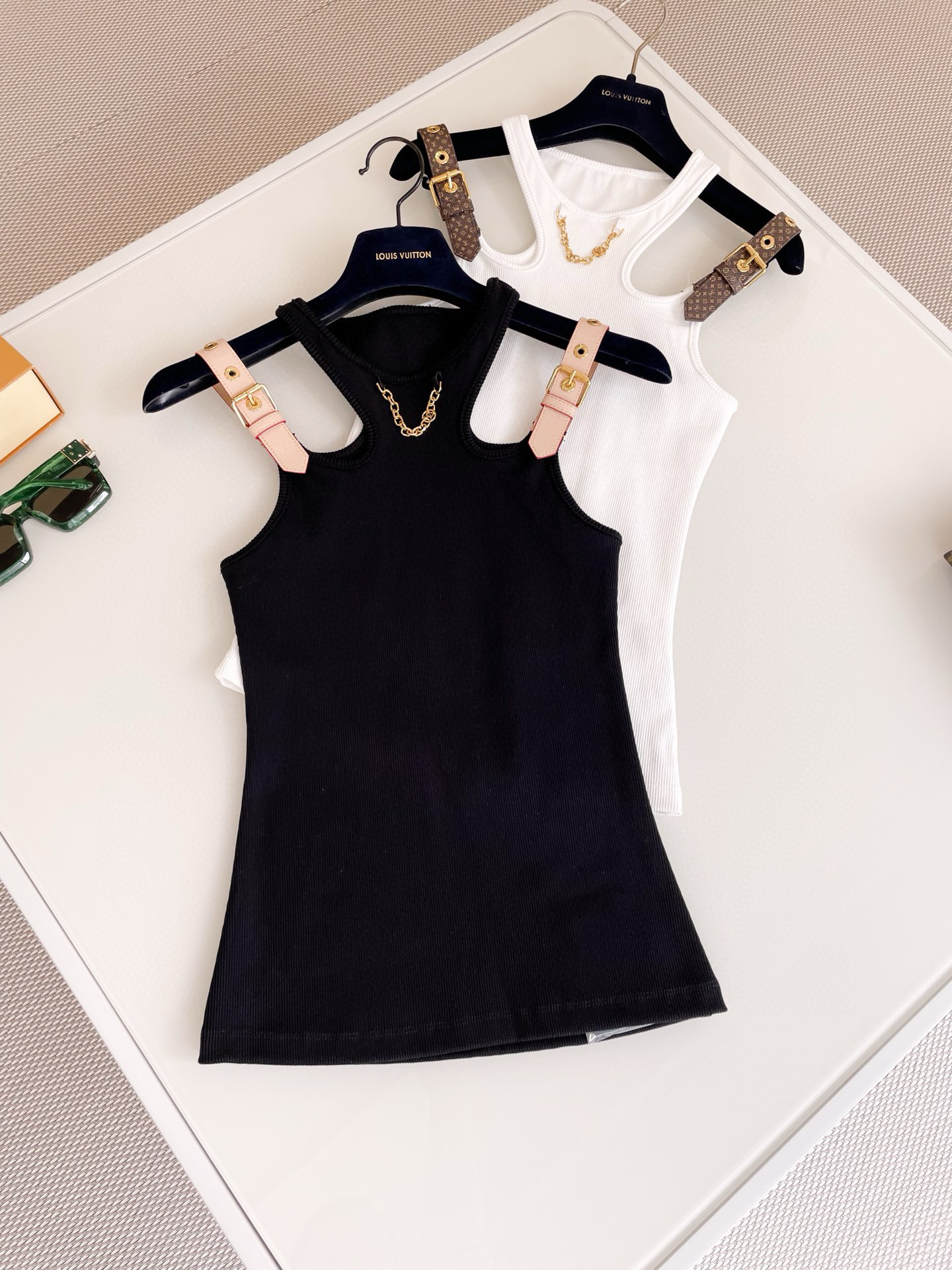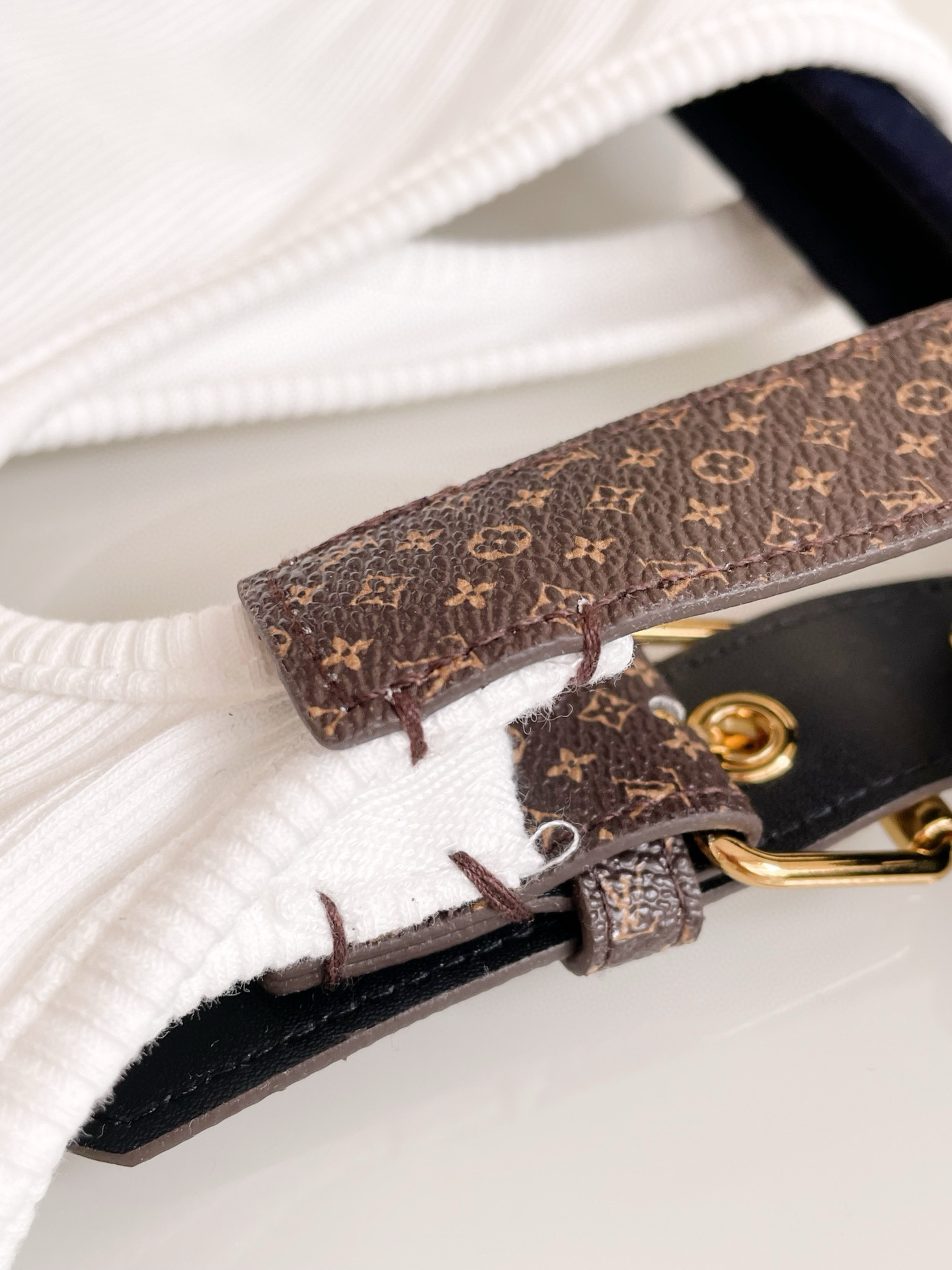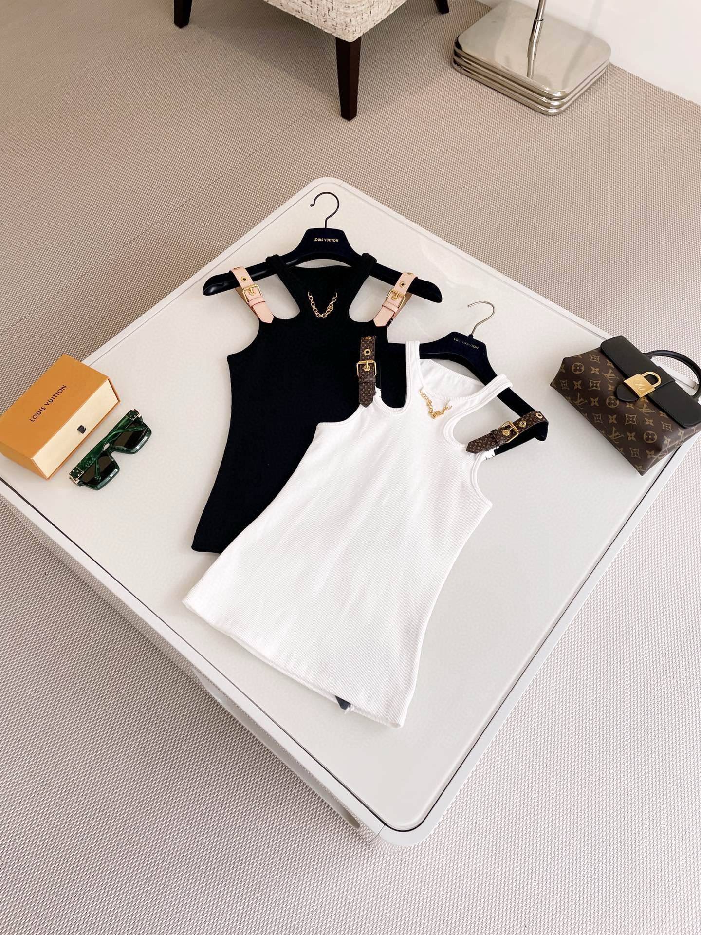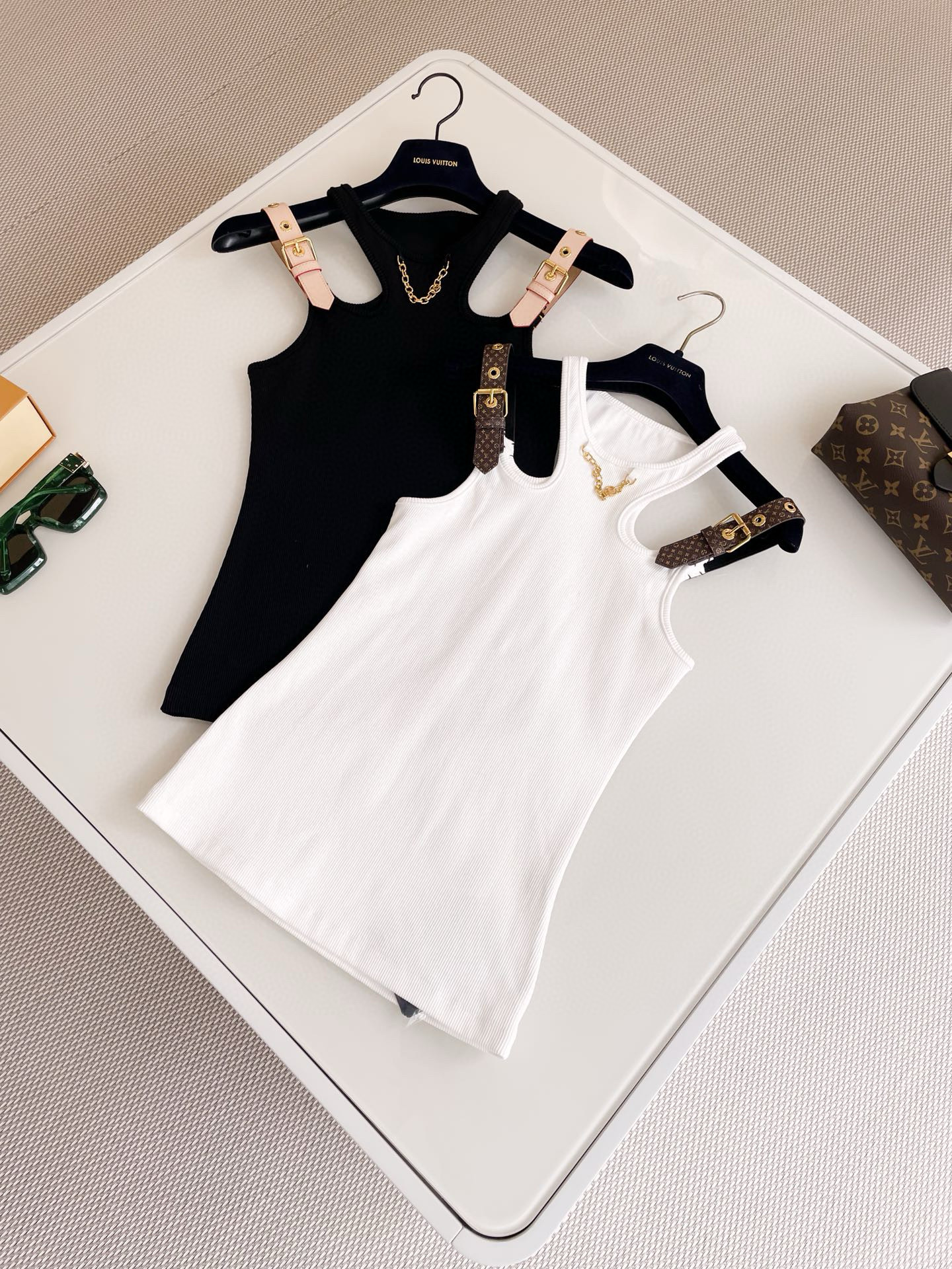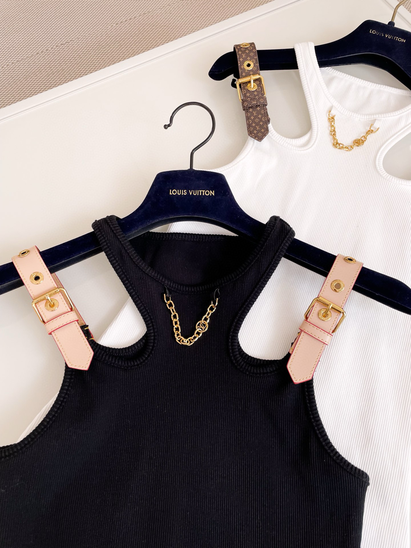 NIGO Louis Vuitton Women's Summer Floral Printed Leather Buckle Suspenders Belt White Tank Top #nigo98959