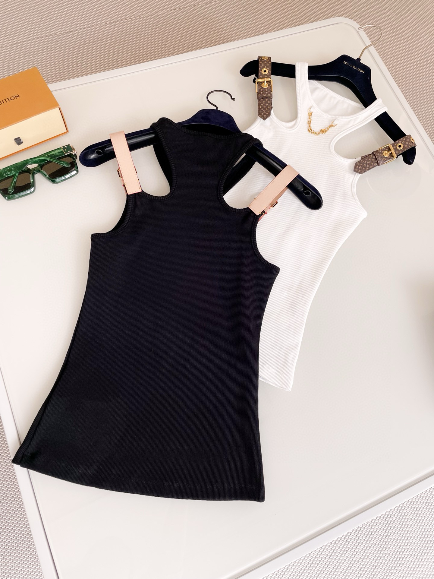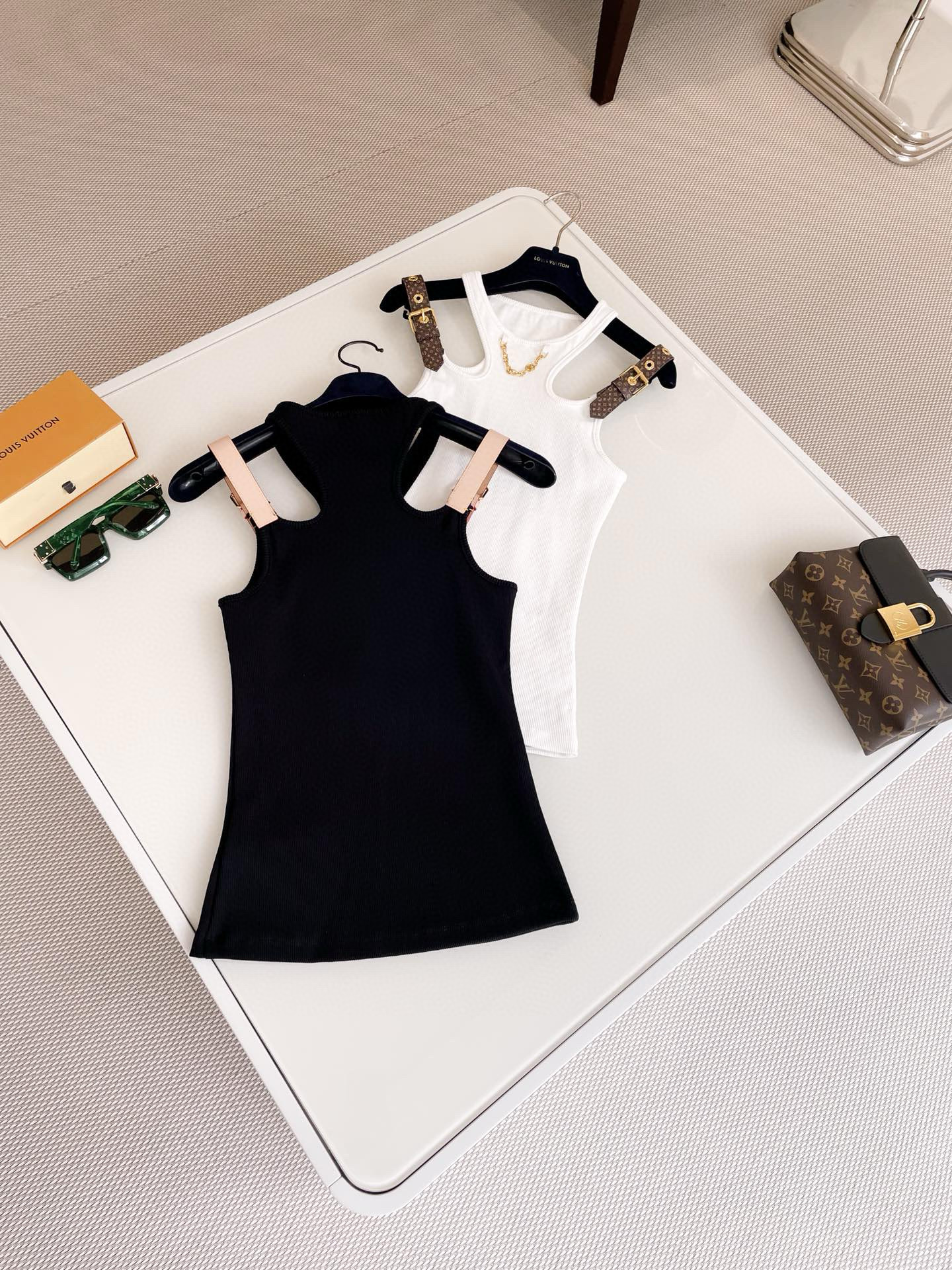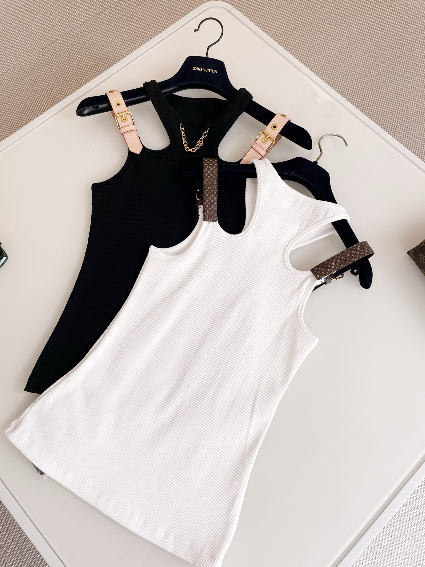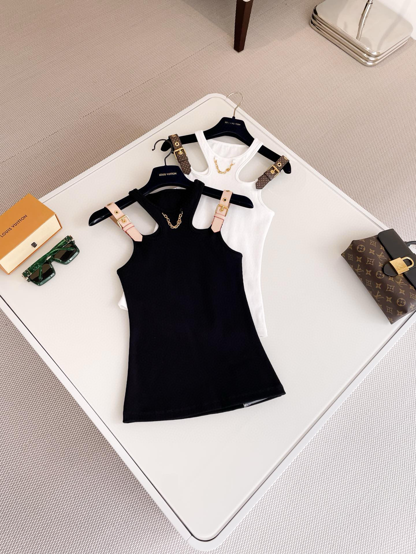 NIGO Louis Vuitton Women's Summer Floral Printed Leather Buckle Suspenders Belt White Tank Top #nigo98959