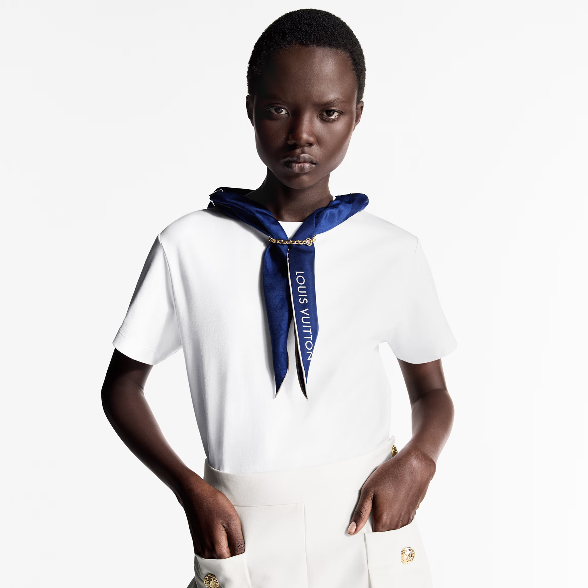 NIGO Louis Vuitton Women's Summer Solid Colour Scarf Letter Short Sleeve Round Neck Cotton T-Shirt #nigo76859