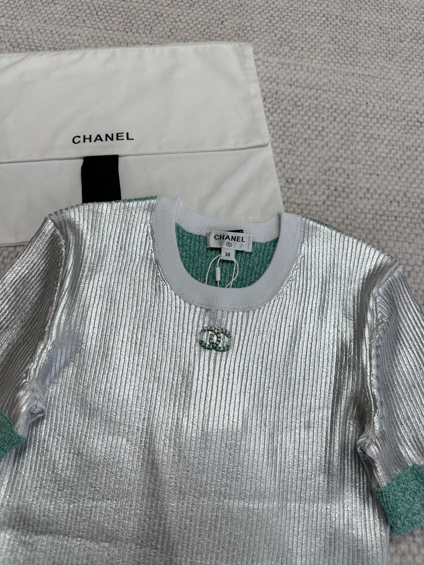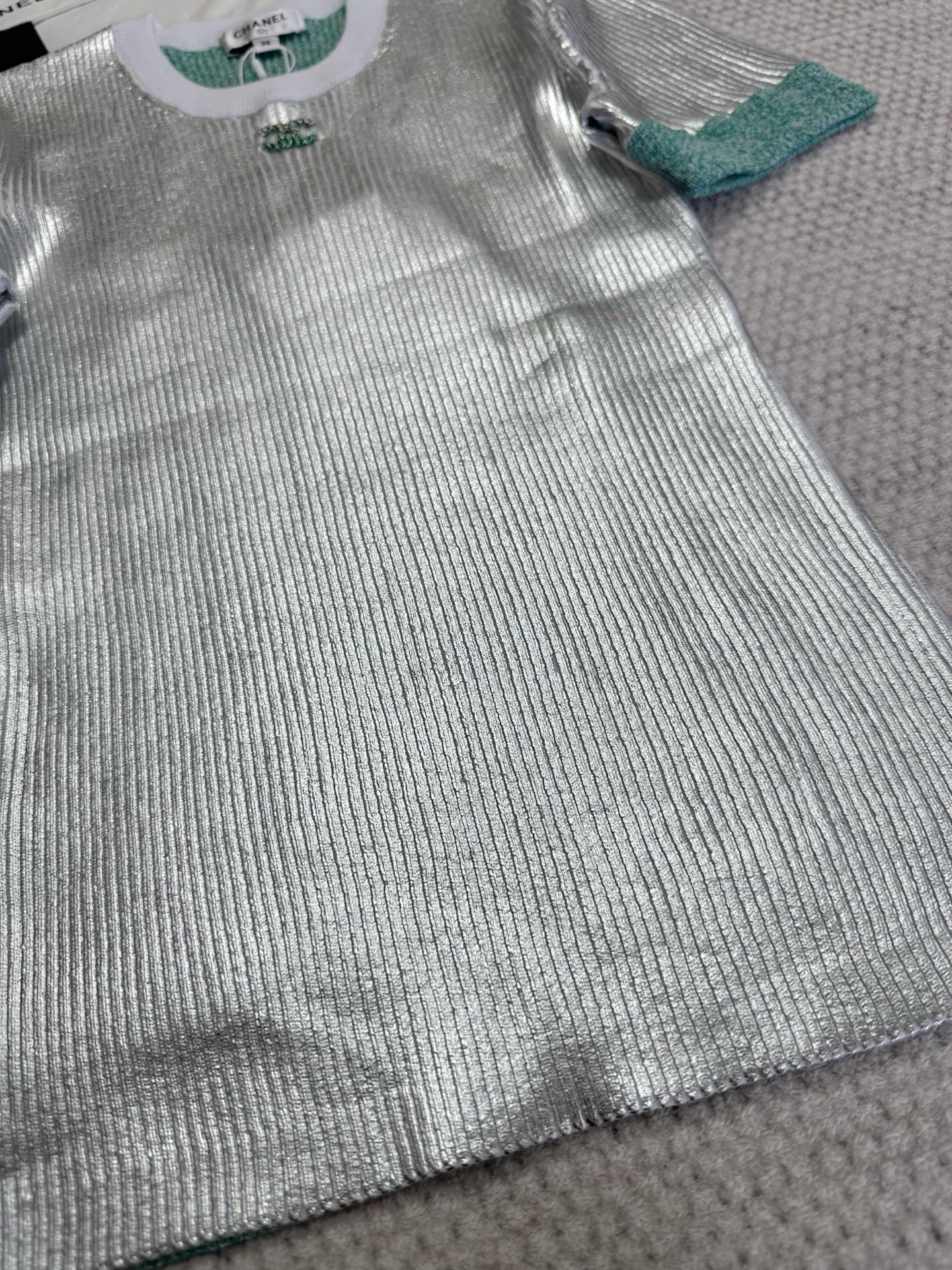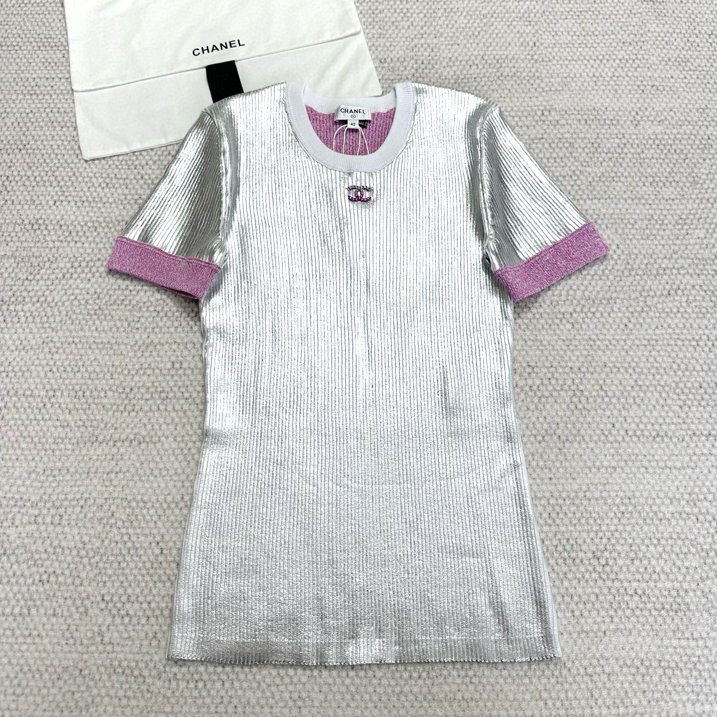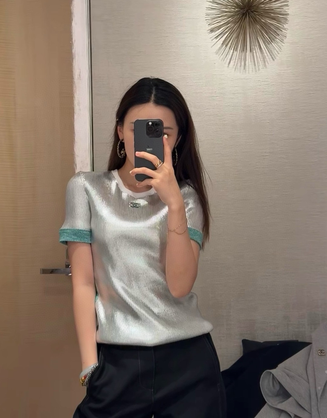 NIGO Chanel Women's Summer Round Neck Colour Block Silver Short Sleeve T-Shirt #nigo76694