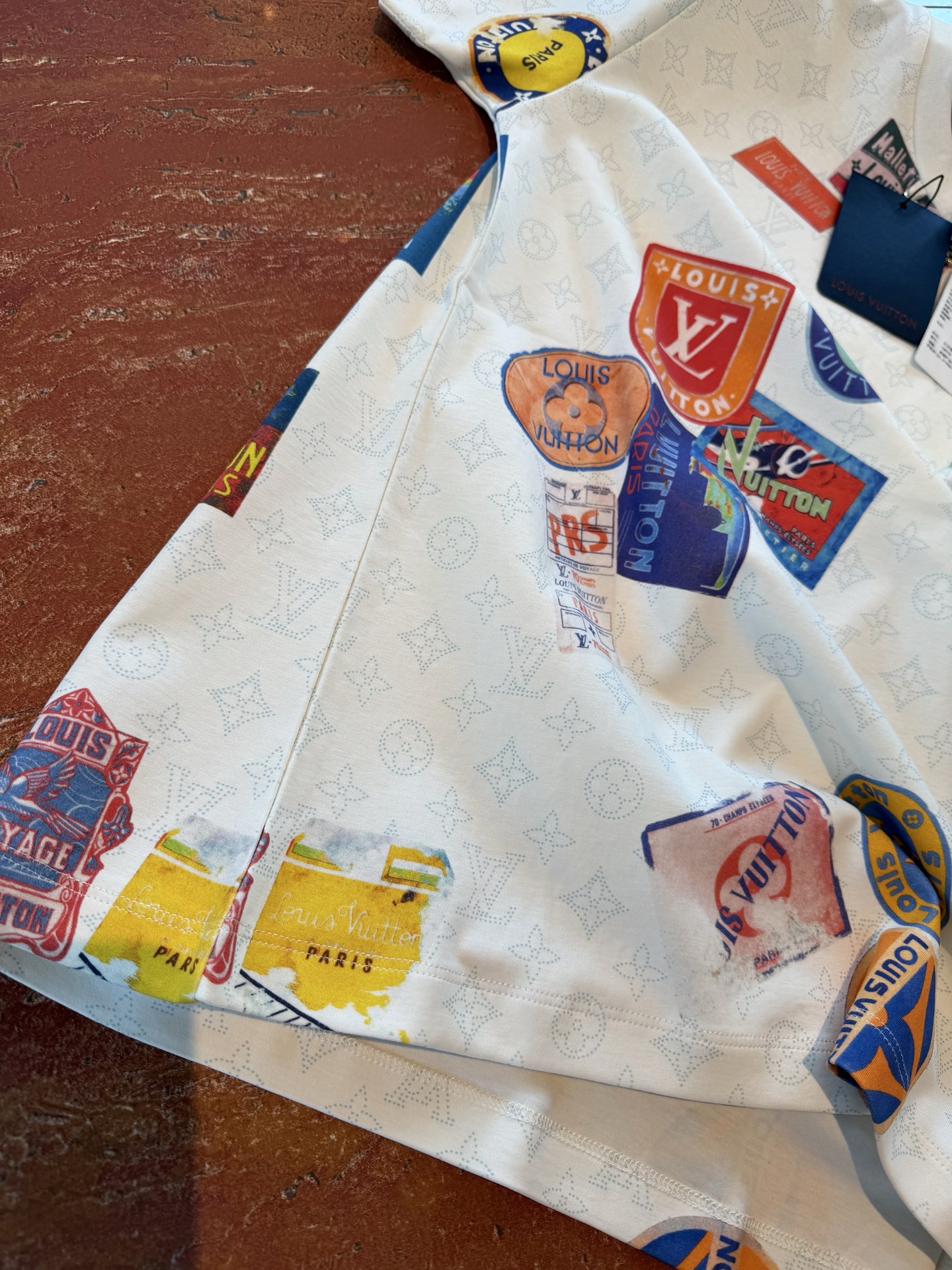 NIGO Louis Vuitton Women's Summer Flight Stamp Print Crew Neck Cotton Short Sleeve T-Shirt #nigo76695