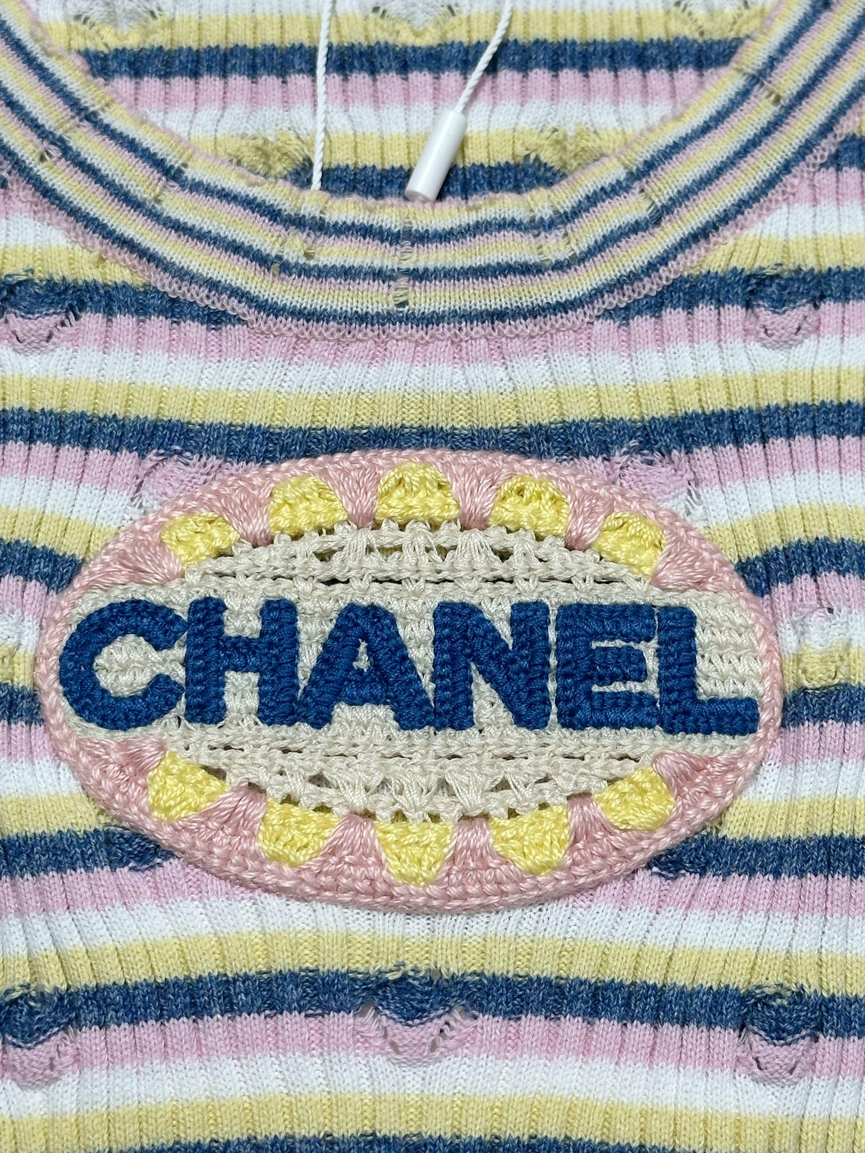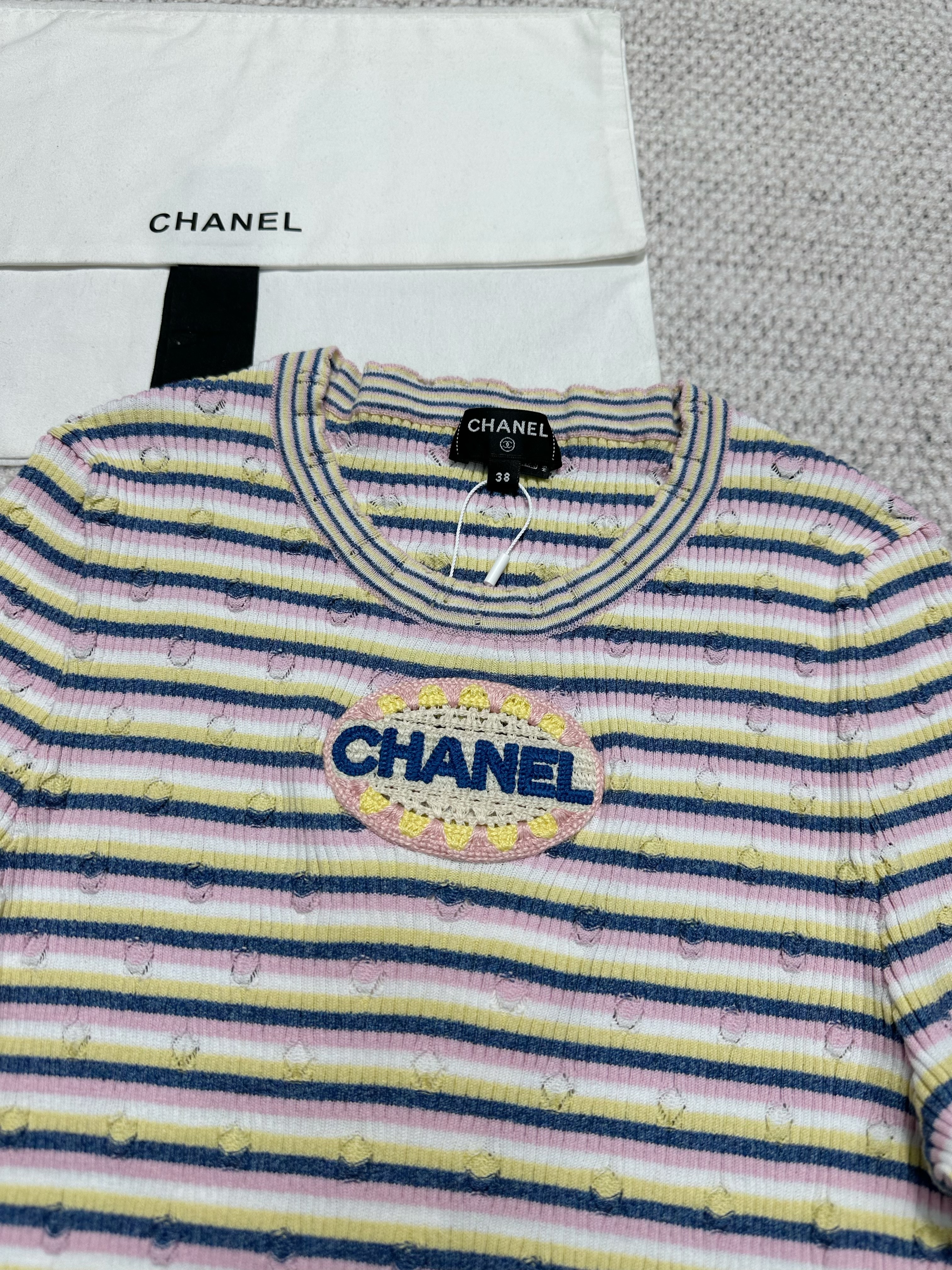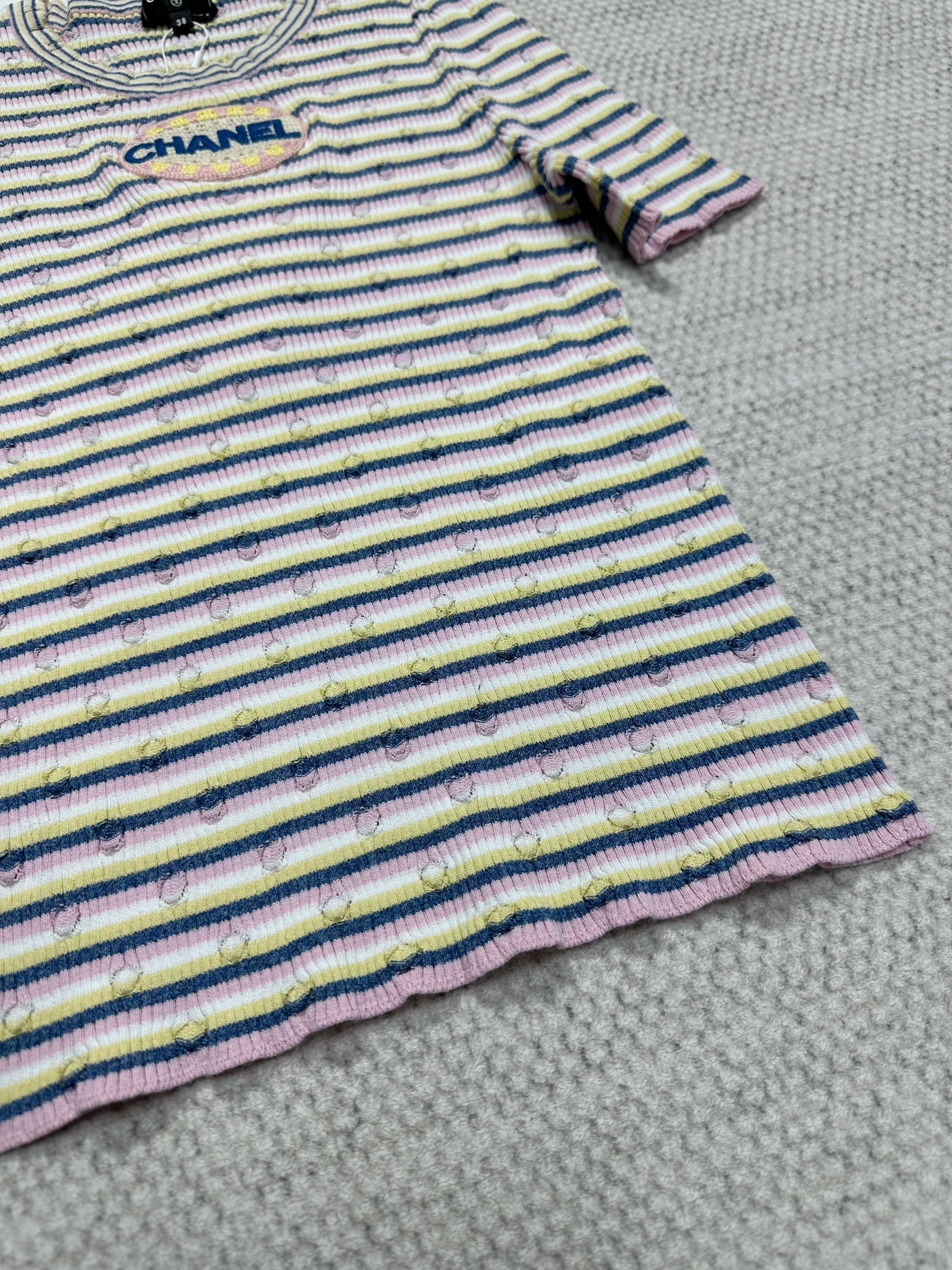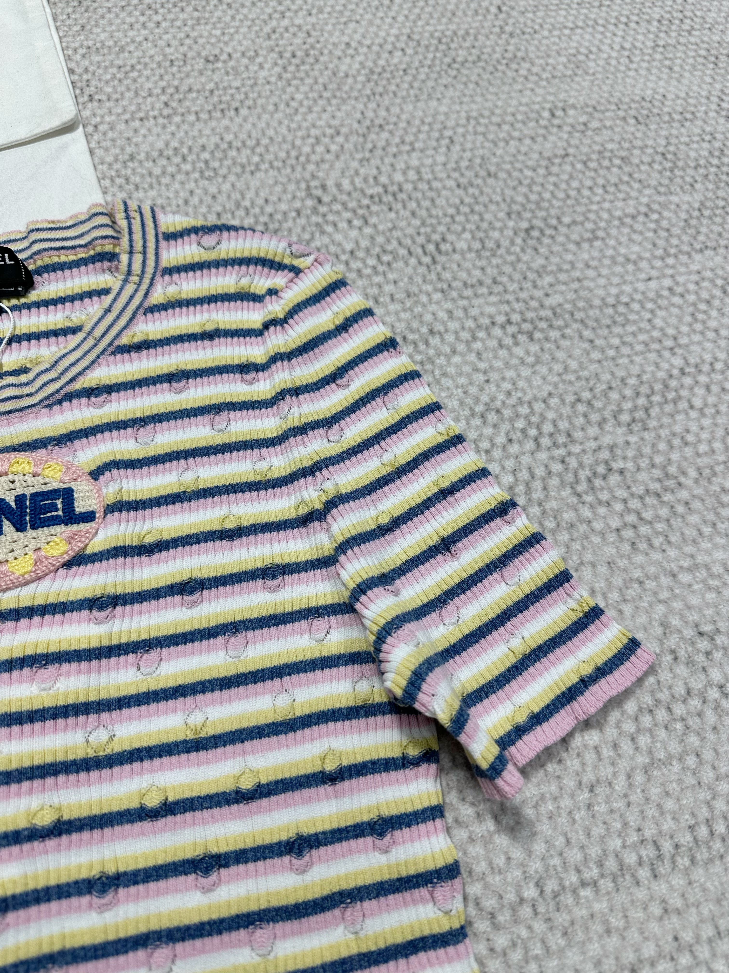 NIGO Chanel Women's Spring/Summer Letter Printed Striped Round Neck Short Sleeve Knit Sweater T-Shirt #nigo75782