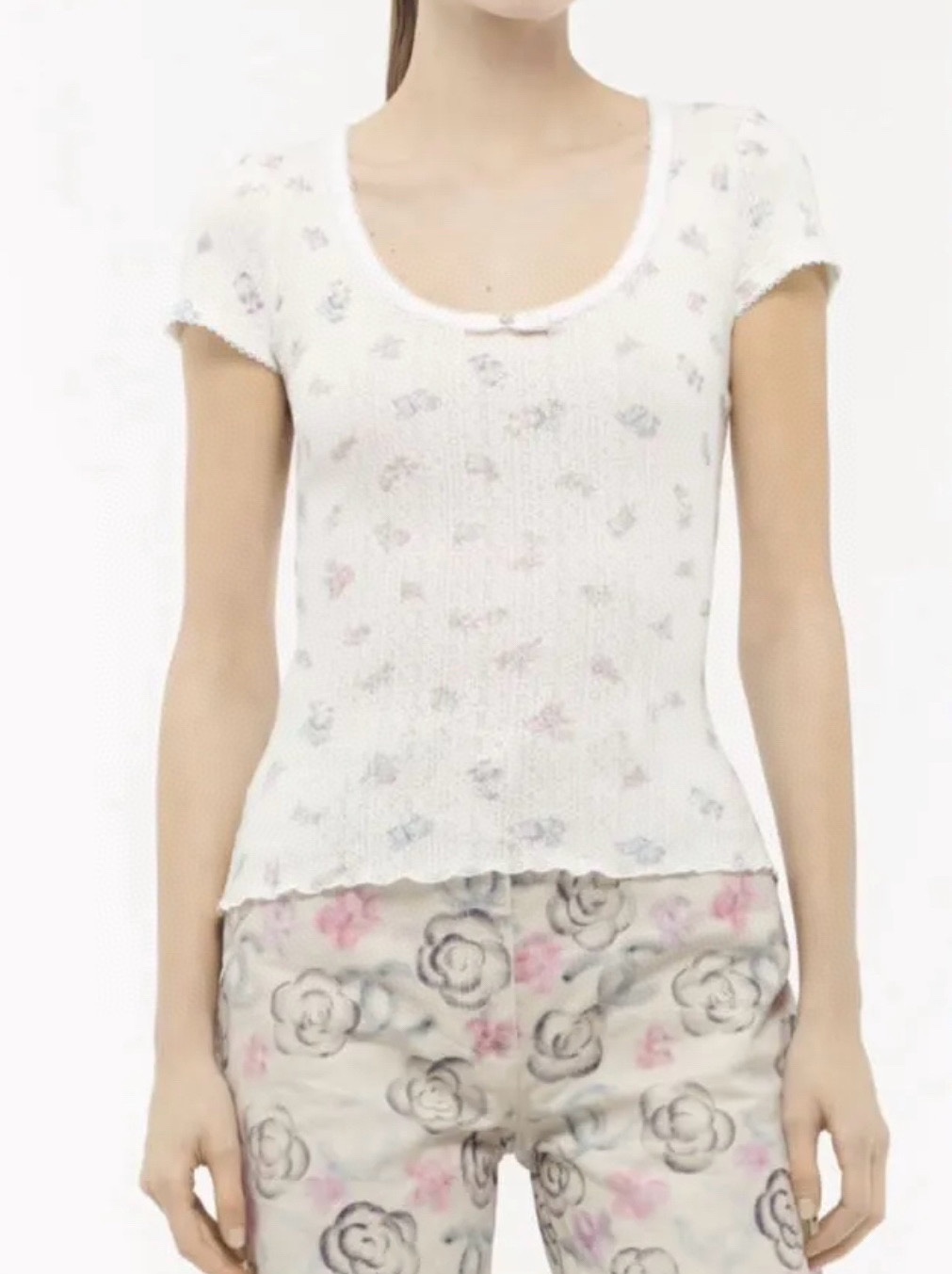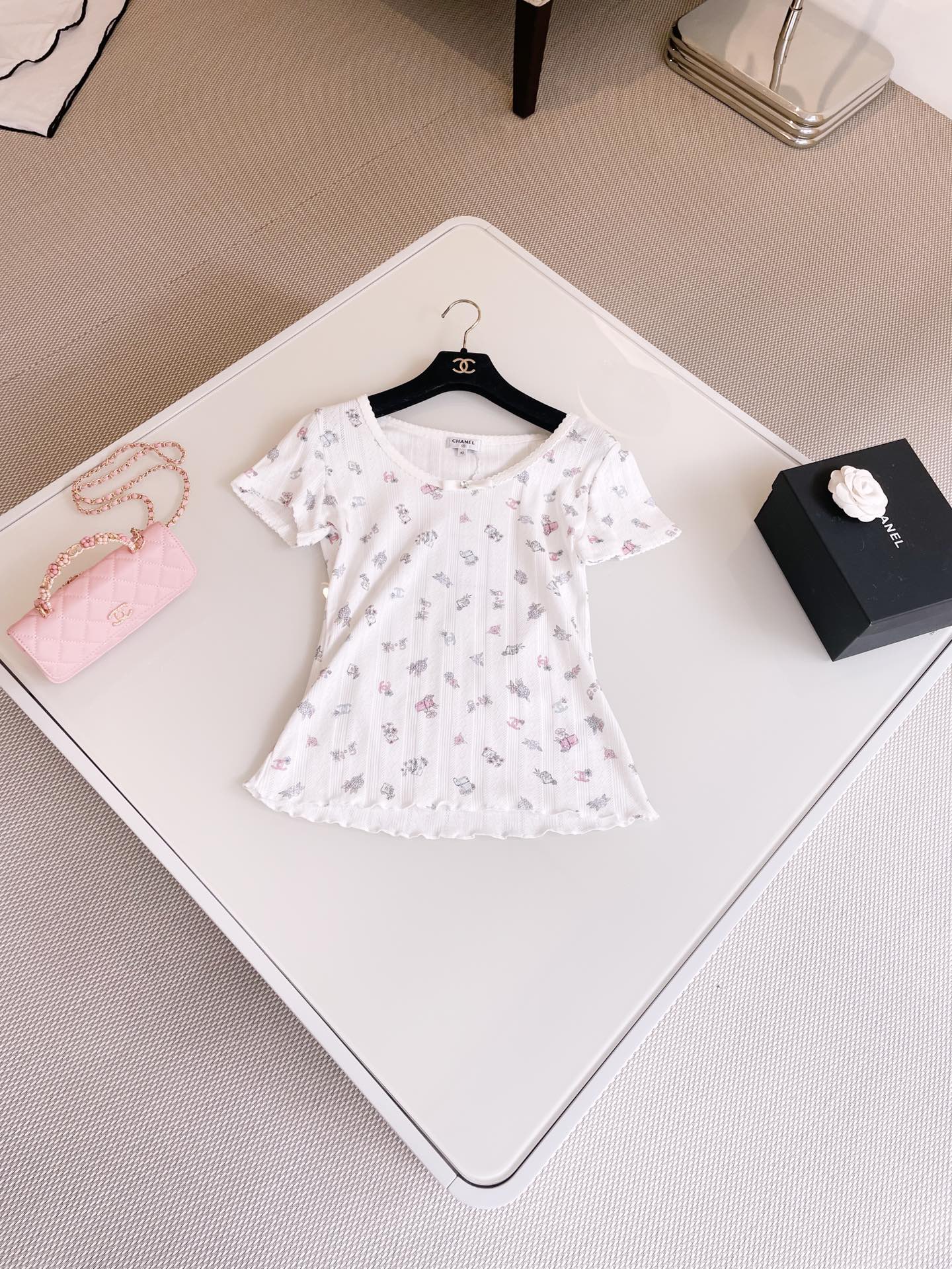 NIGO Chanel Women's Summer White Bow Rhinestone Hollow Lace Knit Short Sleeve Top T-Shirt #nigo74474