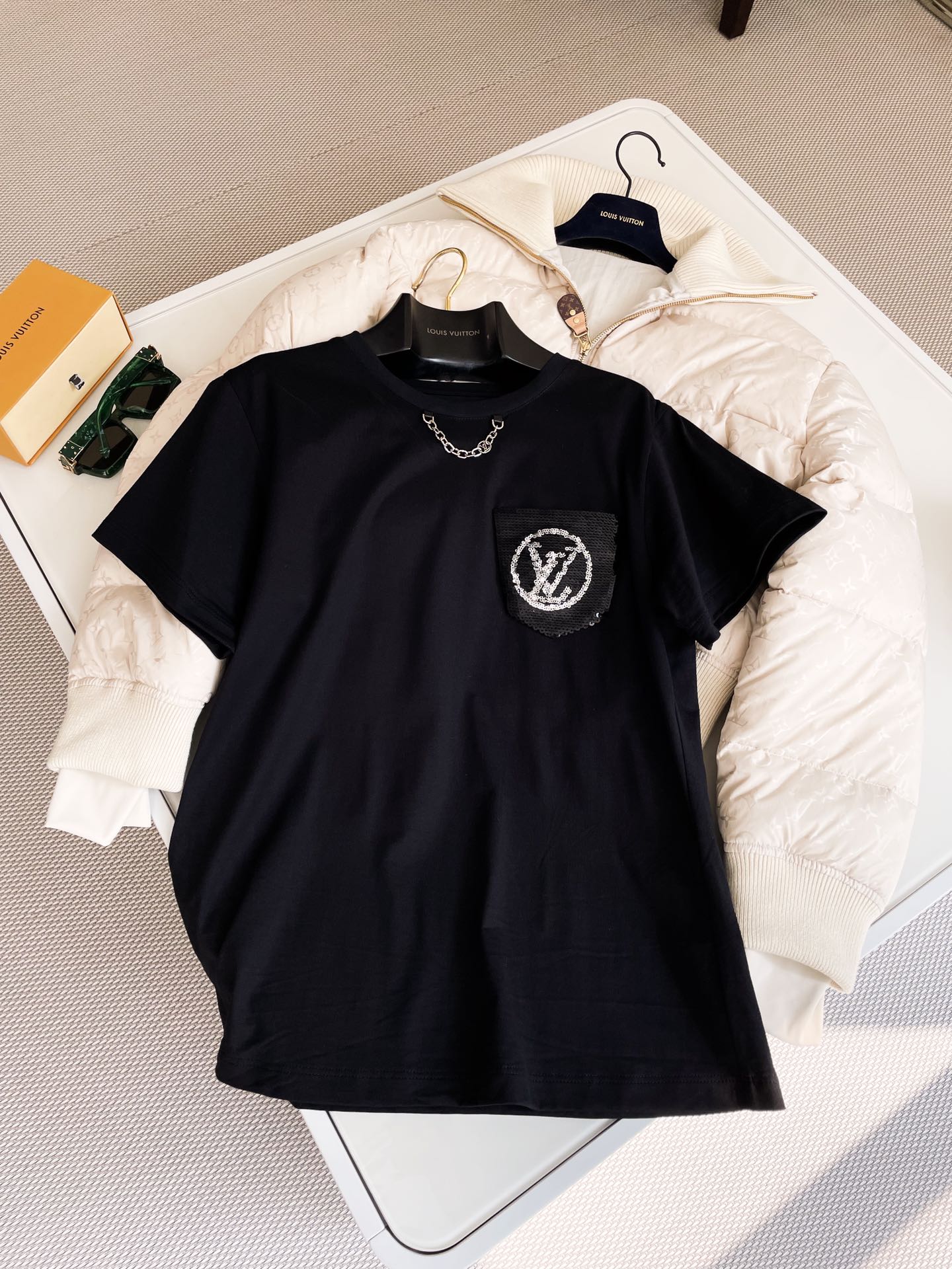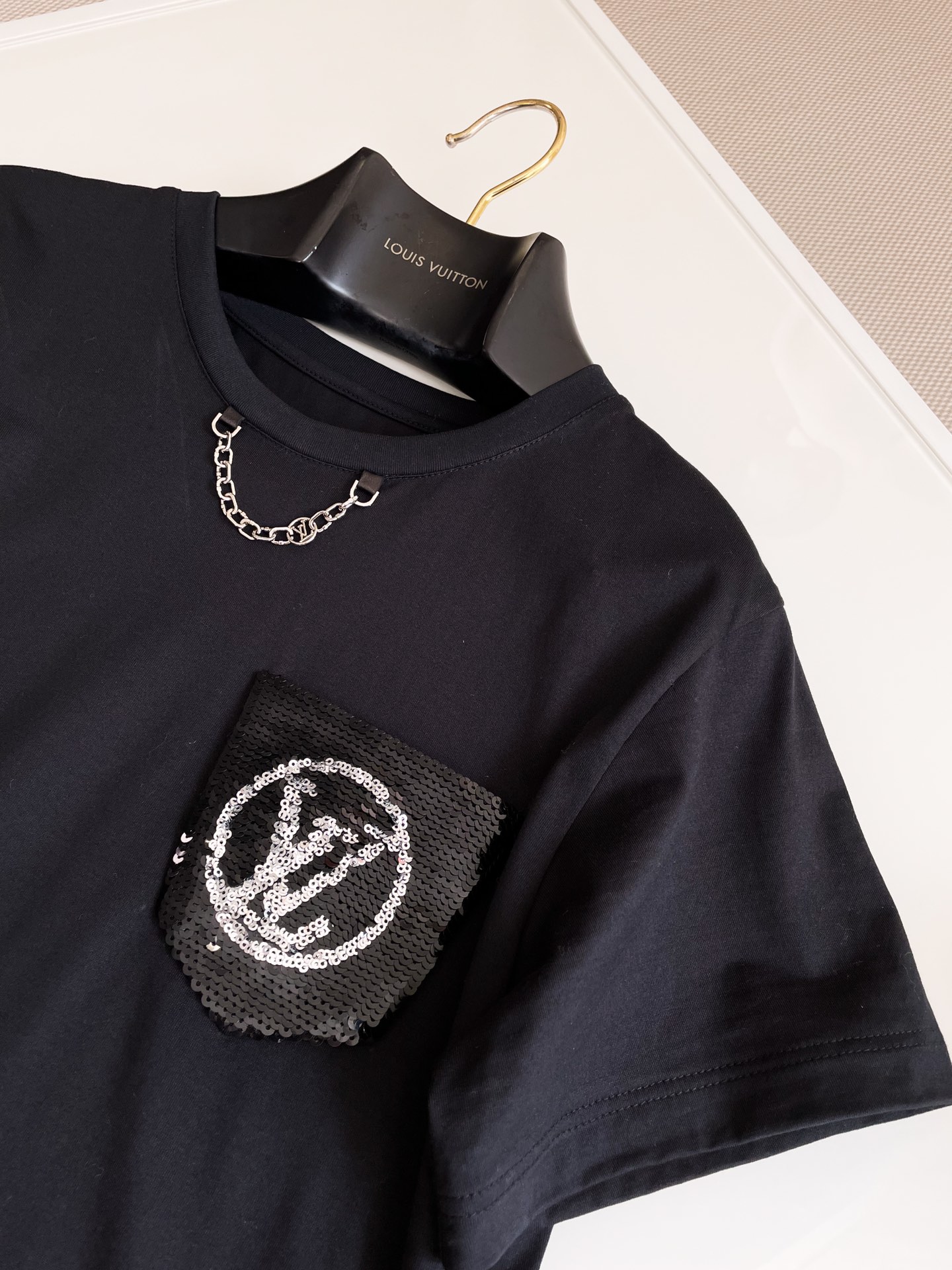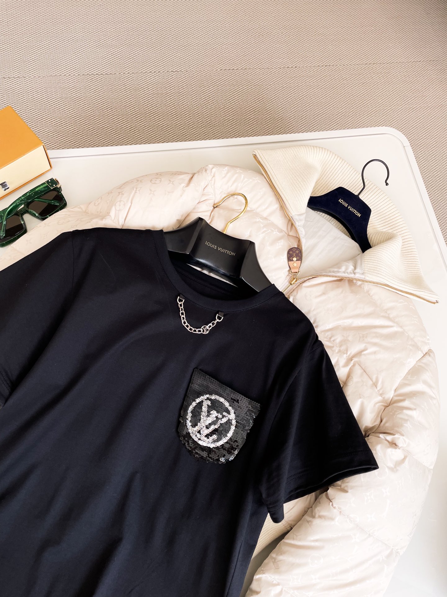 NIGO Louis Vuitton Women's Summer Solid Color Sequin Print Round Neck Cotton Short Sleeve T-Shirt #nigo73936