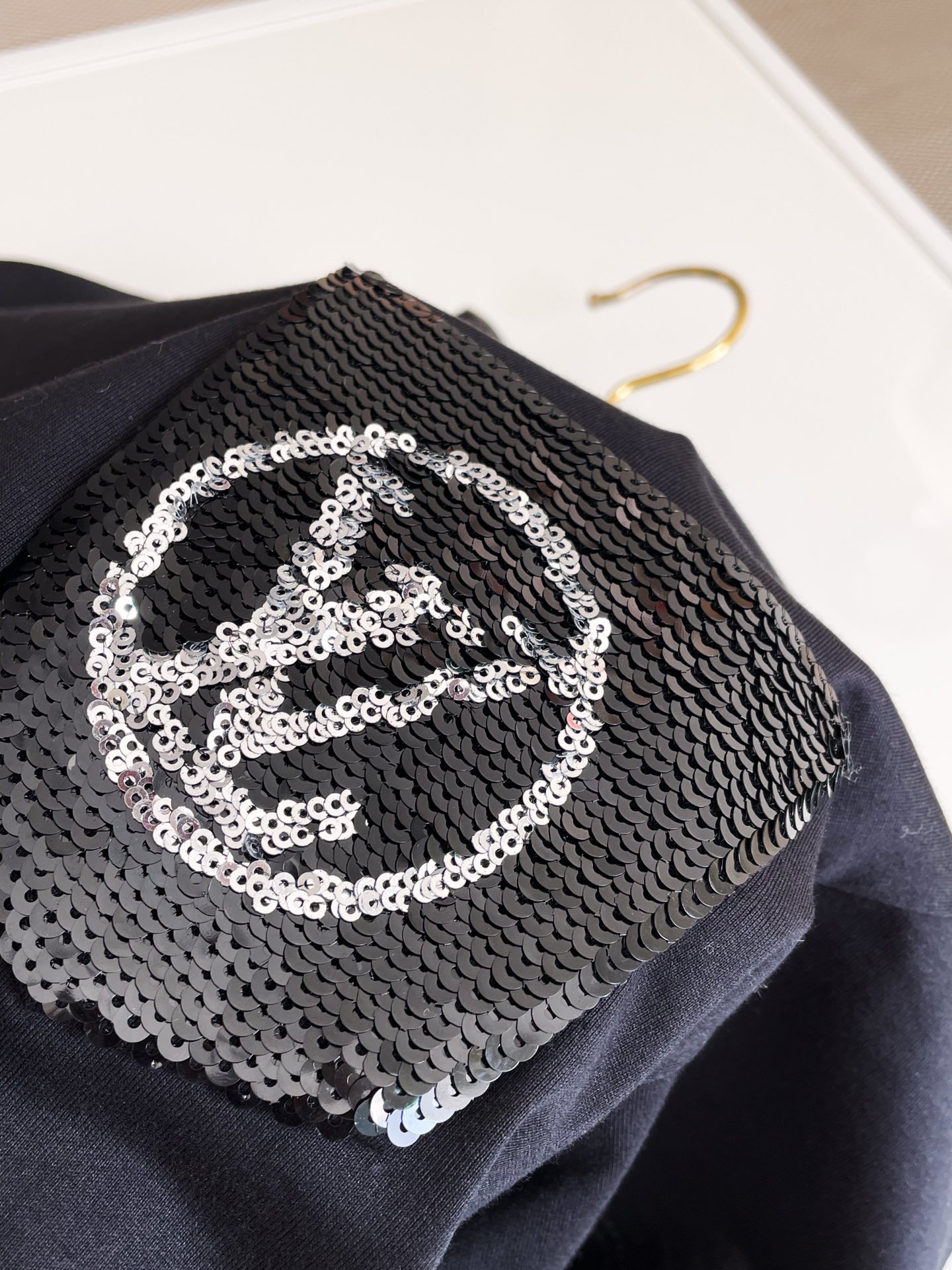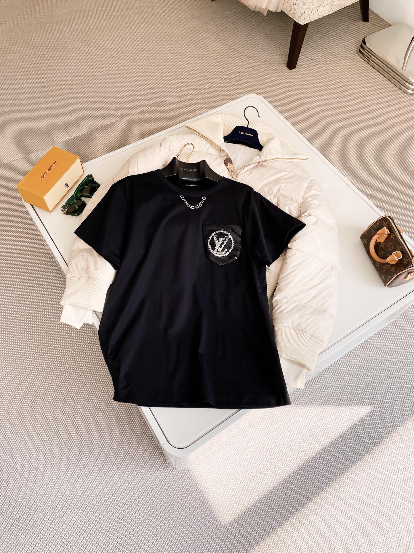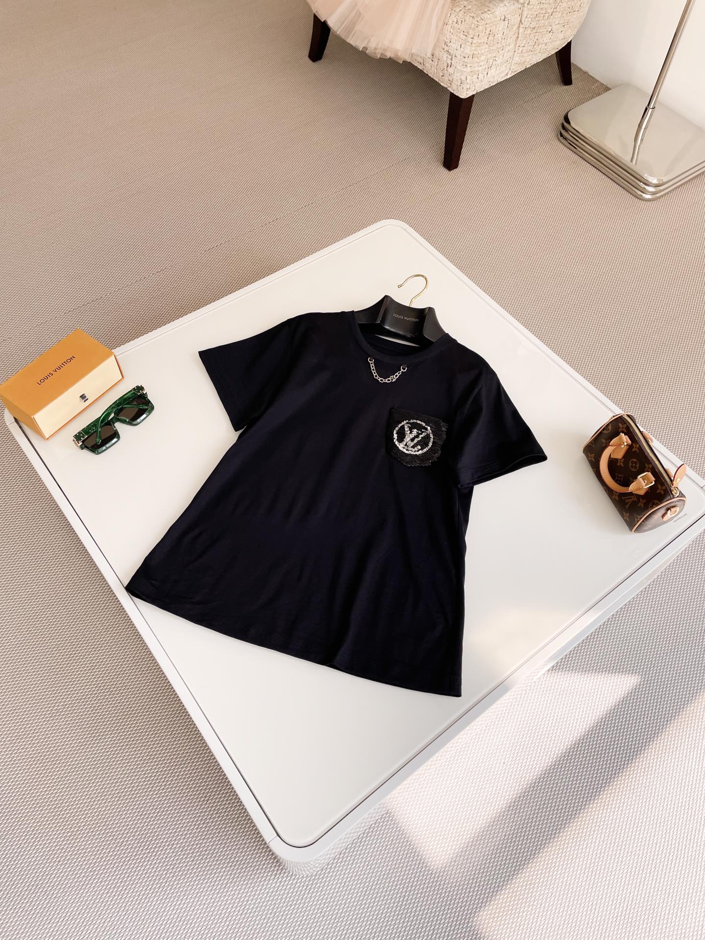 NIGO Louis Vuitton Women's Summer Solid Color Sequin Print Round Neck Cotton Short Sleeve T-Shirt #nigo73936