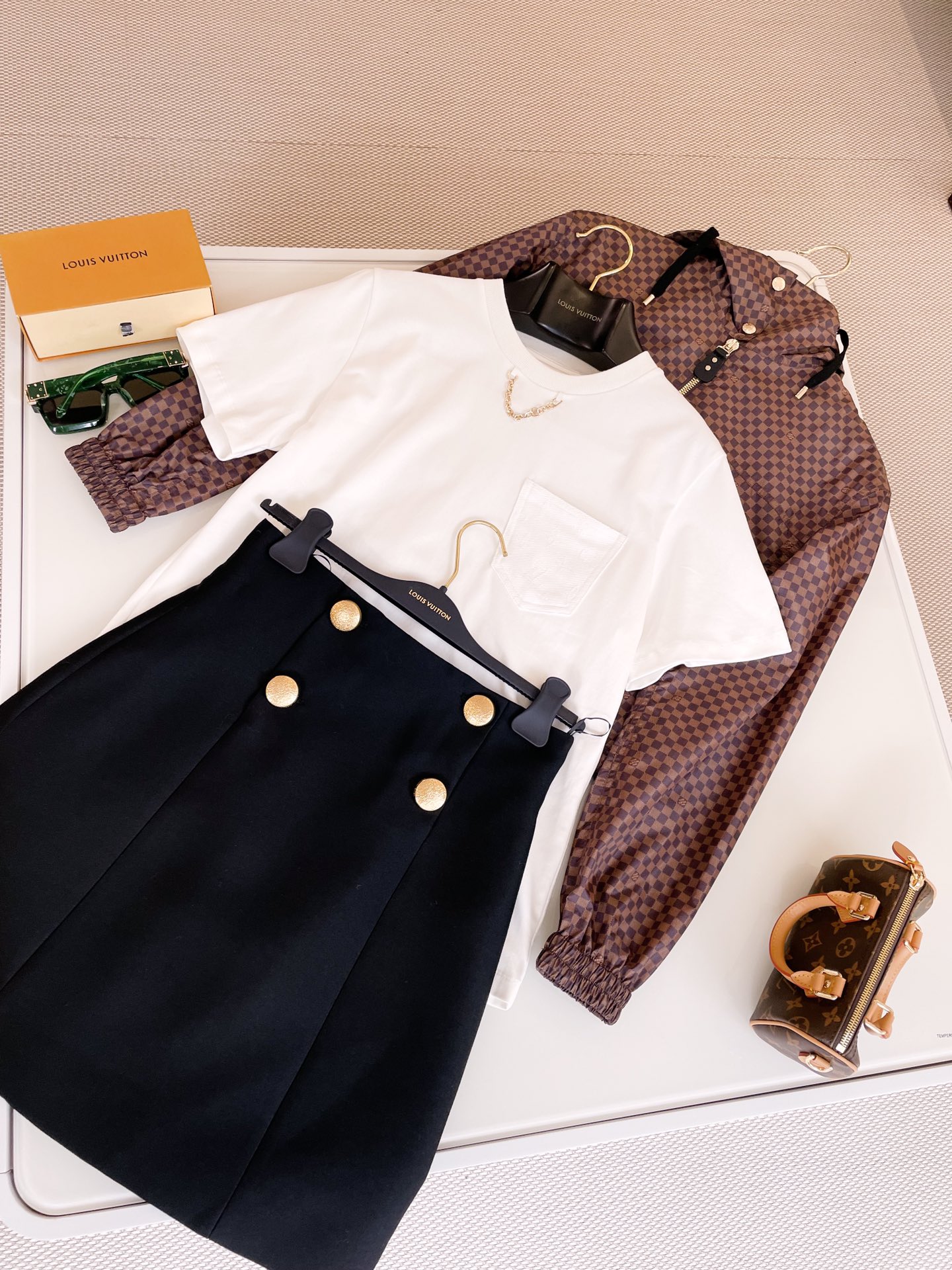 NIGO Louis Vuitton Women's Summer Solid Color Chain Thin Sister Round Neck Cotton Short Sleeve T-Shirt #nigo73177