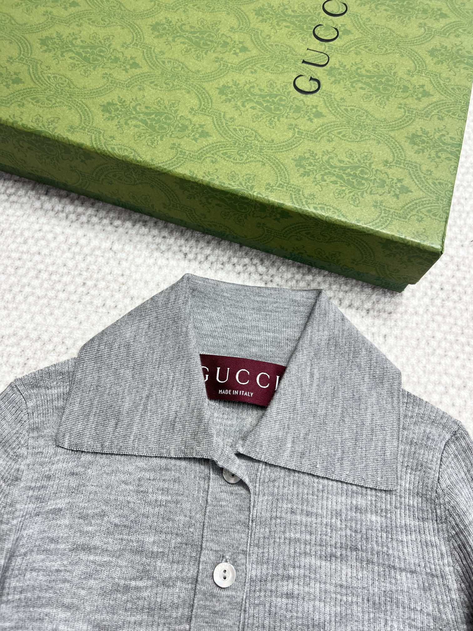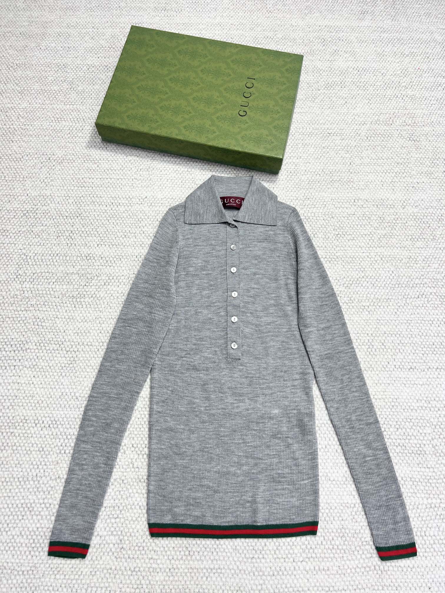 NIGO Gucci Women's Spring Autumn Grey Striped Ribbon Tumbled Pullover Polo Neck Long Sleeve Knit Sweater Top #nigo99241