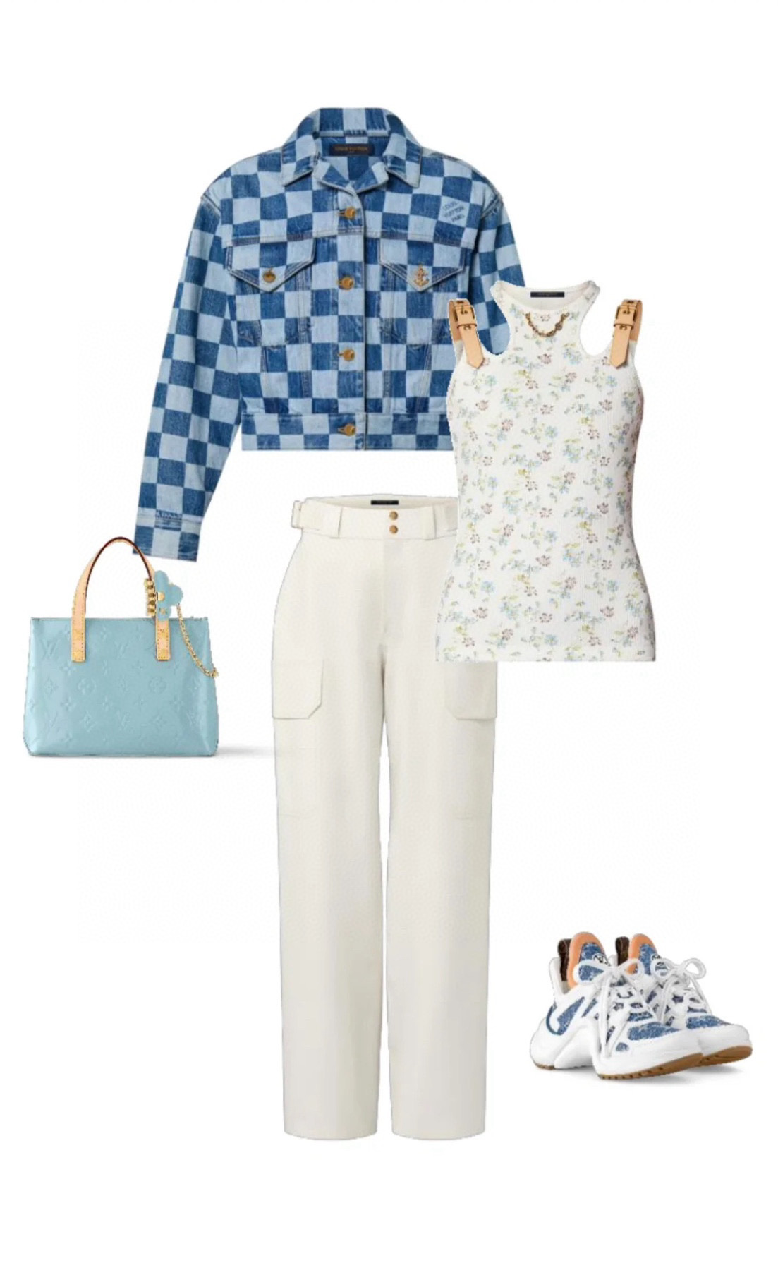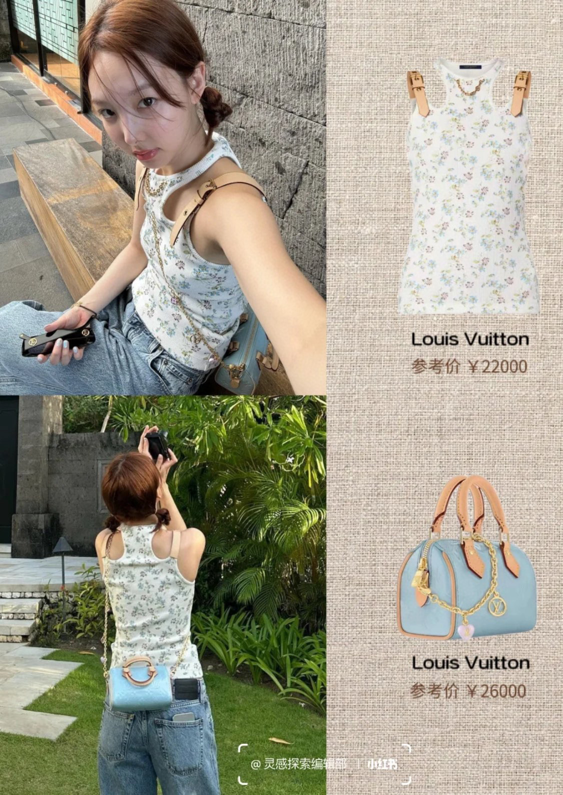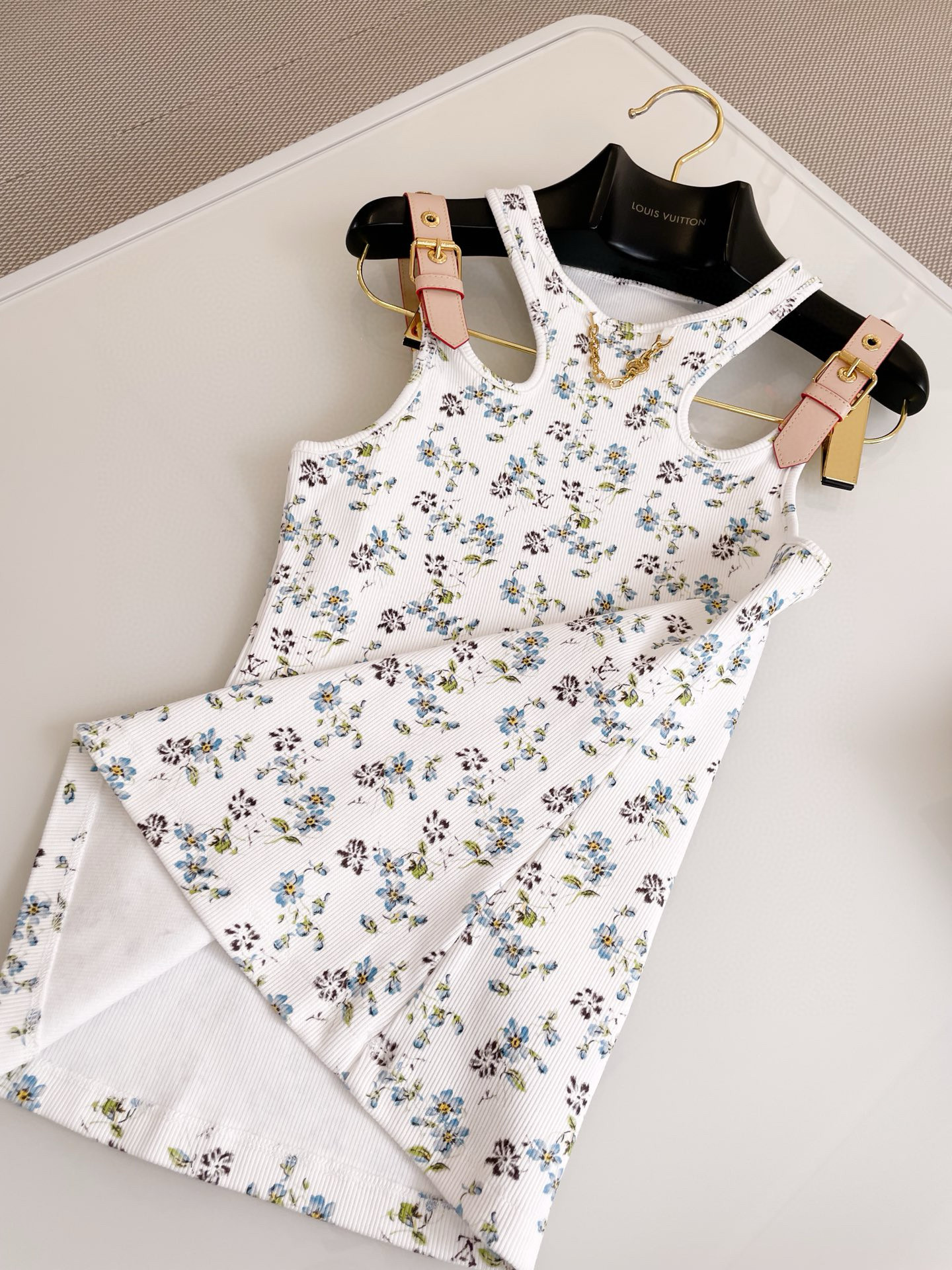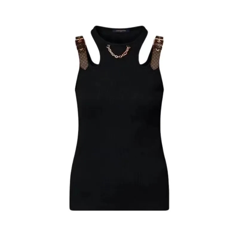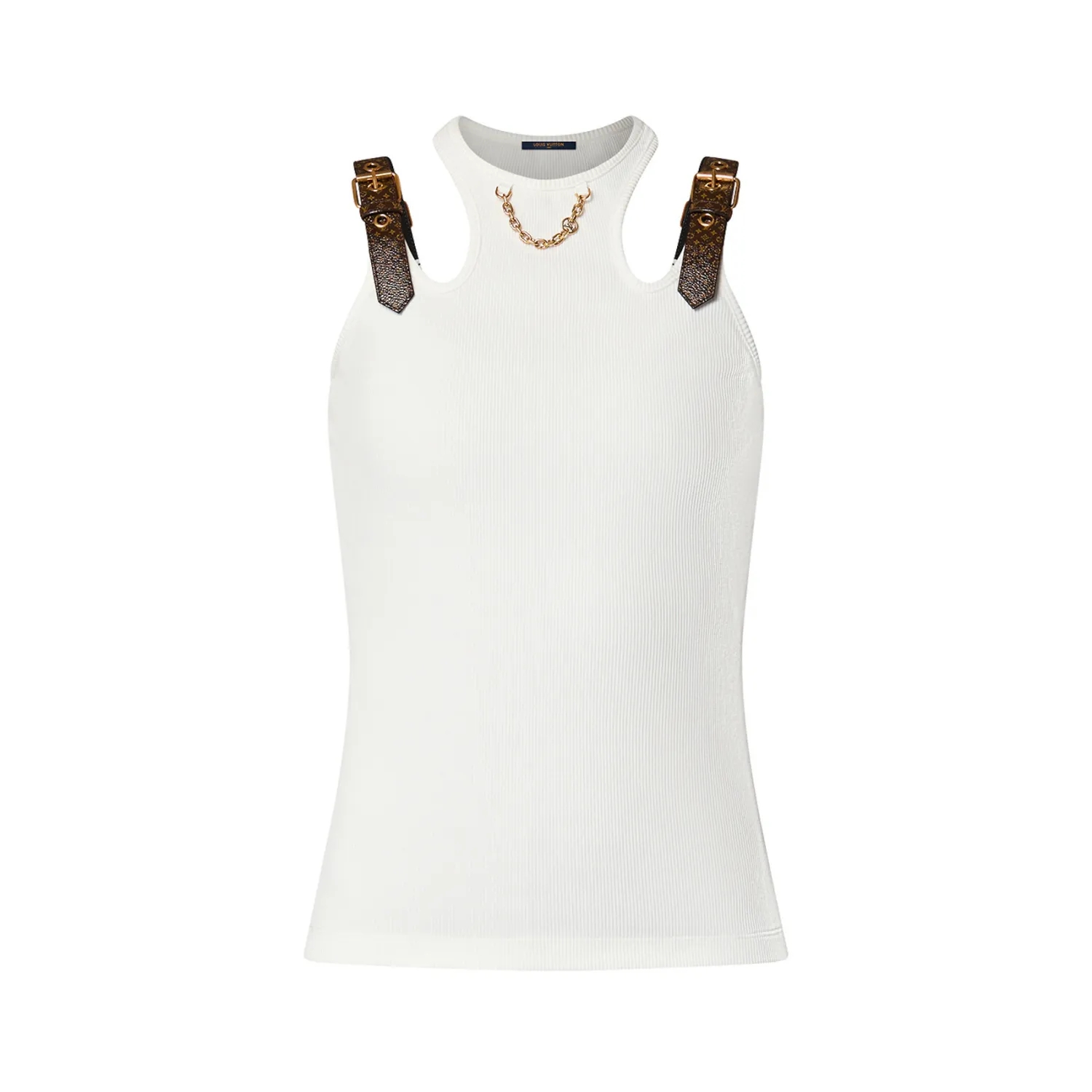 NIGO Louis Vuitton Women's Summer Floral Printed Leather Buckle Suspenders Belt White Tank Top #nigo98959