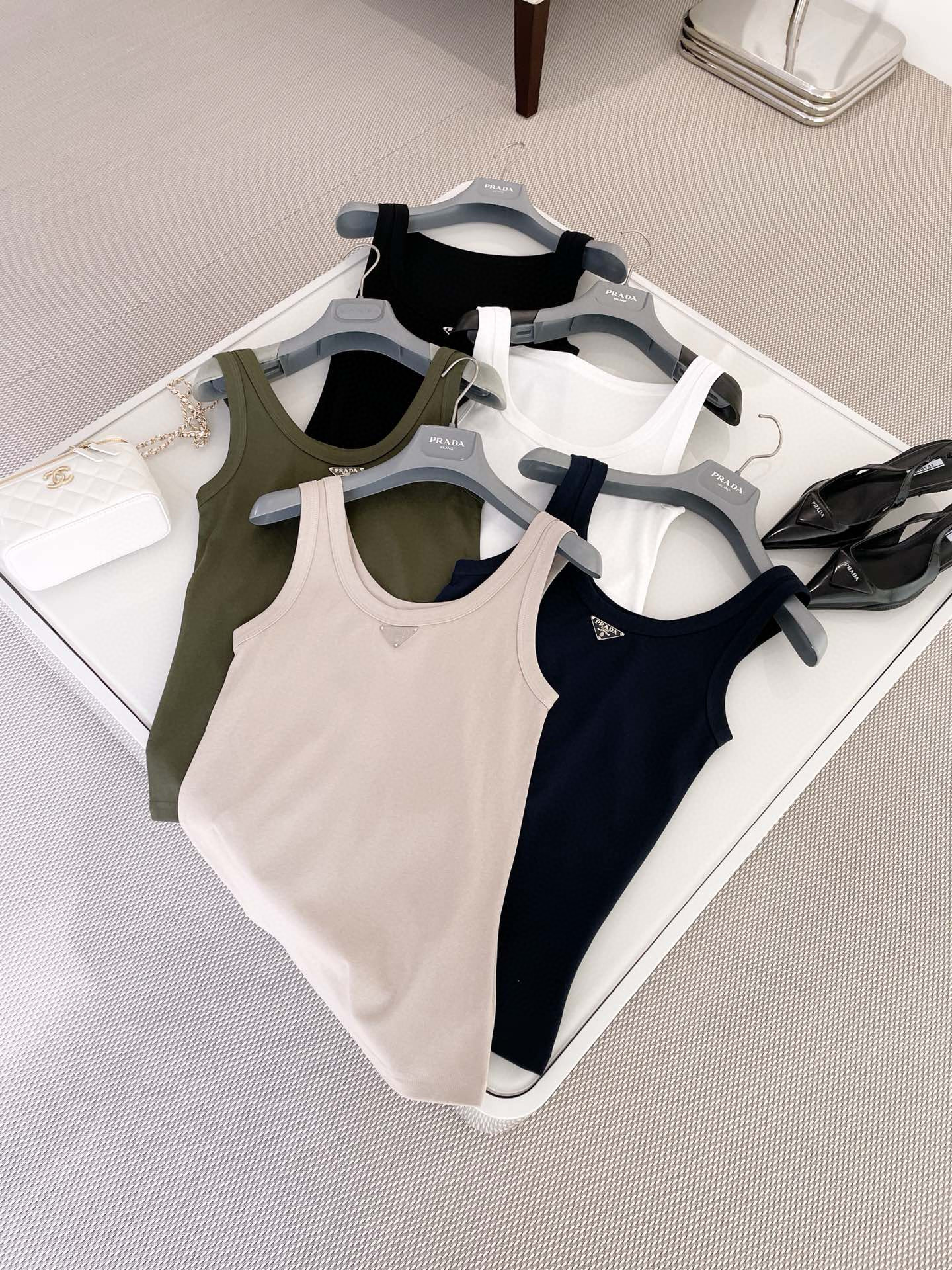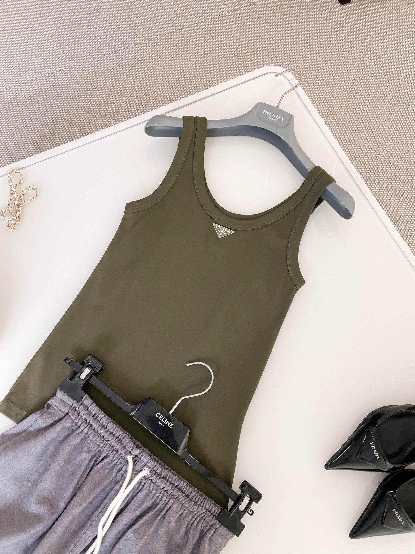 NIGO Prada Women's Summer Triangle Logo Solid Colour Round Neck Sleeveless Tank Top #nigo99177