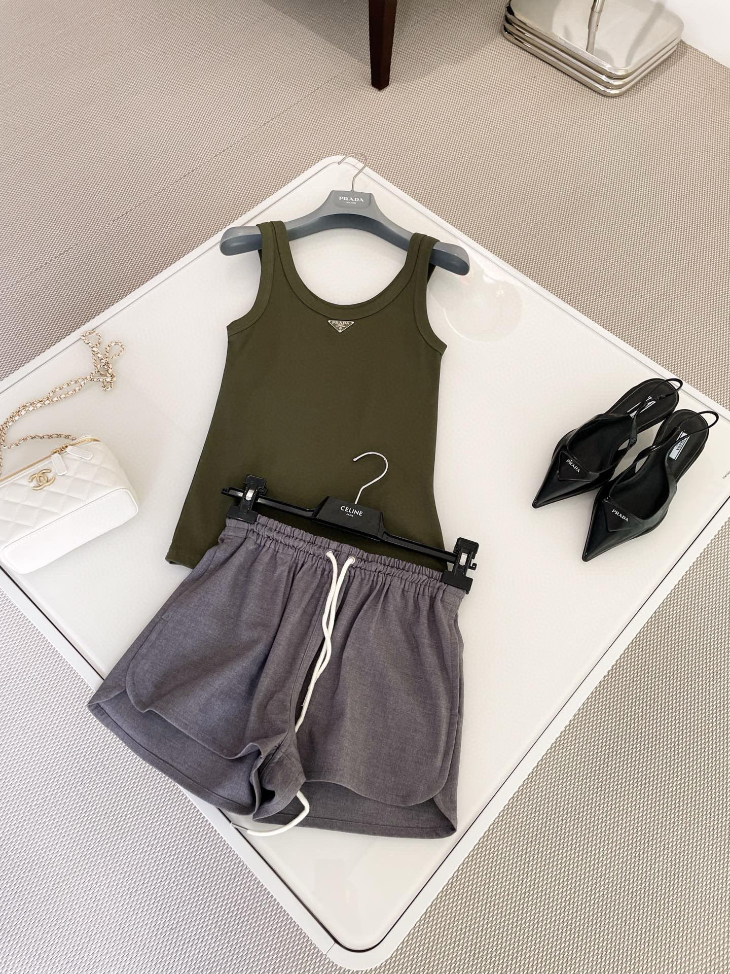 NIGO Prada Women's Summer Beaded Logo Cotton Sleeveless Camisole Tank Top Vest #nigo98887