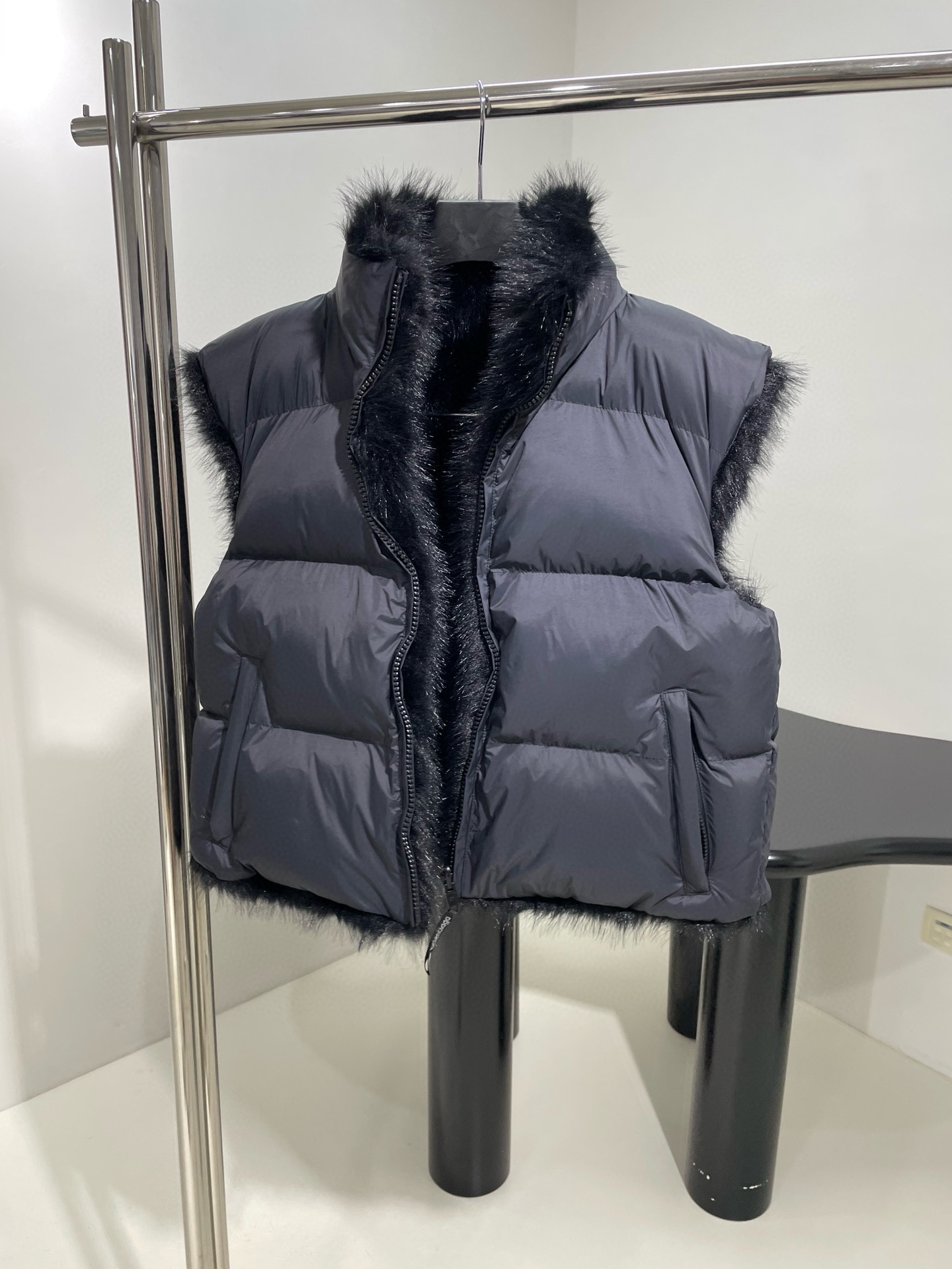 NIGO Balenciaga Women's Fall And Winter Nylon Fabric Double Sided Wear Fur Fabric Zipper Sleeveless Vest Jacket #nigo74841