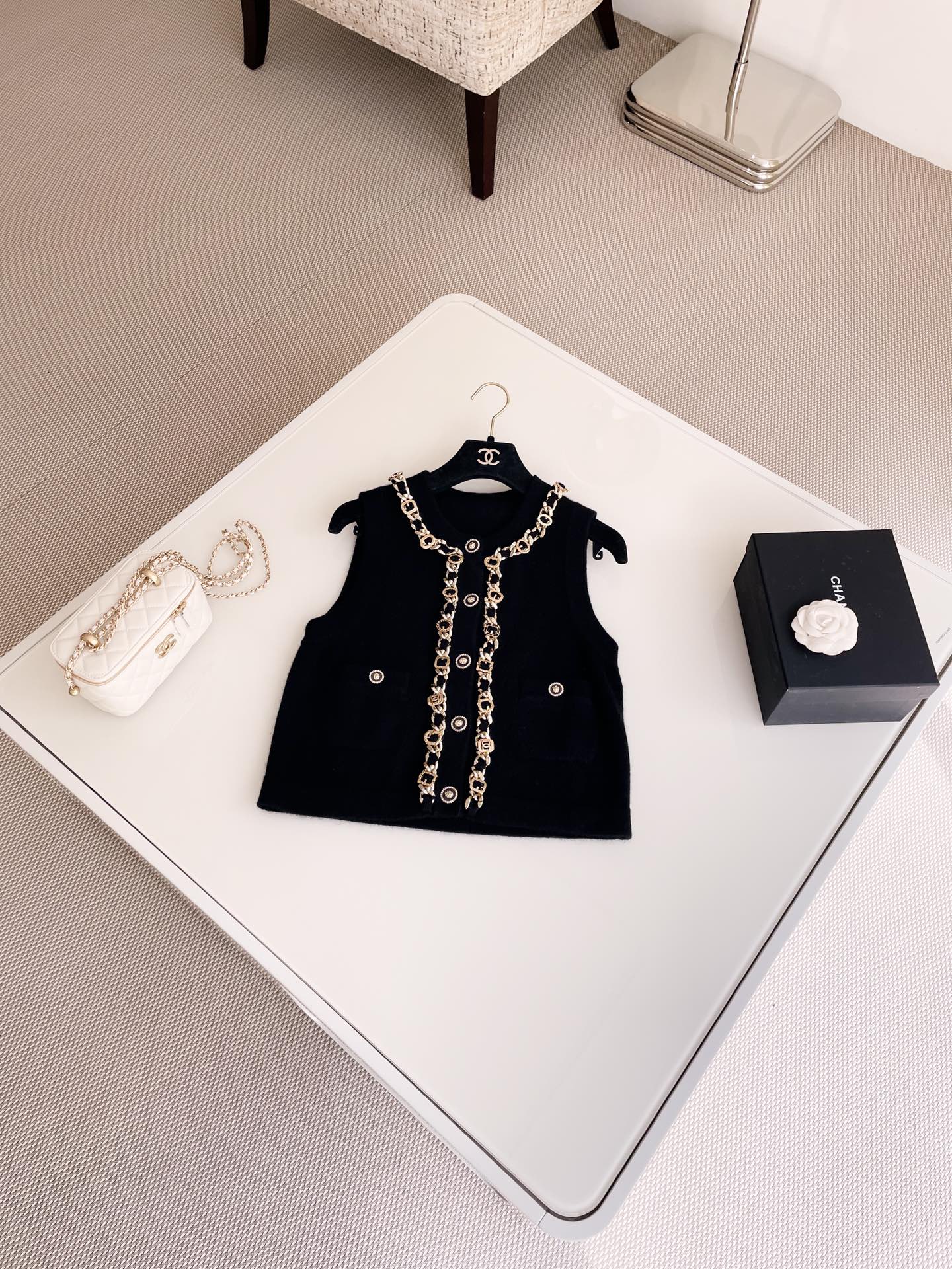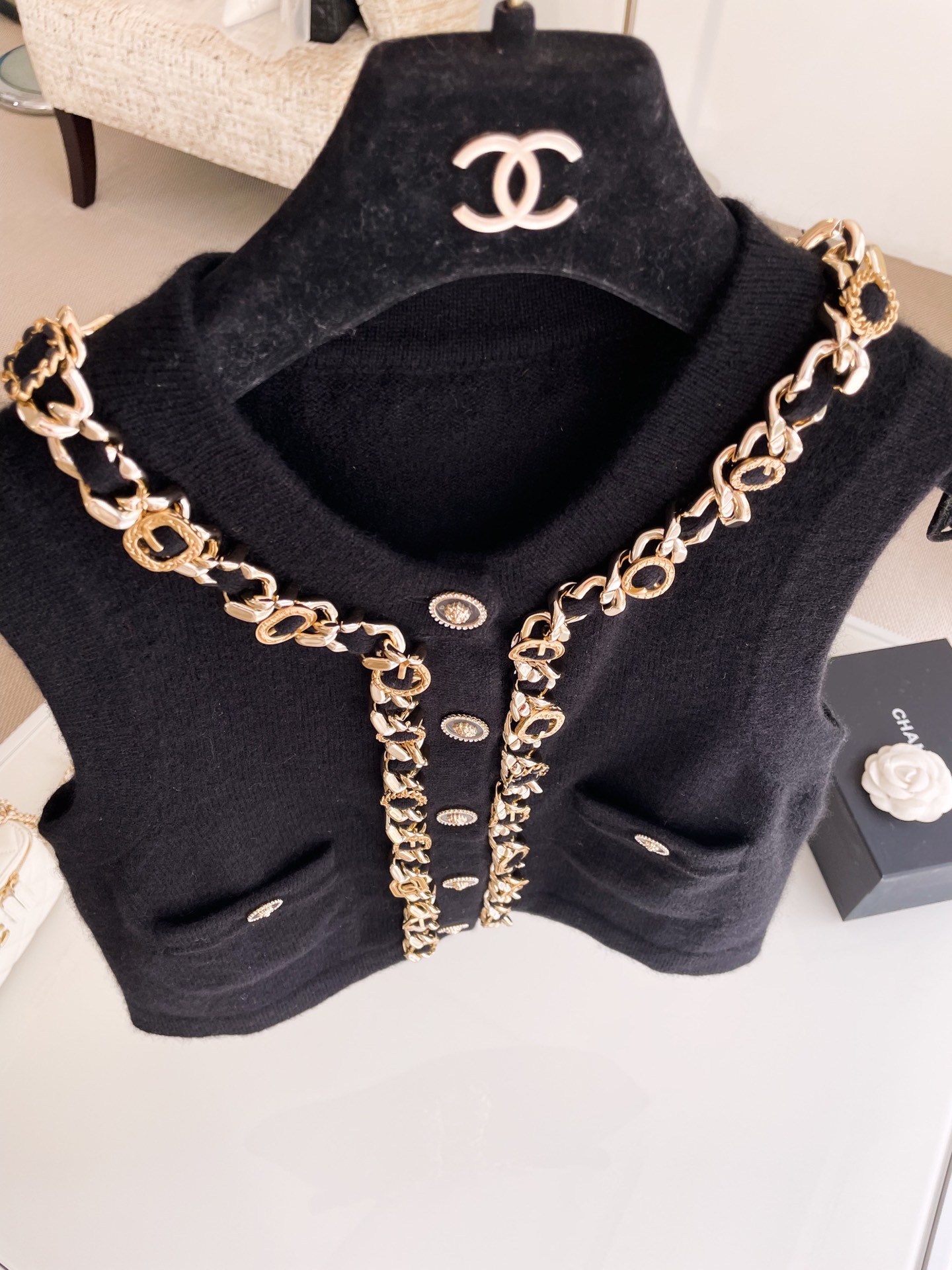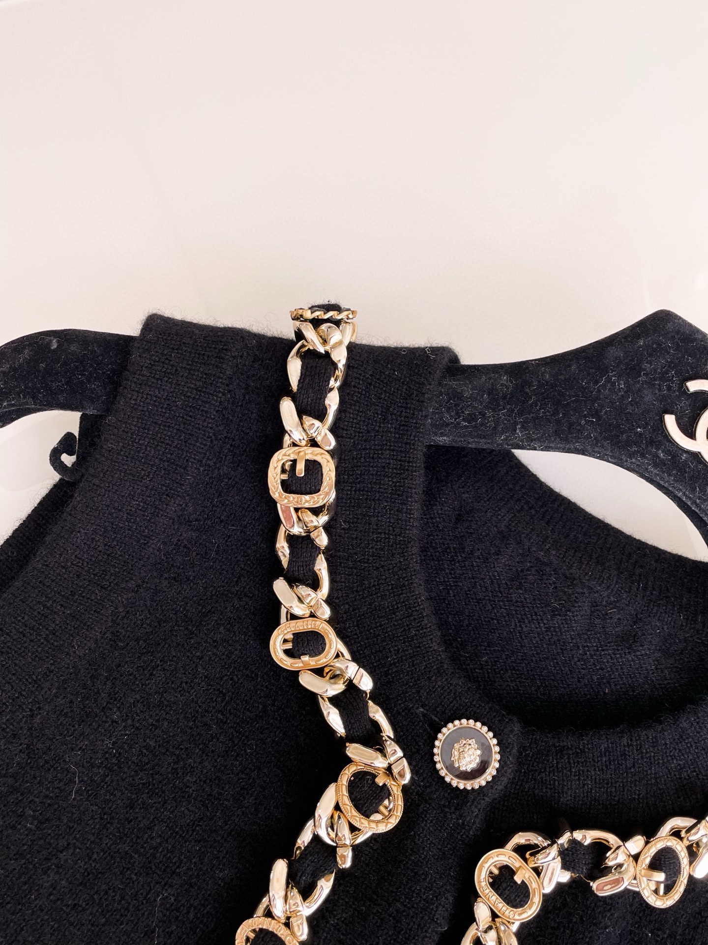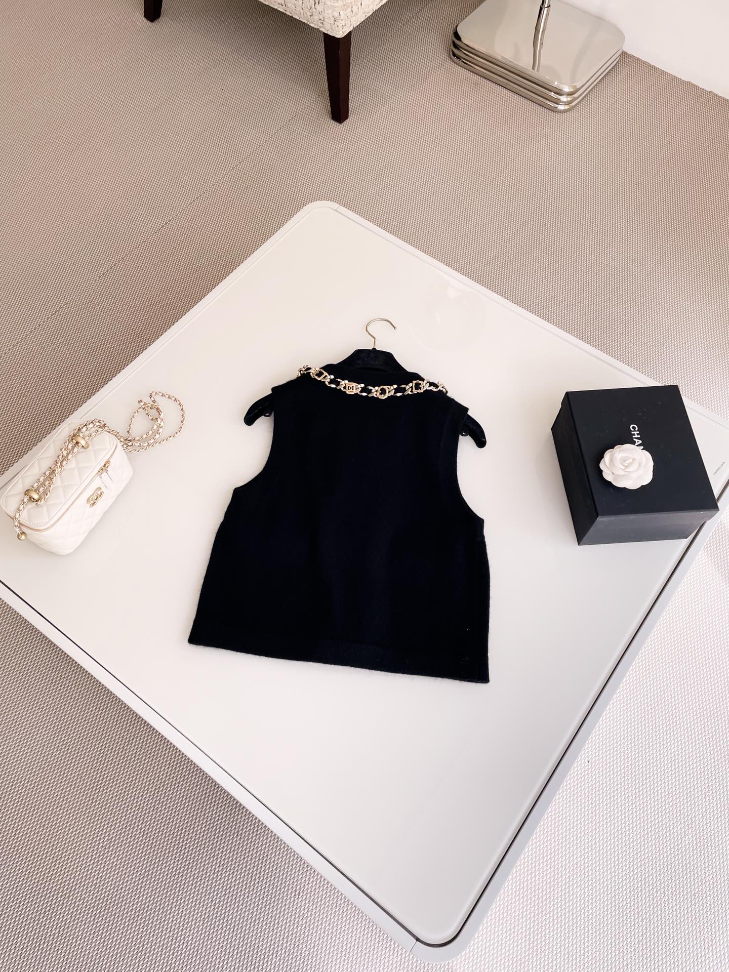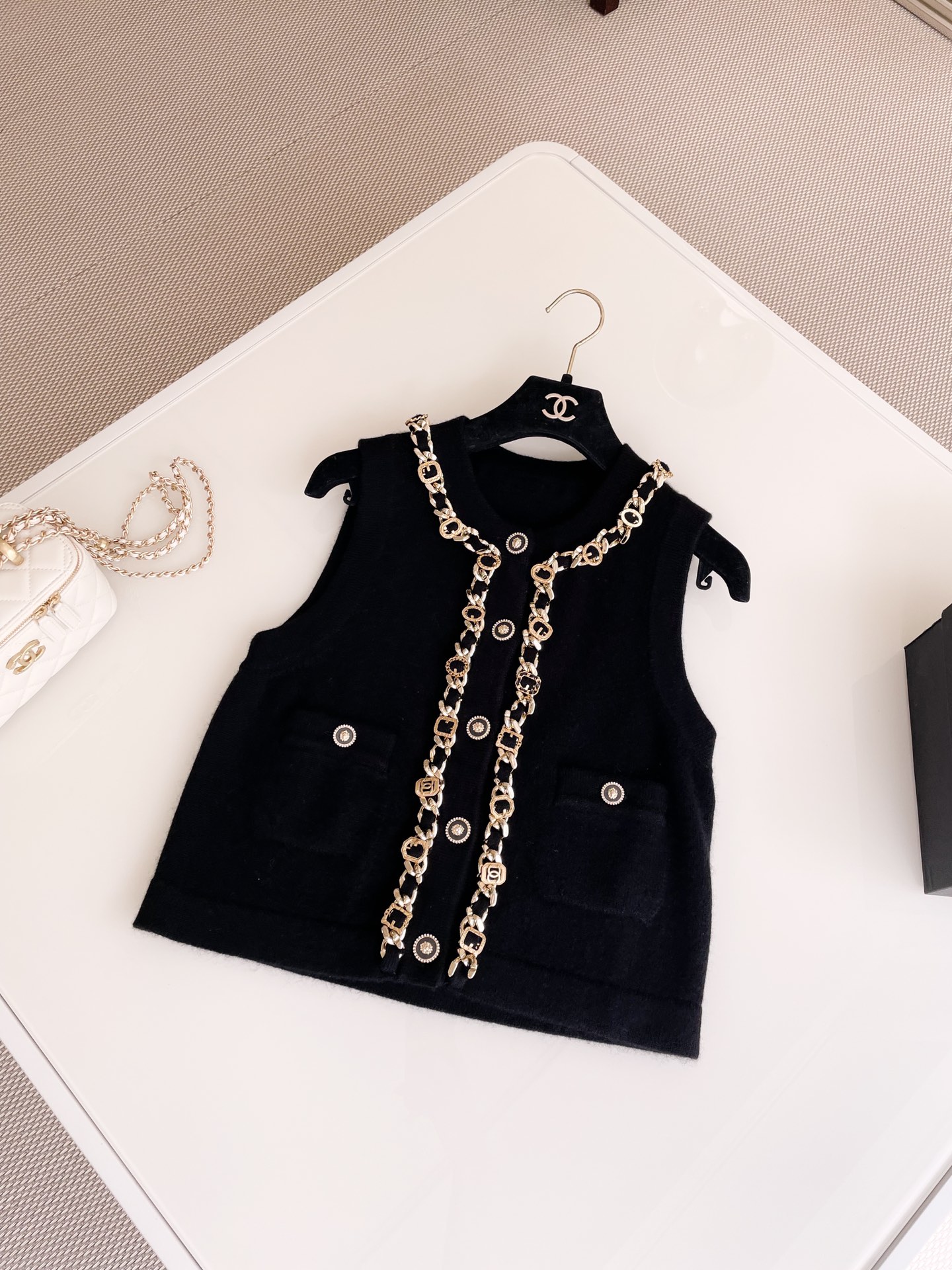NIGO Chanel Women's Fall And Winter Fashion Antique Chain Single-Breasted Black And Gold Cashmere Knitted Tank Top Fitted Vest Ngvp #nigo9316