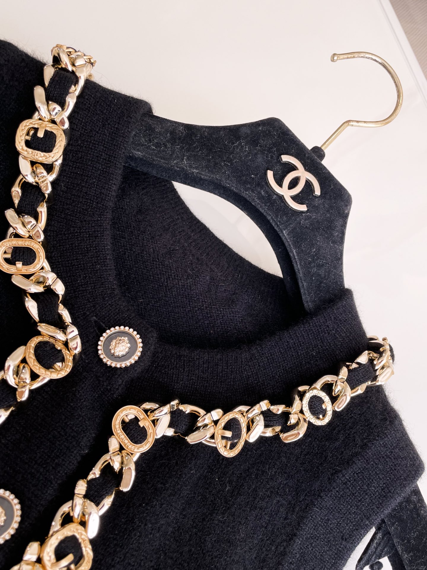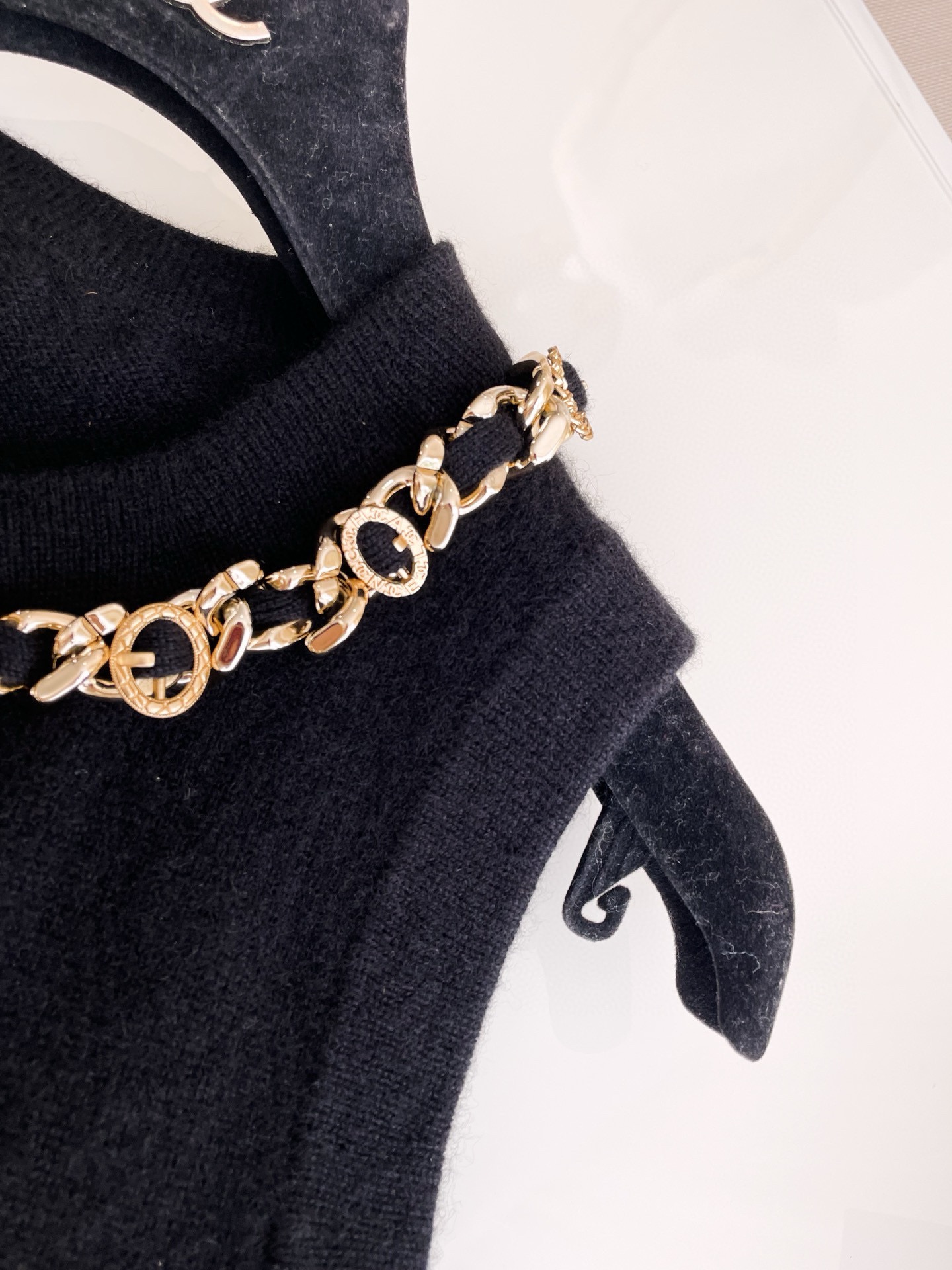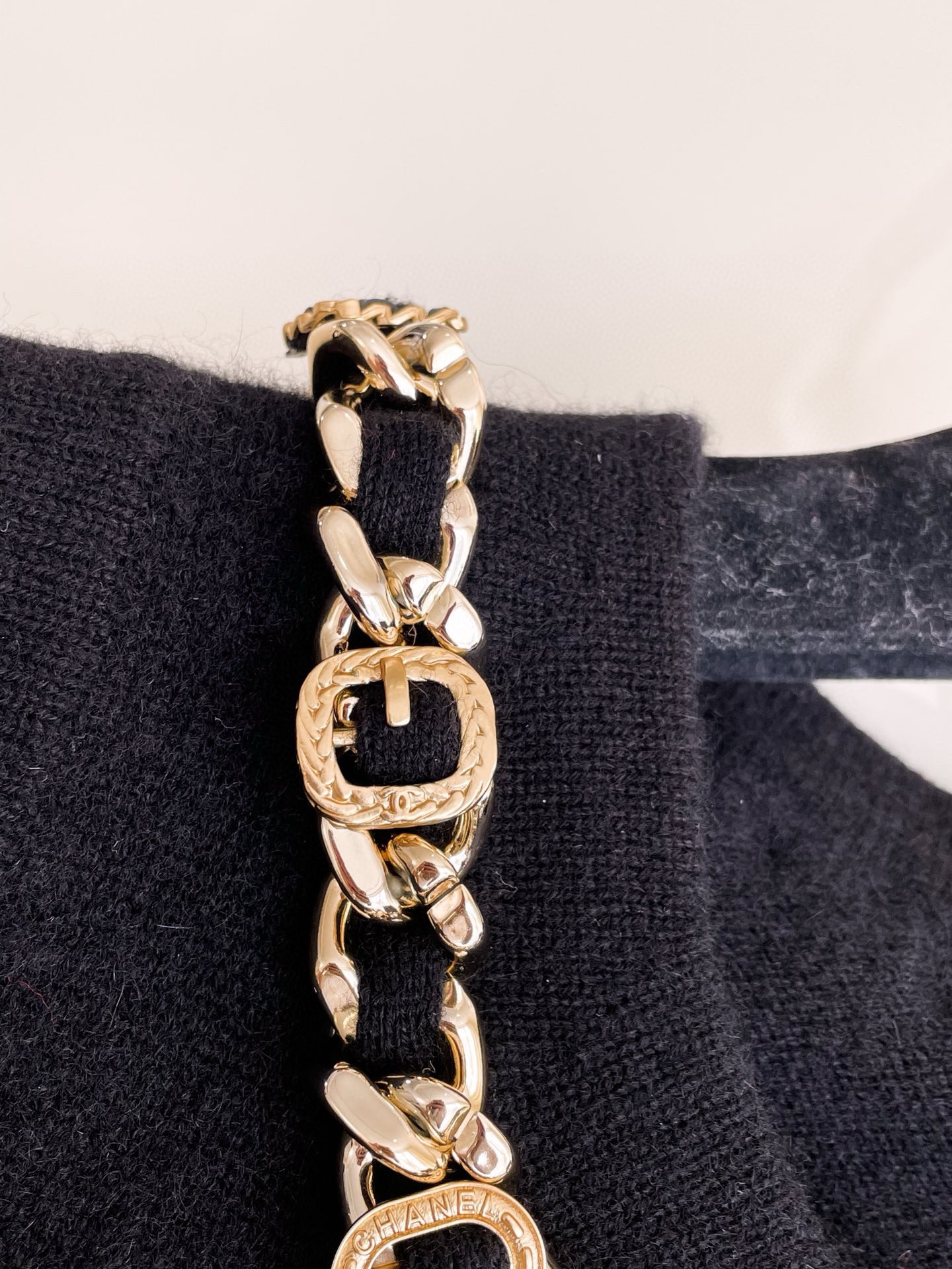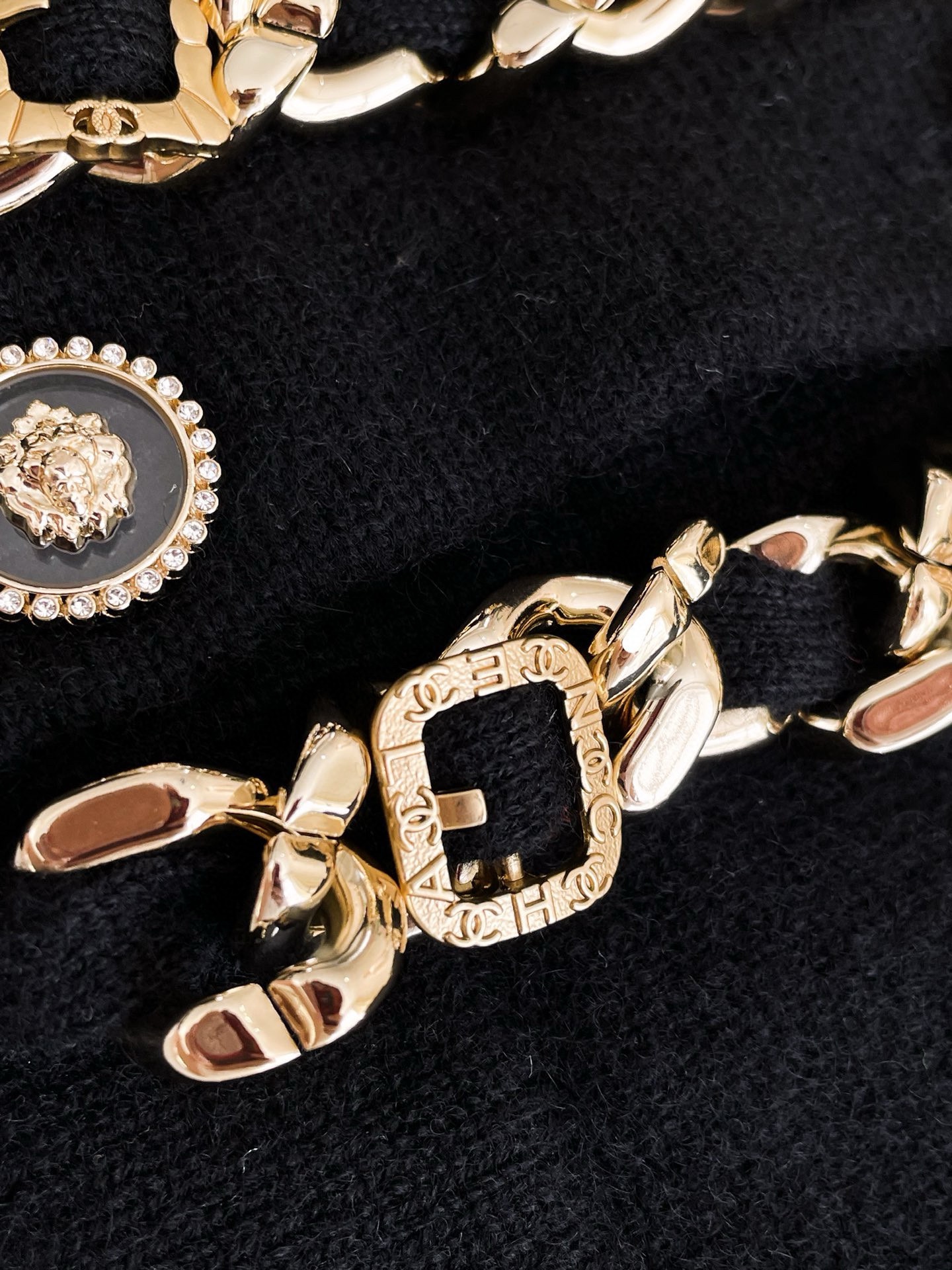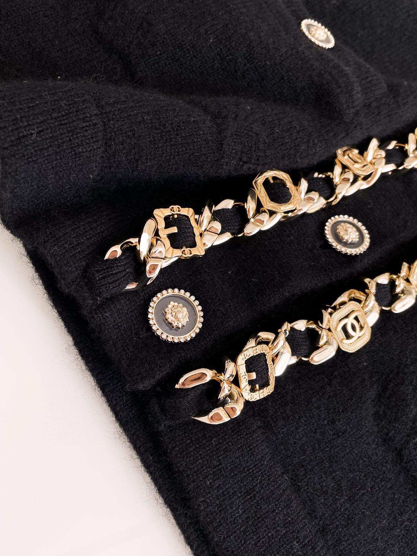 NIGO Chanel Women's Fall And Winter Fashion Antique Chain Single-Breasted Black And Gold Cashmere Knitted Tank Top Fitted Vest Ngvp #nigo9316