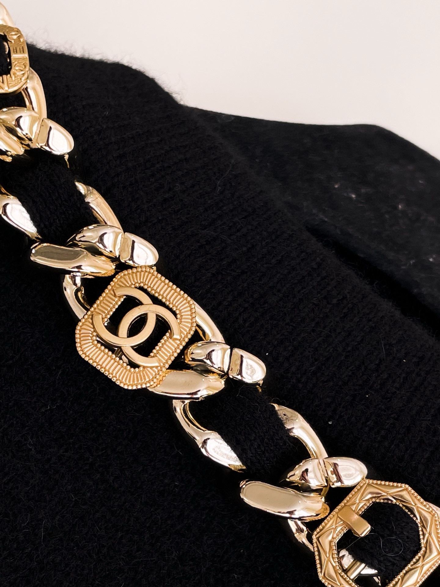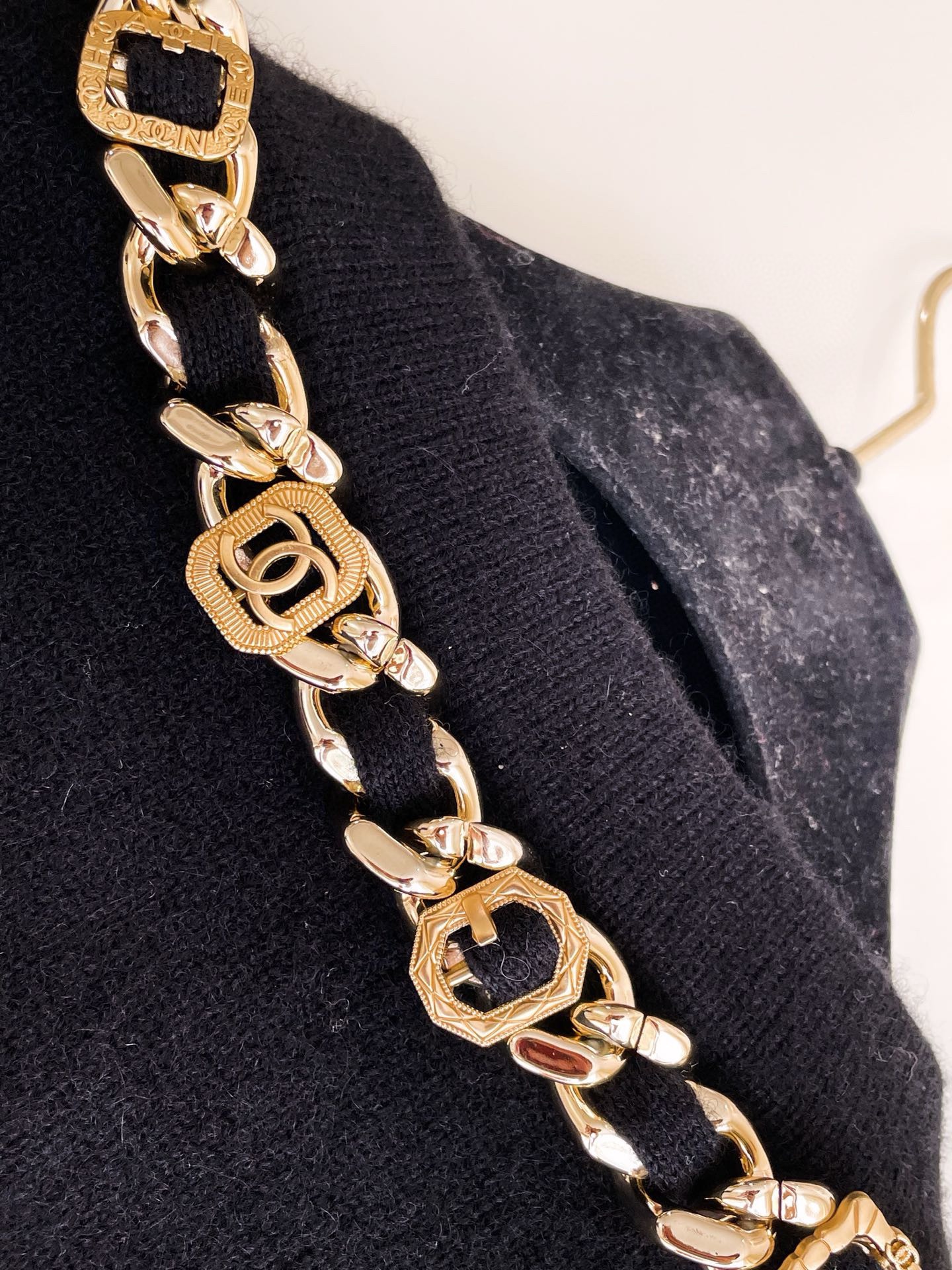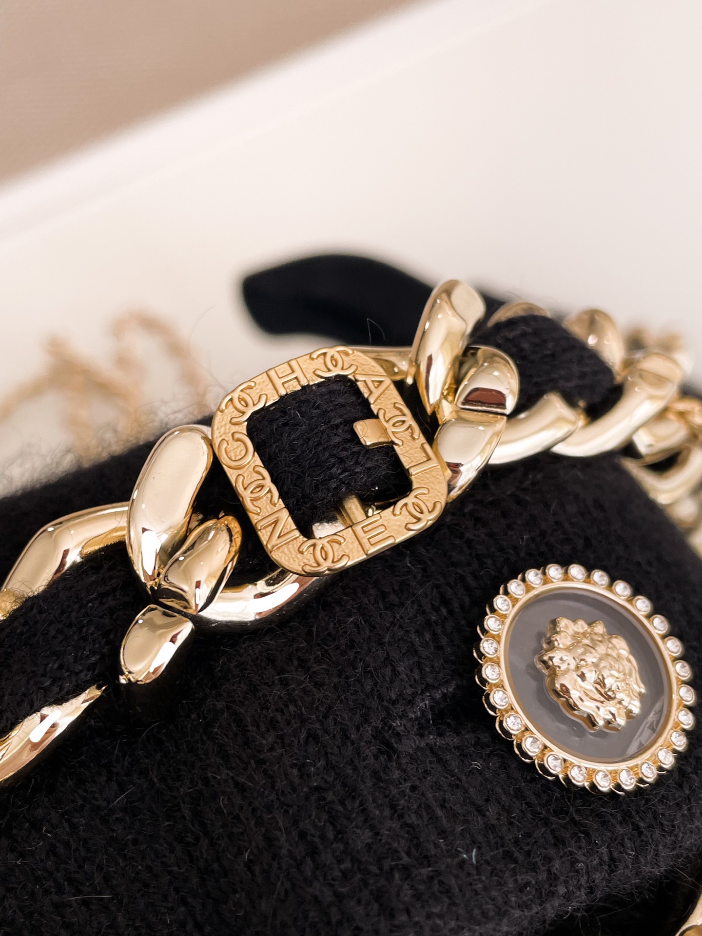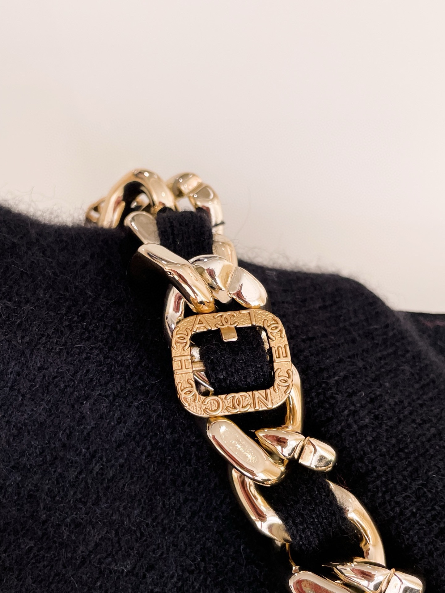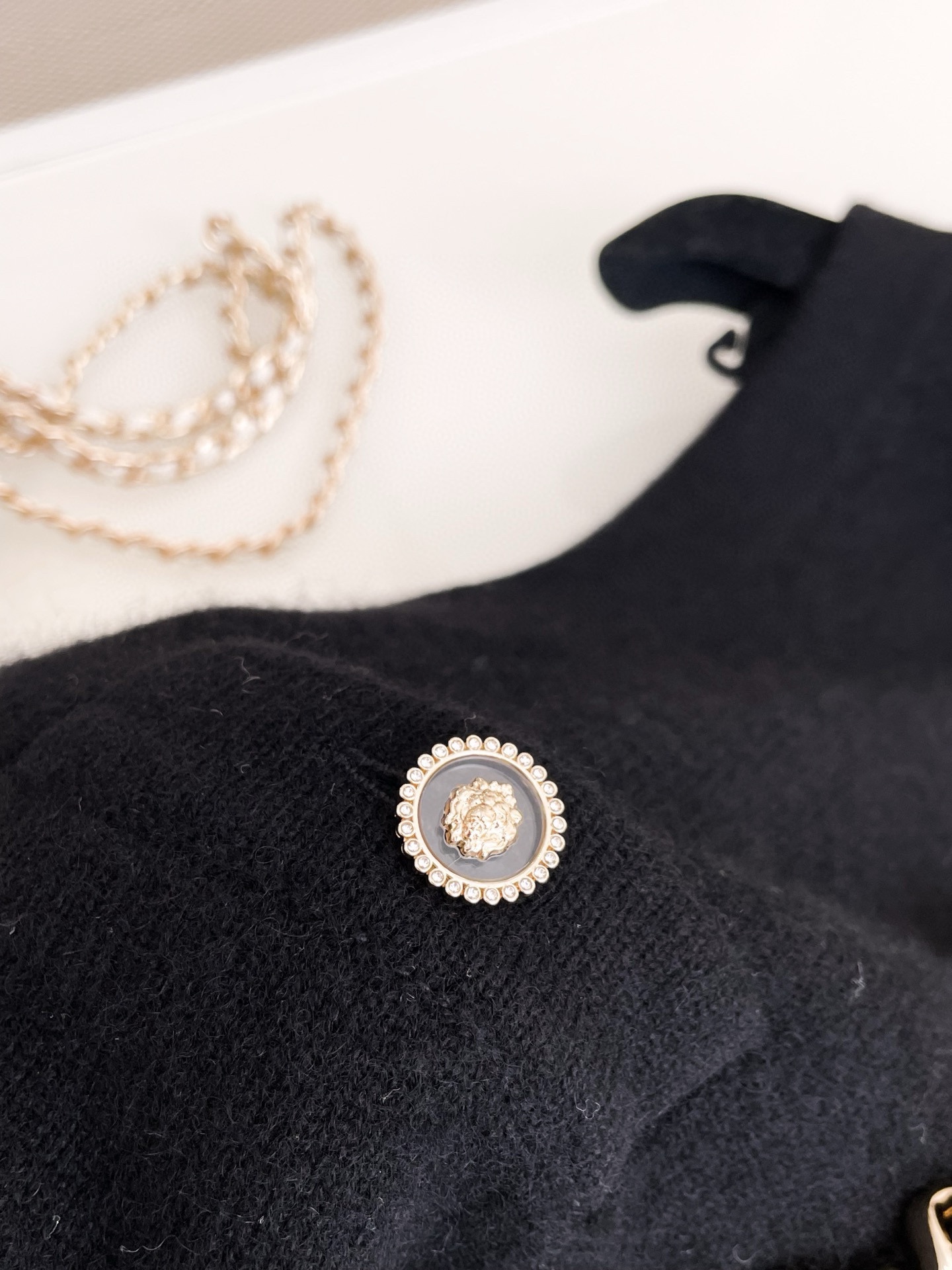 NIGO Chanel Women's Fall And Winter Fashion Antique Chain Single-Breasted Black And Gold Cashmere Knitted Tank Top Fitted Vest Ngvp #nigo9316