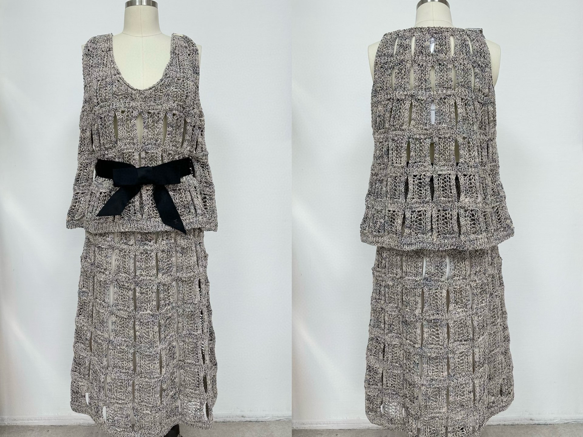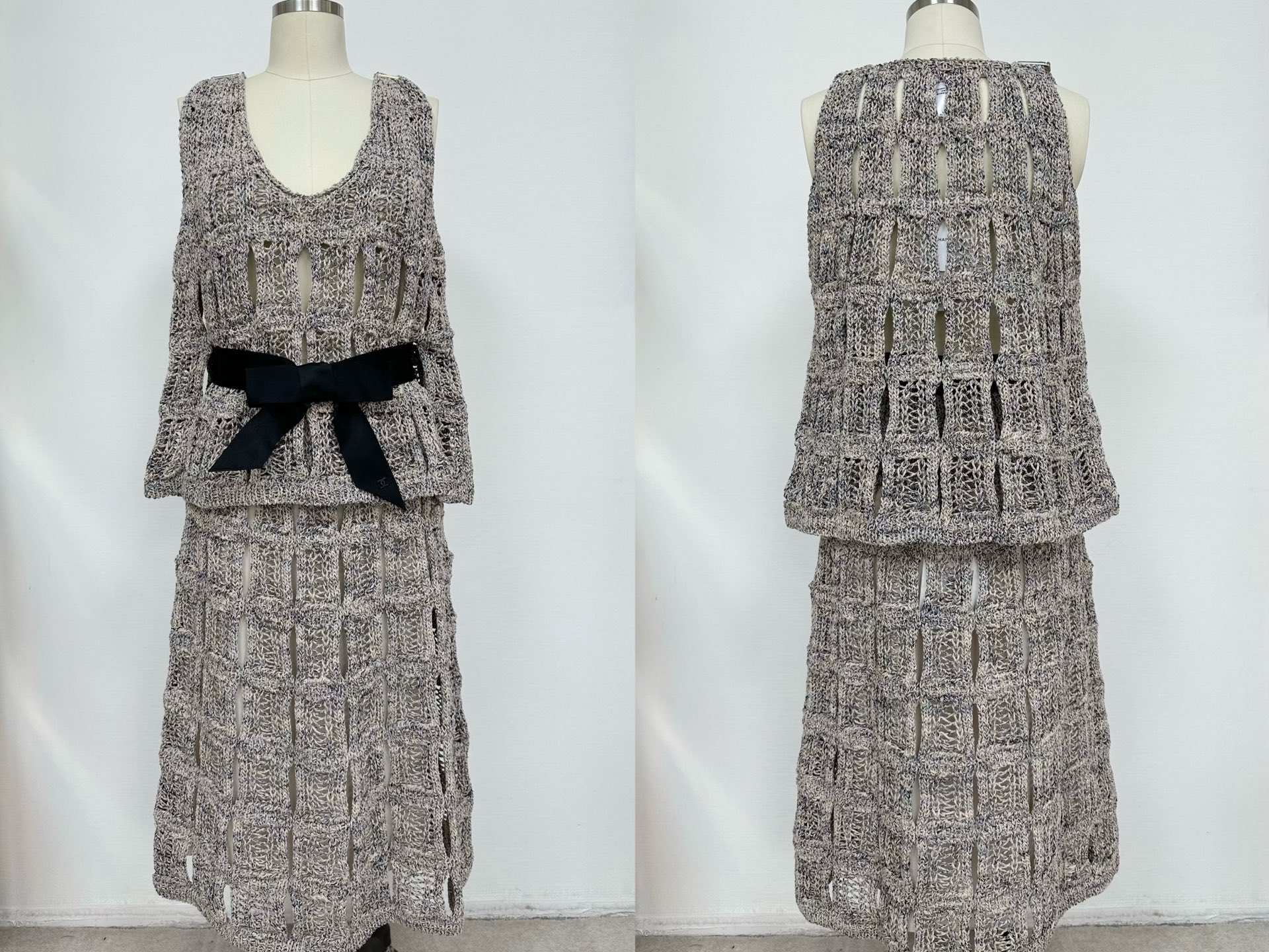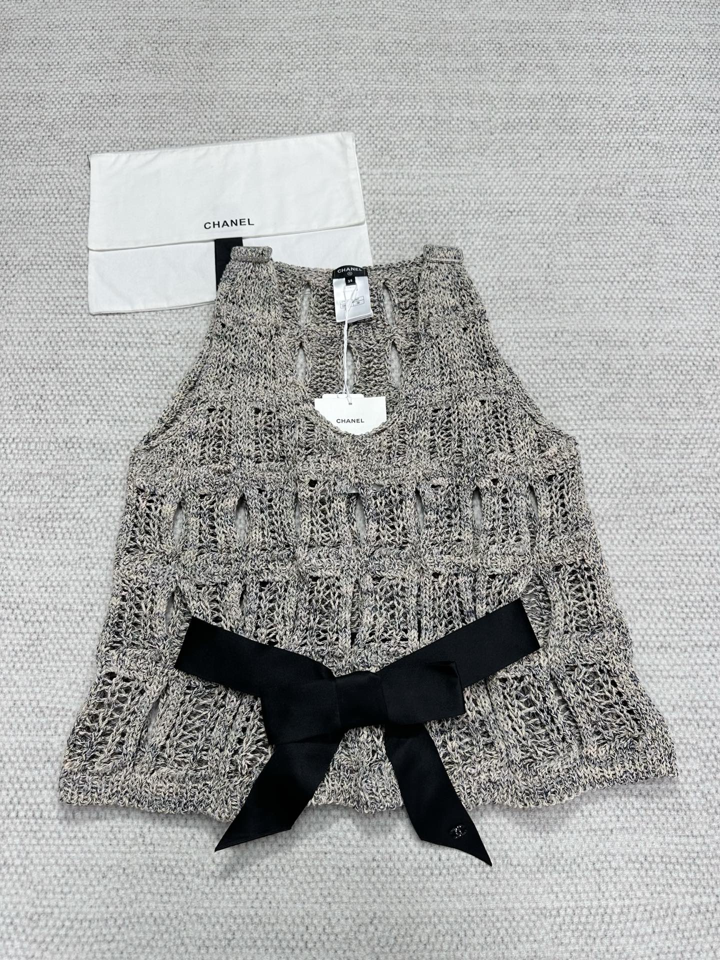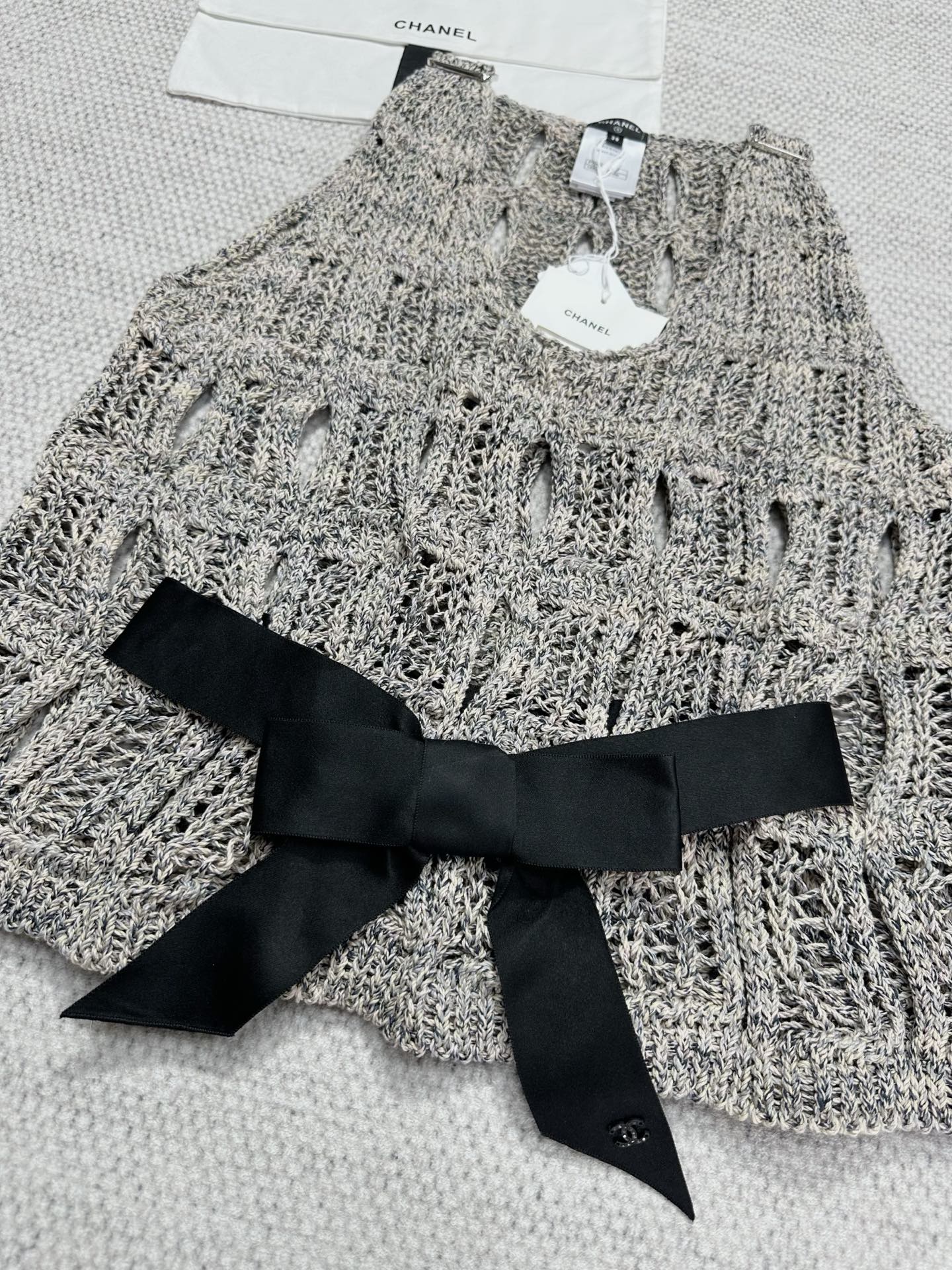 NIGO Chanel Women's Spring And Summer High Street Cotton Silk Hollow Bow Decoration V-neck Sleeveless Vest Casual Medium-length Knitted Half Skirt Ngvp #nigo1526